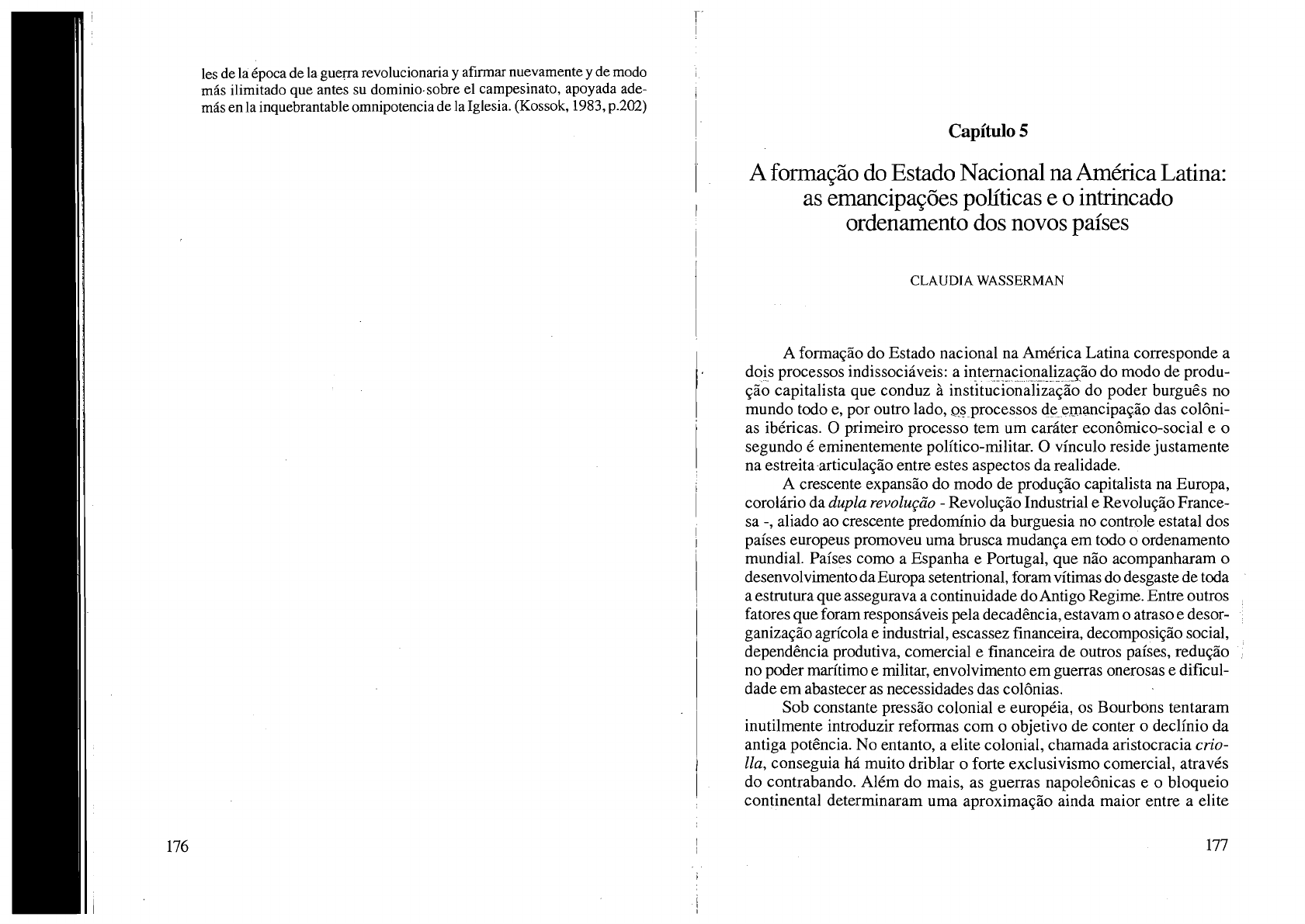 les dela época de la guerra revolucionaria y afirmar nuevamente y de modo I más ilimitado que antes su dominio-sobre e1 campesinato, apoyada ade- más en la inquebrantable omnipotencia de la Iglesia. (Kossok, 1983, p.202) i Capítulo 5 A formação do Estado Nacional na América Latina: as emancipações políticas e o intnncado ordenamento dos novos países CLAUDIA WASSERMAN A formação do Estado nacional na América Latina corresponde a dois processos indissociáveis: a intemacionalização - - do modo de produ- ção capitalista que conduz à instituci~naliza~ão do poder burguês no mundo todo e, por outro lado, ,os processos de emancipação das colôni- as ibéricas. O primeiro processo tem um caráter econômico-social e o segundo é eminentemente político-militar. O vínculo reside justamente na estreita articulação entre estes aspectos da realidade. A crescente expansão do modo de produção capitalista na Europa, corolário da dupla revoluçEo - Revolução Industrial e Revolução France- sa -, aliado ao crescente predomínio da burguesia no controle estatal dos países europeus promoveu uma brusca mudança em todo o ordenamento mundial. Países como a Espanha e Portugal, que não acompanharam o desenvolvimento da Europa setentrional, foram vítimas do desgaste de toda a estrutura que assegurava a continuidade do Antigo Regime. Entre outros fatores que foram responsáveis pela decadência, estavam o atraso e desor- ganização agrícola e industrial, escassez financeira, decomposição social, dependência produtiva, comercial e financeira de outros países, redução no poder marítimo e militar, envolvimento em guerras onerosas e dificul- dade em abastecer as necessidades das colônias. Sob constante pressão colonial e européia, os Bourbons tentaram inutilmente introduzir reformas com o objetivo de conter o declínio da antiga potência. No entanto, a elite colonial, chamada aristocracia crio- lla, conseguia há muito driblar o forte exclusivismo comercial, através do contrabando. Além do mais, as guerras napoleônicas e o bloqueio continental determinaram uma aproximação ainda maior entre a elite "criolla" e a Inglaterra. Desde o final do século XVITI, a elite hispano- americana sentia os efeitos do liberalismo econômico oriundo da Revo- lução Industrial; inspirava-se no modelo liberal da Independência ame- ricana (1776), que preservara muitas estruturas do mundo colonial, no- tadamente a escravidão, e admirava as idéias do iluminismo. Apesar disso, o desenvolvimento colonial continuava subordinado ao monopólio e às restrições produtivas e administrativas da metrópole e, embora a elite criolla não tivesse idéias claras a respeito da emancipação, o retomo do rei da Espanha, Femando VII, ao trono e as tentativas de re- colonização e de volta ao absolutismo monárquico foram suficientes para fazer eclodir guerras civis muito violentas que vão, de 1810 a 1825, des- truir grande parte da estrutura econômico-produtiva colonial. , , Por isso, o processo de formação de novos Estados responde a dois / planos intimamente ligados: a violência militar que implanta novos or- j denamentos políticos e a transformação mundial das relações sociais de 1 produção que descarta as antigas metrópoles de seu lugar de prestígio. E, como registra Halperín Donghi (1976, p.81), Esperava-se que, das ruínas desse regime (colonial), surgisse uma nova ordem, cujas linhas fundamentais haviam sido previstas desde o início das lutas pela independência. Mas a nova ordem tardava a nascer. Como grande parte da historiografia latino-americana inspira-se no modelo europeu de formação do Estado nacional, os autores, em geral, encontram uma grande dificuldade em identificar os ordenamentos pós- revolucionários como partes do processo de organização político-admi- nistrativa da América Latina. Frequentemente, tratam da formação do Estado nacional latino-americano como um caso tão específico e diver- so dos modelos europeus que não conseguem ultrapassar a verificação de deformações ou incompletudes em seu desenvolvimento. No entan- to, deve-se salientar que, na verdade, o continente europeu foi o pionei- ro no processo de desenvolvimento do modo de produção capitalista e na constituição dos Estados nacionais e estes serviriam de modelo para o estudo de outros continentes. Os Estados europeus surgem como resultado da decadência do feu- dalismo, desenvolvimento do modo de produção capitalista e ascensão da burguesia, que possuía um conjunto de interesses materiais (unifica- ção do mercado interno, fim do domínio aristocrático etc.) capaz de ofe- recer estrutura a uma identidade nacional. Na América Latina parecem ter atuado forças centrífugas, como re- sultado de uma instabilidade crônica, que não permitiam a constituição do Estado nacional e que colocam o primeiro problema teórico de crucial importância: a possibilidade de organização de um Estado nacional na au- sência de um elemento aglutinador, ou seja, uma comunidade de interes- ses que atuasse com êxito no plano político. Essa questão está ligada à discussão inicial que se quer fazer nesse capítulo, que é relativa às origens do Estado nacional latino-americano. As discussões seguintes serão encaminhadas no sentido de entender os processos de constituição do Estado nacional e sua consolidação. Em- bora sejam partes do mesmo processo, os problemas das origens, da cons- tituição e da consolidação dos Estados latino-americanos serão separa- dos para fins de exposição. Em relação à existência de uma identidade nacional na América Latina, Torres Rivas (1977, p.65) adverte que, A conquista e posterior colonização forjaram de cima, a partir do poder colonial, por mais de duzentos anos, uma extensa comunidade de idio- ma, religião e raça; apesar disso o Império espanhol na América foi, prin- cipalmente, uma ordem política construída sobre profunda