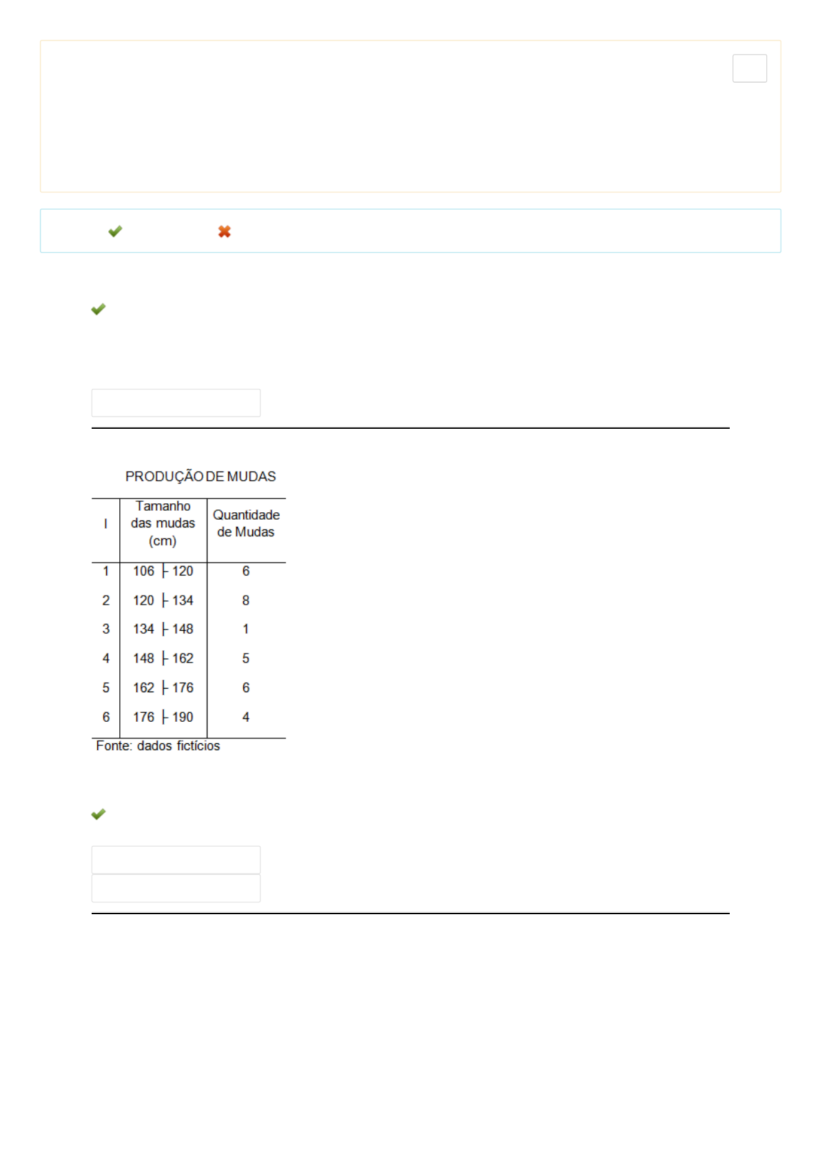 25/08/2019 UNIASSELVI - Centro Universitário Leonardo Da Vinci - Portal do Aluno - Portal do Aluno - Grupo UNIASSELVI https://portaldoalunoead.uniasselvi.com.br/ava/avaliacao/avaliacao_lista.php 1/6 Acadêmico: Gustavo Andrade Ribeiro (1501608) Disciplina: Estatística (MAT99) Avaliação: Avaliação II - Individual Semipresencial ( Cod.:460423) ( peso.:1,50) Prova: 12202610 Nota da Prova: 10,00 Legenda: Resposta Certa Sua Resposta Errada 1. Uma pizzaria pretende contratar um pizzaiolo e verificou que os salários/hora de 4 profissionais em sua região são: R$ 25,00, R$ 30,00, R$ 35,00 e R$ 38,00. Nessas condições, determine o salário/hora médio desse profissional: a) Salário/hora médio é R$ 32,00. b) Salário/hora médio é R$ 5,00. c) Salário/hora médio é R$ 64,00. d) Salário/hora médio é R$ 32,50. Anexos: Formulario_Estatistica_2013 2. A tabela a seguir apresenta o tamanho das mudas de uma determinada produção. Qual a amplitude do intervalo da segunda classe? a) A amplitude da segunda classe é 127. b) A amplitude da segunda classe é 134. c) A amplitude da segunda classe é 8. d) A amplitude da segunda classe é 14. Anexos: Formulario_Estatistica_2013 Formulario_Estatistica_2013 3. Um produtor de laranjas coletou 30 amostras com os seguintes pesos (gramas). Conforme os dados da tabela, classifique V para as sentenças verdadeiras e F para as falsas: 25/08/2019 UNIASSELVI - Centro Universitário Leonardo Da Vinci - Portal do Aluno - Portal do Aluno - Grupo UNIASSELVI https://portaldoalunoead.uniasselvi.com.br/ava/avaliacao/avaliacao_lista.php 2/6 a) V - V - F - F. b) V - F - V - F. c) F - F - F - V. d) F - V - V - V. Anexos: Formulario_Estatistica_2013 Formulario_Estatistica_2013 Formulario_Estatistica_2013 4. O gráfico a seguir ilustra a quantidade de africanos que foram trazidos ao Brasil por causa do tráfico de escravos, entre 1800 e 1850. Com base nas informações, pode-se dizer que: a) A amplitude de cada classe é de 4 meses. b) Entre 1816 e 1825, foram trazidos ao Brasil, aproximadamente, 370 mil escravos. c) O limite superior da 5ª classe é de aproximadamente 200 mil escravos. d) O menor número de desembarque foi entre os anos de 1801 a 1830. Anexos: 25/08/2019 UNIASSELVI - Centro Universitário Leonardo Da Vinci - Portal do Aluno - Portal do Aluno - Grupo UNIASSELVI https://portaldoalunoead.uniasselvi.com.br/ava/avaliacao/avaliacao_lista.php 3/6 Formulario_Estatistica_2013 Formulario_Estatistica_2013 Formulario_Estatistica_2013 Formulario_Estatistica_2013 5. Em uma pesquisa, para verificar quanto se investe em lazer por semana, obteve-se a tabela a seguir. Com base nessa tabela, podemos afirmar que o valor investido por semana com maior frequência: a) É maior que R$ 200,00. b) É menor que R$ 100,00. c) Está entre R$ 100,00 e R$ 150,00. d) Está entre R$ 150,00 e R$ 200,00. Anexos: Formulario_Estatistica_2013 Formulario_Estatistica_2013 Formulario_Estatistica_2013 Formulario_Estatistica_2013 Formulario_Estatistica_2013 6. Qual a moda da seguinte amostra de dados? 4 5 5 7 11 9 4 6 7 6 5 4 5 7 5 8 5 6 5 4 5 a) A moda é igual a 7. b) A moda é igual a 6. c) A moda é igual a 5. d) A moda é igual a 4. Anexos: Formulario_Estatistica_2013 Formulario_Estatistica_2013 Formulario_Estatistica_2013 Formulario_Estatistica_2013 Formulario_Estatistica_2013 Formulario_Estatistica_2013 7. Para apresentar os gastos escolares mensais, por família, de uma pequena cidade, um pesquisador elaborou o histograma a seguir. Observando esse histograma, analise as sentenças a seguir: I- 72% das famílias têm gastos escolares inferiores a R$ 200,00. II- 50% das famílias têm gastos escolares superiores a R$ 200,00. III- 12% das famílias têm gastos escolares entre R$ 300,00 e R$ 400,00 reais. IV- 46% das famílias têm gastos escolares de R$ 100,00, no mínimo, mas inferiores a R$ 300,00. Assinale a alternativa CORRETA: 25/08/2019 UNIASSELVI - Centro Universitário Leonardo Da Vinci - Portal do Aluno - Portal do Aluno - Grupo UNIASSELVI https://portaldoalunoead.uniasselvi.com.br/ava/avaliacao/avaliacao_lista.php 4/6 a) As sentenças I, II e IV estão corretas. b) As sentenças I e IV estão corretas. c) As sentenças II e III estão corretas. d) As sentenças I, II e III estão corretas. Anexos: Formulario_Estatistica_2013 Formulario_Estatistica_2013 Formulario_Estatistica_2013 Formulario_Estatistica_2013 Formulario_Estatistica_2013 Formulario_Estatistica_2013 Formulario_Estatistica_2013 8.Foram registradas as alturas, em metros, de 25 alunos de uma turma de Estatística. Os dados organizados estão na lista a seguir: 1,75 1,54 1,86 1,90 1,67 1,63 1,70 1,82 1,59 1,82 1,82 1,68 1,70 1,43 2,07 1,88 1,79 1,79 1,57 1,63 1,68 1,75 1,55 1,74 Qual é, aproximadamente, a altura média dos alunos dessa turma? a) A altura média é aproximadamente 1,81 m. b) A altura média é aproximadamente 1,67 m. c) A altura média é aproximadamente 1,72 m. d) A altura média é aproximadamente 1,91 m. Anexos: Formulario_Estatistica_2013 Formulario_Estatistica_2013 Formulario_Estatistica_2013 Formulario_Estatistica_2013 Formulario_Estatistica_2013 Formulario_Estatistica_2013 Formulario_Estatistica_2013 Formulario_Estatistica_2013 9. Considere a Distribuição de Frequência com intervalos de Classe a seguir, calcule a mediana e assinale a alternativa CORRETA: 25/08/2019 UNIASSELVI - Centro Universitário Leonardo Da Vinci - Portal do Aluno - Portal do Aluno - Grupo UNIASSELVI https://portaldoalunoead.uniasselvi.com.br/ava/avaliacao/avaliacao_lista.php 5/6 a) A Mediana é 495. b) A Mediana é 15,85. c) A Mediana é 14,85. d) A Mediana é 200. Anexos: Formulario_Estatistica_2013 Formulario_Estatistica_2013 Formulario_Estatistica_2013 Formulario_Estatistica_2013 Formulario_Estatistica_2013 Formulario_Estatistica_2013 Formulario_Estatistica_2013 Formulario_Estatistica_2013 Formulario_Estatistica_2013 10. As Medidas de Tendência Central expressam a posição da distribuição com relação ao eix