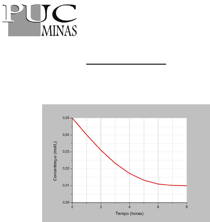 2ª LISTA DE EXERCÍCIOS 1.A sacarose decompõe-se em frutose e glicose em solução ácida. Uma curva da concentração de sacarose em função do tempo é dada abaixo. Qual é a velocidade de mudança da concentração de sacarose nas primeiras 2 horas? Qual é a velocidade de mudança nas duas últimas horas? Estime a velocidade instantânea em 4 horas. R)a) 0,0080mol/L.h; b)0,0025mol/L.h; c)0,0045mol/L.h 2.A constante de velocidade é 0,090 h-1 para reação: e a equação da velocidade é: a)Calcule a velocidade da reação quando a concentração de é 0,020mol/L. b)Qual a taxa de variação da concentração de nessas condições? R)a)0,0018mol/L.h ; b)0,0018mol/L.h 3.A sacarose, um açúcar, decompõe-se em solução ácida em glicose e frutose. A reação é de primeira ordem em relação à sacarose, e a constante de velocidade a 25°C é = 0,21 h-1. Se a concentração inicial de sacarose for 0,010 mol/L, qual será sua concentração após 5,0 h? R)0,0035mol/L 4.O gasoso decompõe-se quando aquecido: .O desapa- recimento do é uma reação de primeira ordem com = 3,6x10-3 s-1 a 300°C. Uma amostra de gasoso é colocada em um frasco e aquecida a 300°C durante 150 s. a)Que fração da amostra inicial permanecerá após esse tempo? b)Por quanto tempo deve-se aquecer uma amostra para que 99% da amostra se decomponha? R)a)0,58; b)1300s 5.Usando a constante de velocidade para decomposição do , = 30L/mol∙min a 443°C, calcule concentração de após 12 minutos se [HI]0 = 0,010 mol/L. A decomposição do é: ; R) = 0,0022mol/L 6.Dê as velocidades relativas de desaparecimento de reagentes e formação de produtos para cada uma das reações abaixo: R)a)-[ [ ]/ t]/2= [ [ ]/ t]/3 ; b) )-[ [ ]/ t]/2= [ [ ]/ t]/2 7.Na reação ��, a velocidade de formação de é 1,5x10-3 mol/L∙s. Qual a velocidade de decomposição do ? R)a)1,0x10-3mol/L.s 8.Dados experimentais são listados aqui para a reação tempo (s) [B] (mol/L) 0,00 0,000 10,0 0,326 20,0 0,572 30,0 0,750 40,0 0,890 a)Prepare um gráfico com estes dados, conecte os pontos e calcule a taxa de variação de para cada intervalo de 10s até 40s. A taxa de variação diminui de um intervalo de tempo para o próximo? Sugira o motivo para este resultado. b)Como a taxa de variação de está relacionada com a taxa de variação de em cada intervalo? Calcule a taxa de variação de no intervalo de 10 a 20 s. c)Qual é a velocidade instantânea quando = 0,750 mol/L? R)a)0,0326, 0,0246 , 0,0178, 0,0140mol/L.s;b) )- [ �� EMBED Equation.3 / t ] =0,0123; c) 0,0166mol/L.s 9.A reação entre ozônio e dióxido de nitrogênio a 231K: é de primeira ordem tanto em relação a quanto a : a)Escreva a equação de velocidade para a reação. b)Se a concentração de for triplicada, qual será a variação na velocidade da reação? c)Qual será o efeito sobre a velocidade de reação se a concentração de for cortada pela metade? R)a)Triplica-se a taxa; reduz-se à metade 10.A equação de velocidade para a hidrólise da sacarose formando frutose e glicose: é“ ”. Depois de 2,57 h a 27°C, a concentração de sacarose caiu de 0,0146M para 0,0132M. Determine a constante . R)0,0392h 11.A decomposição de é uma reação de primeira ordem: . A constante de velocidade para a reação é 2,8 x 10-3 min-1 a 600K. Se a concentração inicial de é de 1,24 x 10-3 mol/L, quanto tempo levará para que a concentração diminua a 0,31 x 10-3 mol/L? R) t=500min 12. O cianato de amônio, , sofre rearranjo em água para formar a uréia, : . A equação de velocidade para esse processo é “Velocidade = 2 ”, onde = 0,0113 L/mol min. Se a concentração original de em solução é 0,229 mol/L, quanto tempo levará para concentração diminuir para 0,180 mol/L? R)t=105min 13.O peróxido de hidrogênio , decompõe-se em e em uma reação que é de primeira ordem em relação ao , e com uma velocidade de = 1,06 x 10-3 min-1. a)Quanto tempo levará para que 15% de uma amostra de sofra decomposição? b)Quanto tempo levará para que 85% de uma amostra sofra decomposição? R)a)153min; b) 1790min 14.O açúcar comum, reage em solução ácida diluída, formando glicose e frutose. Ambos os produtos apresentam a mesma fórmula : A velocidade dessa reação foi estudada em solução ácida, e os dados na tabela a seguir foram obtidos. tempo (min) [C12H22O11] (mol/L) 0 0,316 39 0,274 80 0,238 140 0,190 210 0,146 a)Trace um gráfico dos dados da tabela na forma de ln[sacarose] versus tempo e 1/[sacarose] versus tempo. Qual a ordem da reação? b)Escreva a equação da velocidade de reação e calcule a constante de velocidade . c)Faça uma estimativa da concentração de sacarose após 175 min. R)taxa=0,0037, primeira ordem; b) v= [ ]; c) 0,167mol/L 15.Dados para decomposição do óxido de dinitrogênio sobre uma superfície de ouro a 900°C são fornecidos. Verifique que a reação é de primeira ordem preparando um gráfico de ln[ ] versus tempo. Determine a constante de velocidade a partir do coeficiente angular nesse gráfico. Usando a lei de velocidade e o valor de , determine a velocidade de decomposição a 900°C quando = 0,035 mol/L. tempo (min) [N2O] (mol/L) 15,0 0,0835 30,0 0,0680 80,0 0,0350 120,0 0,0220 R) = 0,0128min-1; b)4,5x10-4mol/L.min. 16. O gasoso se decompõe a 573K: A concentração do foi medida em função do tempo. Um gráfico de versus tempo dá uma reta com coeficiente angular de 1,1 L/mol•s. Com base nessa informação, qual é a lei de velocidade para essa reação? Qual é a constante de velocidade? R)a) segunda ordem; b) 1,1L/mol.s 17.Para reação , um gráfico �� EMBED Equation.3 versus tempo dá uma reta com um coeficiente angular de + 0,04 L/mol•s. Qual é a lei de velocidade para essa reação? R)v=0,04[ ]2 18.Quando aquecido, o tetrafluoroetileno sofre dimerização, formando o octafluorociclobutano: Para se determinar a velocidade de reação a 488K, os dados da tabela a seguir foram obtidos. A análise foi fe
