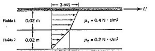 2ª LISTA DE EXERCÍCIOS MECÂNICA DOS FLUIDOS 1-O coeficiente de difusão tem um valor de 0,5 lb/h.ft2.atm. Calcular o correspondente valor nas seguintes unidades ( g/s.cm2.mmHg). 2- Responda se as seguintes afirmativas abaixo estão certas ou erradas, justificando as respostas: a) um fluido viscoso em repouso ou em movimento uniforme não apresenta tensão cisalhamento. b) para o escoamento de um fluido viscoso em uma tubulação as tensões de cisalhantes são nulas. c) um fluido ideal em escoamento não apresentam tensões cisalhantes. d) denomina-se fluido newtoniano aquele que não apresenta viscosidade. 3-Consultar em tabela a viscosidade das seguintes substâncias: a) H2SO4 (60%) a 32°C b) Ar, 50°C, 1atm c) Álcool etílico 40%, 95% e 100% a 20°C d) CO2 a 30°C, 1atm 4- Qual a força aplicada à placa superior da figura, cuja a área é 0,0035m2, para que a velocidade seja de 0,40 ft/s, sendo que 0,05 in a distância entre as placas e 0,09 poise a viscosidade do fluido. SUPONDO A PLACA INFERIOR FIXA. 5- A viscosidade cinemática de um óleo é 0,028 m2/s, e o seu peso específico relativo é 0,9. Determinar a viscosidade dinâmica em unidades dos sistemas MK*S e CGS. 6- São dadas duas placas paralelas a distância de 2mm. A placa superior move-se a 4m/s, enquanto que a inferior está fixa. Se o espaço entre as duas placas for preenchido com óleo. (v=0,1 St e 90 utm/m3); a) Qual será a tensão de cisalhamento no óleo? b) Qual a força necessária para rebocar a placa superior de área 0,5 m2? 7-Considere o escoamento mostrado na figura abaixo. Nele duas camadas de fluidos são arrastadas pelo movimento da placa superior, com velocidade U = 3 m/s. A placa inferior permanece imóvel. O fluido do topo exerce uma tensão de cisalhamento na placa superior e o fluido do fundo exerce uma tensão de cisalhamento na placa inferior. Sabendo-se que a razão entre o valor da tensão de cisalhamento na superfície da placa superior e aquele referente à tensão de cisalhamento que atua na placa inferior é igual a 2, determinar: a) O valor da velocidade dos fluidos na interface entre as camadas de fluido; b) a taxa de deformação sofrida pelo fluido do topo; c) a força viscosa exercida pela placa imóvel sobre o fluido do fundo (considerar uma área de contato do fluido igual 0,5 m² no topo e no fundo).
