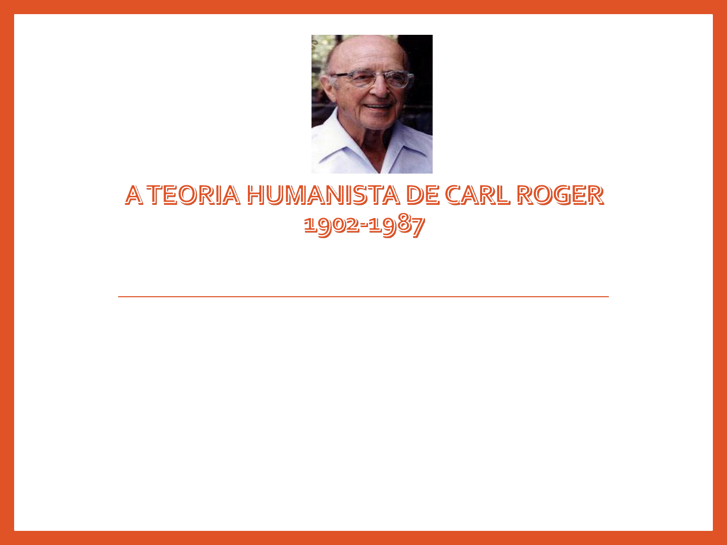 A TEORIA HUMANISTA DE CARL ROGER 1902-1987 Devemos estar atentos para a formação da pessoa, a importância de viver em busca de uma harmonia consigo mesma e com o entorno social ROGER 1964 TERAPIA CENTRADA NO CLIENTE A teoria humanista vê o homem como centro de interesse, sendo o modelo do mundo. Este homem se caracteriza pela sua dignidade, individualidade, subjetividade e liberdade a sanidade mental e o desenvolvimento pleno das potencialidades pessoais são tendências naturais da evolução humana. Removidos eventuais obstáculos nesse processo, as pessoas retomam a progressão construtiva. CLINICA X EDUCAÇÃO A terapia rogeriana se define como não-diretiva e centrada no cliente (palavra que Rogers preferia a paciente), porque cabe a ele a responsabilidade pela condução e pelo sucesso do tratamento. O terapeuta apenas facilita o processo. Em seu ideal de ensino, o papel do professor se assemelha ao do terapeuta e o do aluno ao do cliente. COMPARANDO ÁS OUTRAS TEORIAS A teoria rogeriana - tem como característica um extenso repertório de expressões próprias - surgiu como uma terceira via entre os dois campos predominantes da psicologia em meados do século 20. A psicanálise, criada por Sigmund Freud (1856-1939), com sua prática balizada pela ortodoxia O behaviorismo, que na época tinha B. F. Skinner (1904-1990) como expoente e se caracteriza pela submissão à biologia. Rogers e a educação As ideias de Rogers para a educação são uma extensão da teoria que desenvolveu como psicólogo. Rogers estava convencido de que as pessoas só aprendem aquilo de que necessitam ou o que querem aprender. sobre a relação aluno-professor, deve ser carregada de confiança e destituída de noções de hierarquia A avaliação, recompensa e punição estão completamente excluídas, exceto na forma de auto-avaliação. Embora anticonvencional, a pedagogia rogeriana não significa abandonar os alunos a si mesmos, mas dar apoio para que caminhem sozinhos. O PAPEL DO PROFESSOR Em seu ideal de ensino, o papel do professor se assemelha ao do terapeuta e o do aluno ao do cliente. A tarefa do professor é facilitar o aprendizado, que o aluno conduz a seu modo. ensinar é: mais que transmitir conhecimento – despertar a curiosidade, instigar o desejo de ir além do conhecido desafiar a pessoa a confiar em si mesmo e dar um novo passo em busca de mais. educar para a vida e para novos relacionamentos Criticas sobre o ensino tradicional Rogers criticou a política de ensino tradicional, por fazer do professor o possuidor do conhecimento e o aluno, recipiente.. desta forma, o sistema educacional dá lugar apenas ao intelecto, e não para o ser humano como um todo. “A aula, ou algum meio de instrução verbal, é a forma principal de colocar conhecimento no recipiente. O exame avalia até onde o estudante o recebeu. Estes são os elementos centrais deste tipo de educação”. Interação professor x aluno O objetivo é chegar a uma aprendizagem significativa, que só é obtida porque a direção da aprendizagem é escolhida pelo estudante, a aprendizagem é auto iniciada e, principalmente, pelo fato de a pessoa estar investida inteira no processo, a motivação e o interesse são essenciais para o aprendizado bem sucedido Individualidade x percepção A realidade é particular e individual, pois cada sujeito a percebe de acordo com o que experimenta. o homem é visto em sua totalidade e, portanto, a educação deveria seguir o mesmo princípio. o processo de aprendizagem significativa será mais completo, profundo e duradouro se envolver não só cognição, mas também os sentimentos e as experiências vivenciadas pelo estudante A crítica ao aprendizado cognitivo O aprendizado Cognitivo é algo sem sentido para o aprendiz, visto que ele é apenas obrigado a aprender alguma coisa porque faz parte do currículo, não conseguindo enxergar nenhuma utilidade prática no estudo. Sobre as atividades aprende a aprender, ou seja, se conhece o suficiente para entender os mecanismos que facilitam a aquisição do conhecimento preterido. A disciplina externa é substituída pela autodisciplina. A avaliação é fundamentalmente uma auto avaliação, que pode ser enriquecida pelo facilitador e pelo grupo. Concluindo A educação humanista volta-se para a obtenção de aprendizagens que vão além do intelecto, objetivando uma formação integral do ser humano, para que este chegue a ter uma vida feliz e repleta de experiências satisfatórias. Roger conseguiu fundamentar os passos para se chegar à realização efetiva destes objetivos, e propôs uma verdadeira revolução na política da educação existente na década de 70 ATIVIDADE Para Roger , a tarefa do professor é liberar o caminho para que o estudante aprenda o que quiser. Baseando-se neste conceito, crie uma situação de uma aula ( conteúdo a escolha do grupo) para alunos de series iniciais . Atividade complementar Documentário projeto Ancora y https://www.youtube.com/watch?v=mUj6tXBF3Jk