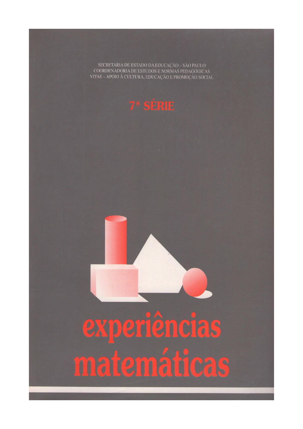GOVERNO DO ESTADO DE SÃO PAULO SECRETARIA DE ESTADO DA EDUCAÇÃO COORDENADORIA DE ESTUDOS E NORMAS PEDAGÓGICAS Governador: Luiz Antonio Fleury Filho Secretário: Carlos Estevam Aldo Martins Coordenadora: Regina Maria Ferraz Elero Ivamoto EXPERIÊNCIAS MATEMÁTICAS 7ª série Versão preliminar Elaboração: Célia Maria Carolino Pires Dulce Satiko Onaga Maria Nunes Ruy Cesar Pietropaolo Suzana Laino Cândido Vinício de Macedo Santos Colaboração: José Carlos F. Rodrigues SÃO PAULO 1994 CENP 447 Publicação amparada pela Lei n° 5.988, de 14 de dezembro de 1973. Distribuição gratuita Serviço de Documentação e Publicações Ilustrações: José Carlos F. Rodrigues Capa: Equipe Técnica de Matemática (criação) Eduardo Martins Kebbe (execução) Impresso: República Federativa do Brasil SECRETARIA DE ESTADO DA EDUCAÇÃO - SÃO PAULO COORDENADORIA DE ESTUDOS E NORMAS PEDAGÓGICAS Rua João Ramalho, 1.546 05008-002 - São Paulo - SP Telefone: 864-5700 Fax: 864-7432 SÃO PAULO( Estado) Secretaria da Educação. Coordenadoria de S241e Estudos e Normas Pedagógicas. Experiências matemáticas: 7ª série. Versão preliminar. São Paulo: SE/CENP, 1994. 390p.il. 1. Ensino de 1º grau – Matemática I. Título CENP 447 О CDU 373.3:51 Aos Professores Quando se considera o ato de aprender como uma construção, por parte do aluno, surgem indagações sobre o que significa ensinar nessa circunstância, e qual é o papel do professor, se o protagonista do processo é o próprio aluno. O Projeto Experiências Matemáti- cas procura responder a estas expectativas contribuindo para a realização de um trabalho em sala de aula em que o aluno se engaja no processo de produção matemática. É com essa perspectiva que a Coordenadoria de Estudos e Normas Pedagógicas apresenta este trabalho para apoiar a ação docente. Regina Maria Ferraz Elero Ivamoto Coordenadora da CENP Apresentação Este material é produto do projeto Experiências Matemáticas - um trabalho integrado com professores de 5ª s a 8ª s séries do ensino fundamental - cujo desenvolvimento foi iniciado, junto à rede pública estadual de São Paulo, em 1993. Esse projeto, elaborado por membros da Equipe Técnica de Matemática da Coordenadoria de Estudos e Normas Pedagógicas - CENP - e mais dois professores convidados foi apresentado à Fundação Vitae - Apoio à Cultura, Educação e Promoção Social - que, aprovando-o, responsabilizou-se pelo financiamento em 1993, da elaboração da primeira etapa das testagens e da reelaboração, cabendo à Secretaria de Estado da Educação, como contrapartida, a impressão desta versão, e implementação do trabalho com o material, tendo em vista uma avaliação mais abrangente do projeto. A capacitação dos professores aplicadores e o acompanhamento e avaliação do material em sala de aula também ocorrerá sob a responsabilidade da Equipe Técnica de Matemática da CENP que envolverá, nesse processo, Assistentes de Apoio Pedagógico, Diretores de Escola e Supervisores de Ensino. É importante ressaltar que o desenvolvimento desse projeto foi motivado, essencialmente, pelos resultados do trabalho com as "Atividades Matemáticas", conjunto de sugestões destinadas aos professores de Ciclo Básico, 3as e 4as séries que, segundo depoimentos de professores e especialistas da área, têm contribuído para a renovação do ensino de Matemática não apenas na rede pública estadual paulista, nas escolas municipais, particulares e mesmo, em outros estados brasileiros. Nos últimos anos, inúmeras solicitações foram feitas no sentido de que déssemos continuidade ao trabalho, estendendo-o às séries finais do ensino fundamental, inclusive para atender aos alunos que, acostumados a aulas mais dinâmicas, a participarem ativamente da construção do conhecimento, a questionarem os porquês das regras matemáticas, das técnicas, das convenções adotadas etc., não aceitavam as aulas tradicionais e o papel de meros espectadores. Os objetivos de um projeto, evidentemente, só se concretizam com o empenho de muitas pessoas. Por isso, não podemos deixar de externar alguns agradecimentos: Agradecemos à FUNDAÇÃO VITAE, por acreditar nesse trabalho e contribuir para sua viabilização, demonstrando seu compromisso com a melhoria da qualidade do ensino, num momento tão delicado por que passa a educação brasileira. Agradecemos aos colegas Conceição Aparecida Tavares Bongiovanni e José Carlos Fernandes Rodrigues por sua colaboração no desenvolvimento do projeto. Agradecemos aos Assistentes de Apoio Pedagógico das Delegacias de Ensino que colaboraram com crítica e sugestões e, especialmente, aos das Delegacias de Ensino que participaram da primeira etapa das testagens: • Iara Aparecida Siqueira - DE de Catanduva/DRE São José do Rio Preto • Luiza Mieko Terezinha Lôbo – 1ª DE Guarulhos/DRE Norte • Maria Aparecida de Jesus Ortigosa - DE de Garça/DRE de Marília • Maria José Merlin Benedetti – 1ª DE de São Bernardo do Campo/DRE Sul. Agradecemos aos Professores Aplicadores que testaram o material e que contribuíram de forma significativa para o projeto, mostrando o compromisso do educador com o aperfeiçoamento necessário e constante de seu trabalho: • Antonio Marcos Torres, Francisco Fernando Bidoia, Marilda da Silva Lopes Flores, Sandra Helena Siqueira, de escolas da DE de Catanduva. • Álvaro Torres Galindo, Eunyce Cagniatti Gallina, Fábio Roquini, Manuel da Costa Fernandes, de escolas da 1ª DE de Guarulhos. • Geni Segura Athayde, Maria de Fátima Vieira Grandizoli Moura, Odete Guirro de Paula, Wilma Mutuco Tagami, de escolas da DE de Garça. • Cecília Maria da Silva Gomes, Cleonice Garcia Martins, Marlene Basileu da Silva Rodrigues, Vanda Lopes de Araujo, de escolas da DE de São Bernardo do Campo. Finalmente, gostaríamos de convidar a todos os professores de Matemática, especialmente aos da rede estadual a ler, debater, criticar as sugest