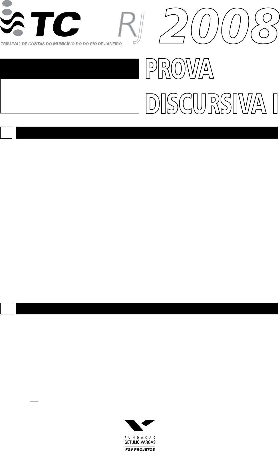 CRITÉRIOS PARA AVALIÇÃO DA PROVA DISCURSIVA CONCURSO PÚBLICO 2008 AUDITOR M J 1. Você recebeu o seguinte material: a) 1 (um) caderno destinado ao rascunho, contendo os 6 (seis) enunciados da Prova Discursiva I; b) 6 (seis) folhas destinadas às respostas definitivas. 2. As páginas para rascunho são de uso opcional; portanto, sem efeito para avaliação. 3. As folhas de textos definitivos da Prova Discursiva I são o único documento válido para a avaliação desta prova. 4. Caso este caderno ou as folhas de textos definitivos da Prova Discursiva I estejam incompletos ou contenham qualquer defeito, o candidato deverá solicitar ao fiscal de sala que o substitua. 5. É permitida a consulta a códigos e textos legais, desde que não comentados, nem anotados ou contendo acórdão ou remissão à jurisprudência, entendimento doutrinário ou súmulas e enunciados. 6. Não serão distribuídas folhas suplementares para rascunho ou para texto definitivo. INFORMAÇÕES GERAIS 7. É proibido permanecer com aparelhos eletrônicos (pager, telefone celular, agenda eletrônica, relógio digital, etc.) durante o período de realização da prova. 8. A duração da prova é de 4 (quatro) horas, já incluindo o tempo destinado à identificação – que será feita no decorrer da prova – e à transcrição dos textos definitivos para as respectivas folhas. 9. Ao terminar a prova, o candidato deve chamar o fiscal mais próximo e devolver-lhe as folhas contendo os textos definitivos da Prova Discursiva I e deixar o local de prova. 10. O candidato poderá levar consigo este Caderno de Prova, desde que transcorrido o tempo de 3h30min. (três horas e trinta minutos) do início da prova. 11. Será anulado o texto definitivo que for escrito a lápis ou contiver identificação fora do local apropriado. 12. Não será considerado, para efeito de avaliação, qualquer fragmento de texto que for escrito fora do local apropriado e/ou que ultrapassar a extensão máxima de 15 (quinze) linhas para cada resposta. A. QUANTO AO CONTEÚDO A esta prova, conforme instrução do Edital, serão atribuídos, para cada questão, pontos entre 0 e 10. A subdivisão dos pontos obedecerá ao estabelecido no padrão de resposta, que será disponibilizado com o espelho de correção. B. QUANTO AOS ASPECTOS MICROESTRUTURAIS Neste critério serão computados os seguintes erros: 1. acentuação, grafia e crase; 2. impropriedade vocabular; 3. repetição ou omissão de palavras; 4. estrutura do período; 5. pontuação; 6. uso de conectores; 7. concordância verbal ou nominal; 8. regência verbal ou nominal; 9. emprego de pronomes; 10. outros. C. FÓRMULA DE CÁLCULO NF = nota final | A = soma dos subitens do conteúdo | B = quantidade de erros dos aspectos microestruturais | TL = total de linhas efetivamente ocupadasNF = A 3B TL − TRIBUNAL DE CONTAS DO MUNICÍPIO DO RIO DE JANEIRO – CONCURSO PÚBLICO 2008 2 Enunciados da Prova Discursiva I Questão 1 Faça a distinção entre os princípios da unidade e universalidade do orçamento, destacando a finalidade de cada um. Questão 2 Na elaboração da Lei de Diretrizes Orçamentárias, ela deve conter o Anexo de Metas Fis- cais. Esclareça, de forma sucinta, sua finalidade e conteúdo. Questão 3 Discorra sobre o Sistema de Compensação, no âmbito da Contabilidade Pública. Questão 4 Tendo como base o orçamento público da União, estabeleça a distinção entre o Anexo de Riscos Fiscais e o Relatório de Gestão Fiscal, abordando também em qual(is) documento(s) ambos devem estar previstos. Fundamente a resposta nos dispositivos pertinentes. Questão 5 No Brasil, há duas correntes quanto à natureza das decisões proferidas pelos Tribunais de Contas. Discorra sobre a argumentação doutrinária de cada uma delas. Questão 6 Discorra sobre as características qualitativas da informação contábil segundo a Estrutura Conceitual para a Elaboração e Apresentação das Demonstrações Contábeis elaborada pelo CPC e aprovada pelo CFC (Res. 1.121/08), abordando objetivamente os dois pontos a se- guir: • Quais são as características qualitativas? • Explique cada uma delas. RASCUNHO AUDITOR — PROVA DISCURSIVA I 3 RASCUNHO TRIBUNAL DE CONTAS DO MUNICÍPIO DO RIO DE JANEIRO – CONCURSO PÚBLICO 2008 4 RASCUNHO AUDITOR — PROVA DISCURSIVA I 5 RASCUNHO TRIBUNAL DE CONTAS DO MUNICÍPIO DO RIO DE JANEIRO – CONCURSO PÚBLICO 2008 6 RASCUNHO AUDITOR — PROVA DISCURSIVA I 7