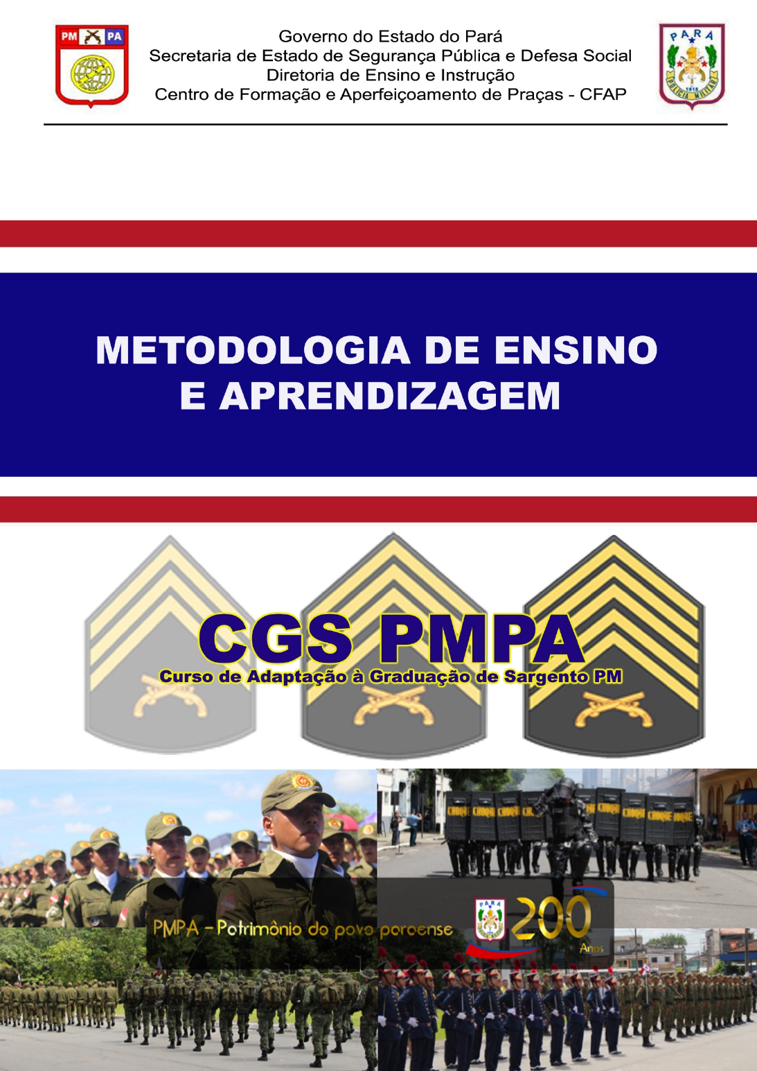 1 2 POLÍCIA MILITAR DO PARÁ COMANDO GERAL DIRETORIA DE ENSINO E INSTRUÇÃO CENTRO DE FORMAÇÃO E APERFEIÇOAMENTO DE PRAÇAS 2019 CURSO DE ADAPTAÇAO À GRADUAÇÃO DE SARGENTOS PM 2019 METODOLOGIA DE ENSINO E APRENDIZAGEM 3 CHARLET, Ronaldo Braga e CUNHA JÚNIOR, Raimundo Gonçalves da. Metodologia de Ensino e Aprendizagem (Curso de Adaptação à Graduação de Sargentos). Belém-PA: Centro de Formação e Aperfeiçoamento de Praças – CFAP, 2019. 2ª edição (revista e ampliada). 4 APRESENTAÇÃO Caro (a) discente, O CGS tem como objetivo habilitar os sargentos ao exercício das atividades do nível hierárquico de sargento PM com qualidade, eficiência, eficácia e efetividade e, para isso, um conjunto de disciplinas foi escolhido para que, uma vez ministradas no ambiente de capacitação continuada, pudesse proporcionar o atingimento desse desiderato. Entre tais disciplinas está a Metodologia do Ensino e Aprendizagem que busca capacitá-los para o exercício das atividades ligadas ao planejamento, gestão, assessoramento, avaliação e execução das atividades de ensino como instrutores e monitores atuando, neste caso em particular, subsidiariamente em apoio aos instrutores. E para isso, é necessário o desenvolvimento das competências cognitivas, operativas e atitudinais inerentes à prática do ensino e voltadas à facilitação do processo de aprendizagem de modo a que o 3º Sargento PM concluinte da disciplina possa atuar com qualidade, eficiência, eficácia e efetividade como monitor. No afã de alcançar os objetivos da disciplinar e com o intuito de tornar esse processo agradável e prazeroso, convidamos a cada um para que aproveite, ao máximo, os momentos em sala-de-aula e, juntos, construirmos a disciplina a partir do material ora apresentado, o qual não tem a pretensão de esgotar o assunto, mas tão somente ser o pontapé inicial rumo à busca incessante dos conhecimentos inerentes ao ofício de ensinar/aprender. Boa leitura! RENATO DUMONT VIÉGAS LEAL – CEL PM Diretor de Ensino e Instrução da PMPA 5 APRESENTAÇÃO DOS PROFESSORES CONTEUDISTAS RONALDO BRAGA CHARLET - MAJOR PM CARREIRA MILITAR: Incluiu na Polícia Militar em 1994, no CFAP, no CFSD PM/94. Fez o CFC PM/97, no CFAP. Curso na APM “Cel Fontoura”, o CFO nos anos de 1998/2000. Possui os cursos policiais militares de Força Tática, Policiamento Montado, Promotor e Multiplicador de Polícia Comunitária, Básico de Inteligência Policial, e o estágio de Controle de Distúrbios Civis. Ministra aulas de História da PM, Técnica de Ensino, Teoria Geral de Polícia e Policiamento Montado, no CFAP e APM. Serviu nas seguintes unidades: CFAP, 2º BPM, BPCHQ, CIRP, APM, 1º BPM, 6º BPM, RPMont, EME, DEI, EMG, AJG e Museu da PM, onde exerce a função de Chefe. Possui as seguintes medalhas militares: Láurea do Mérito Pessoal, 10 e 20 anos de Bons Serviços, Tiradentes e Ordem do Mérito Grão-Pará. Atuou na SENASP/DF na equipe de revisão da matriz curricular nacional. Promoções: SD PM – 1994; CB PM – 1998; ASP OF PM – 2000; 2º TEN PM – 2001; 1º TEN PM – 2003; CAP PM – 2007; MAJ PM – 2014. FORMAÇÃO E ATUAÇÃO CIVIL: É bacharel e licenciado em História (UFPA); graduado em Segurança Pública e Defesa Social (UEPA); especialista em Patrimônio Histórico e Cultural do Pará (UFPA); pós-graduado em Gestão e Segurança Ambiental (UFPA); é mestre em planejamento do desenvolvimento (NAEA/UFPA). Atuou na pesquisa de identificação de áreas de populações remanescentes de quilombo. É sócio efetivo do Instituto Histórico e Geográfico do Pará – IHGP, onde ocupa a cadeira nº 47, cujo patrono é Armando Bordalo da Silva, atuando nesse instituto na Comissão de Defesa do Patrimônio Histórico de Belém. É doutor honoris causa da Ascubra – Associação Cultural de Bragança e membro honorário da Academia de Letras de Bragança – ALB. Ministrou aula nas universidades Vale do Acaraú – UVA, nos polos de Belém, Castanhal e Santarém e na Faculdade Ipiranga, polo de Belém, no curso de pós-graduação em ensino de história do Brasil. RAIMUNDO GONÇALVES DA CUNHA JUNIOR – CAP QOAPM R/R CARREIRA MILITAR: Ingressou na Polícia Militar do Pará no ano de 1989, no CFAP, onde concluiu o Curso de Formação de Soldados PM 89 – 1ª Turma. Fez o Curso de Formação de Cabos PM Corneteiros, em 1992, no BPCHOQUE. Frequentou o Curso de Formação de Sargentos PM, em 1993. Frequentou o Curso de Aperfeiçoamento de Sargentos PM 2003, obtendo o 1º lugar geral do curso. Ingressou no Curso de Habilitação de Oficiais PM no ano de 2008, na Academia de Polícia Militar “Cel Fontoura”, alcançando o 1º lugar do curso e sendo promovido ao posto de 2º TEN QOAPM no dia 20 de março de 2009. Possui os cursos de Técnica de Ensino realizado pela Força Aérea Brasileira no CFAP, Curso de Formação de Docentes – 6ª Turma, realizado no IESP. Foi monitor dos Cursos de CFSD, CFC e CFS PM do CFAP, no período de 1993 a 2002 e instrutor da APM “Cel Fontoura” nos Cursos do CFO PM e CHO PM, no período de 2009 a 2014, onde dentre algumas disciplinas destacam-se Redação Técnica e Ordem unida III, além de ter desempenhado a função de Coordenador Disciplinar do CHO PM/2012. Possui as seguintes medalhas militares: Láurea do Mérito Pessoal, 10 e 20 anos de Bons Serviços, Tiradentes, Fontoura e General Ferreira Coelho (Duas Rosas Heráldicas). Atuou e atua nos Cursos à Distância da Rede da SENASP/DF como Tutor dos Cursos de Redação Técnica e Capacitação em Educação para o Trânsito para Profissionais de Segurança Públicas. Promoções: SD PM – 1989; CB PM – 1992; 3º SGT PM – 1993; 2º SGT PM – 2000; 1º SGT PM – 2004; SUBTEN PM 2007; 2º TEN PM – 2009; 1º TEN PM – 2011; CAP PM – 2014. FORMAÇÃO E ATUAÇÃO CIVIL: É licenciado pleno em Língua Portuguesa pela UFPA. Ministrou Língua Portuguesa no PROJOVEM e na Escola de Ensino Fundamental e Méd