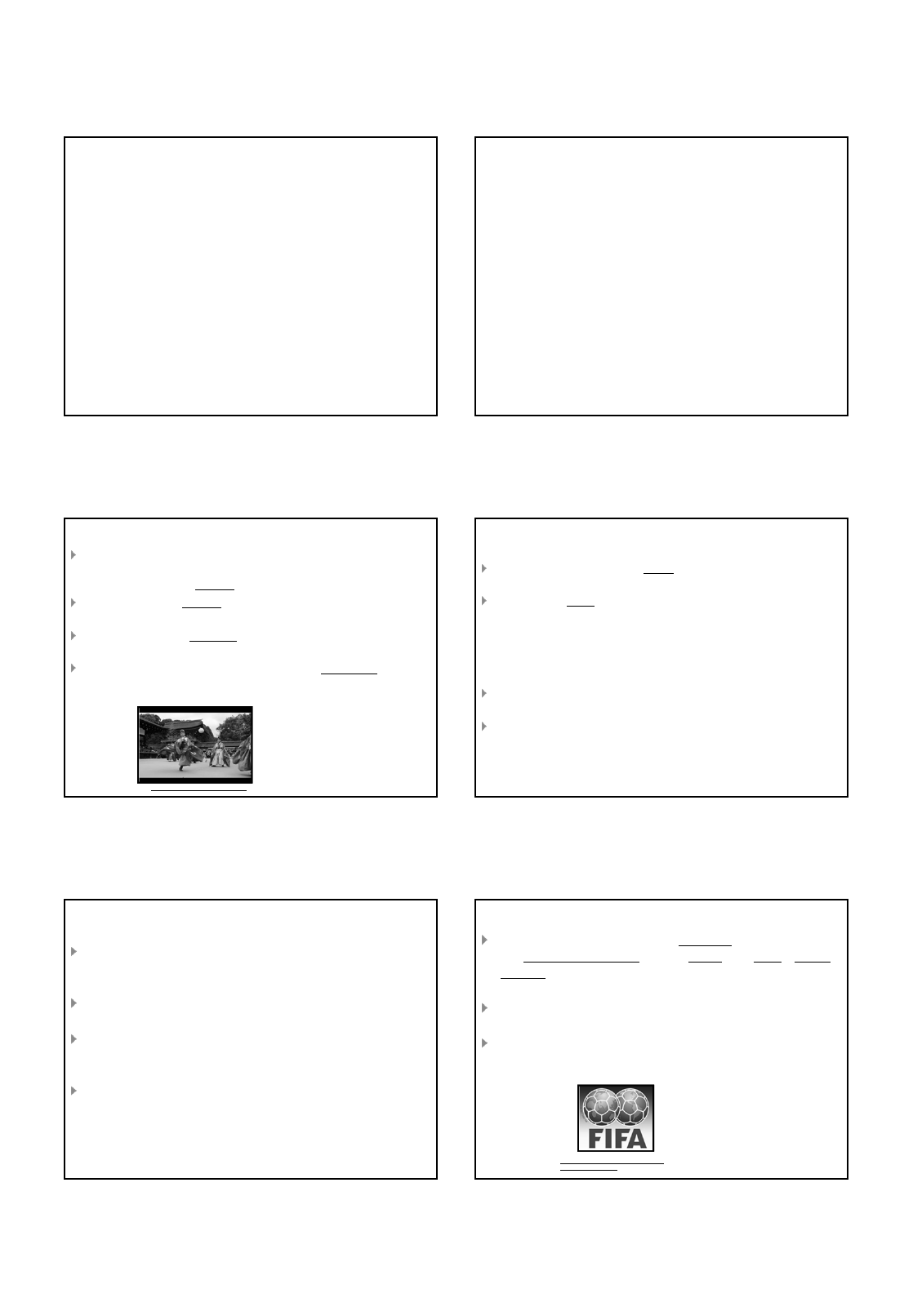 28/09/2018 1 Metodologia do Ensino do Futebol/Futsal Aula 1 História do futebol e do futsal e o treinamento do goleiro HISTÓRICO DO FUTEBOL Na China Antiga, por volta de 3000 a.C, os militares chineses praticavam uma modalidade que na verdade era um exercício militar, denominado Tsu-chu. No Japão, surge o Kemari, sendo praticado por nobres japoneses, a bola era de fibra de bambu. Com o nome de Epyskiros, surge o futebol na Grécia, que simbolizava a juventude. Oitocentos anos depois do Epyskiros, surge o Harpastum, futebol jogado pelo povo romano, a bola era de bexiga de boi coberta com uma capa de couro, chamada de follis. Fonte:https://i.ytimg.com/vi/UO3vRH2z8jo/hqdefa ult.jpg - acesso em 17 jul 2018 HISTÓRICO DO FUTEBOL Na Itália Medieval, surge o Cálcio, a 17 de Fevereiro de 1529 em Florença. Na França, o Soule, semelhante ao Calccio Fiorentino, mas parente distante do futebol, atravessou fronteiras e chegou à Grã- Bretanha, onde evoluiu e aprimorou-se, chegando ao surgimento do Rugby. O critério do jogo era levar a bola da praça de uma cidade até a praça da cidade adversária. Quem chegasse primeiro até o recinto do inimigo era o vencedor. Pesquisas revelam que o Gioco Del Calcio oriundo da Itália e veio para a Inglaterra por volta do século XVII. Foi organizado na Inglaterra, onde o jogo ganhou regras diferentes, sendo sistematizado. Em 1822, a Inglaterra, Escócia, País de Gales e Irlanda, fundam a “International Board” que tem como missão principal regular as leis do jogo em todo mundo. No ano de 1848, numa conferência em Cambridge, estabeleceu-se um único código de regras para o futebol. No ano de 1871 foi criada a figura do “guarda-redes” (goleiro) que seria o único que poderia colocar as mãos na bola. Em 1875, foi estabelecida a regra do tempo de 90 minutos e em 1891 foi estabelecido o pênalti, e em 1907 foi estabelecida a regra do impedimento. HISTÓRICO DO FUTEBOL O jogo moderno foi criado na Inglaterra com a formação da Football Association, cujas regras de 1863 (26 de outubro) são a base do desporto na atualidade, Giulianotti (2002). Em 1904 é fundado a FIFA, e quatro anos mais tarde, 1908, o futebol é admitido nos jogos olímpicos. A 08 de Junho de 1914 é criada a Confederação Brasileira de Desportos, (CBD), atual C.B.F. e em 1916 é fundada a Confederação Sul-Americana de Futebol. HISTÓRICO DO FUTEBOL Fonte: http://s3.amazonaws.com/armstrongeconomics- wp/2015/05/FIFA-Logo.jpg - - acesso em 17 jul 2018. 28/09/2018 2 O surgimento do futebol no Brasil apresenta quatro correntes que são: O futebol surgiu através de marinheiros ingleses ou holandeses. Os padres jesuítas o teriam trazido da Europa. Mister Hugh, teria ensinado futebol em Jundiaí, no ano de 1882. As referências bibliográficas citam que o futebol no Brasil surgiu através do paulista Charles Miller. Charles Miller, em 1894, trouxe da Inglaterra para São Paulo, duas bolas de couro, uma bomba de encher bola, camisas, calções e chuteiras. O futebol surge no Rio de Janeiro a partir do ano de 1901, por Oscar Cox, após sua chegada da Europa. O SURGIMENTO DO FUTEBOL NO BRASIL Fonte:http://i.dailymail.co.uk/i/pix/2014/06/07 /article-01E8537C100000578-987_306x423.jpg - acesso em 17 jul 2018 Vídeo https://youtu.be/I_L7ljBtGLE - acesso em 28 set 2018 Você Sabia - Como Surgiu o Futebol Qual a importância de apresentar aspectos históricos dos esportes em aulas de Educação Física? O HISTÓRICO DO FUTSAL O SURGIMENTO DO FUTSAL NO MUNDO � Segundo a Confederação Brasileira de Futsal, o Futsal surgiu na década de 30 em Montevidéu (Uruguai), onde os jogos na várzea eram praticados nas quadras de outras modalidades e até mesmo em espaços adaptados. � Entretanto, as regras iniciais do Futebol de Salão foram escritas apenas em 1933 – extraídas de algumas modalidades – pelo Professor de Educação Física da ACM – Associação Cristãs de Moços/Uruguai, Juam Carlos Ceriani. HISTÓRICO DO FUTSAL Fonte:http://clamtec.com.br/futsalsergipano/w p-content/uploads/2015/01/historico_juan.jpg - acesso em 17 jul 2018 28/09/2018 3 O futebol de salão começou a ser praticado no ano de 1940 por jovens frequentadores da Associação Cristã de Moços (ACM) de São Paulo. As bolas eram de crina vegetal, serragem ou cortiça granulada e sofreram sucessivas modificações, diminuindo o seu tamanho e aumentando seu peso. Daí o fato de o futebol de salão ser chamado também de "esporte da bola pesada". HISTÓRICO DO FUTSAL Fonte:http://futline.com.br/histoacuteria .html - acesso em 17 jul 2018 De início as equipes variavam de número, tendo cinco, seis e até sete jogadores, mas pouco a pouco foi fixado o limite de cinco. Durante um curso promovido pelo Instituto Técnico da Federação Sul-Americana da Associação Cristã de Moços, foram distribuídos cópias das regras a todos os representantes. HISTÓRICO DO FUTSAL Fonte:http://files.pastorelias.com/200015206- c81e5c9184/futsal.jpg - acesso em 17 jul 2018 Nas décadas de 60 e 70 o futebol de salão conquistava o continente como desporto ordenado e regulamentado. Com a fundação da Confederação Sul-Americana de Futebol de Salão, que congregava quase todos os seus países, surgiram os primeiros campeonatos Sul Americanos de clubes e de seleções nacionais. HISTÓRICO DO FUTSAL Fonte:http://2.bp.blogspot.com/9xkpA0oPW7o/T go4VzY20uI/AAAAAAAAAgQ/sCPWlEL7iKk/s1600/ Guido_04.jpg - acesso em 17 jul 2018 Na década de 80 ocorreu a grande mudança na trajetória do futebol de salão pois é feita sua fusão com o futebol de cinco (prática esportiva reconhecida pela Fifa). Surge então o "Futsal" terminologia adotada para identificar esta fusão no contexto esportivo internacional. HISTÓRICO DO FUTSAL Fonte:http://imagens.terceirotem po.bol.uol.com.br/28/72/arq_828 72.jpg - acesso em 17 jul 2018 Com o futsal tendo seu vínculo a FIFA, a possibilidade de se tornar um esporte olímpico foi se tornando mais realidade, fa