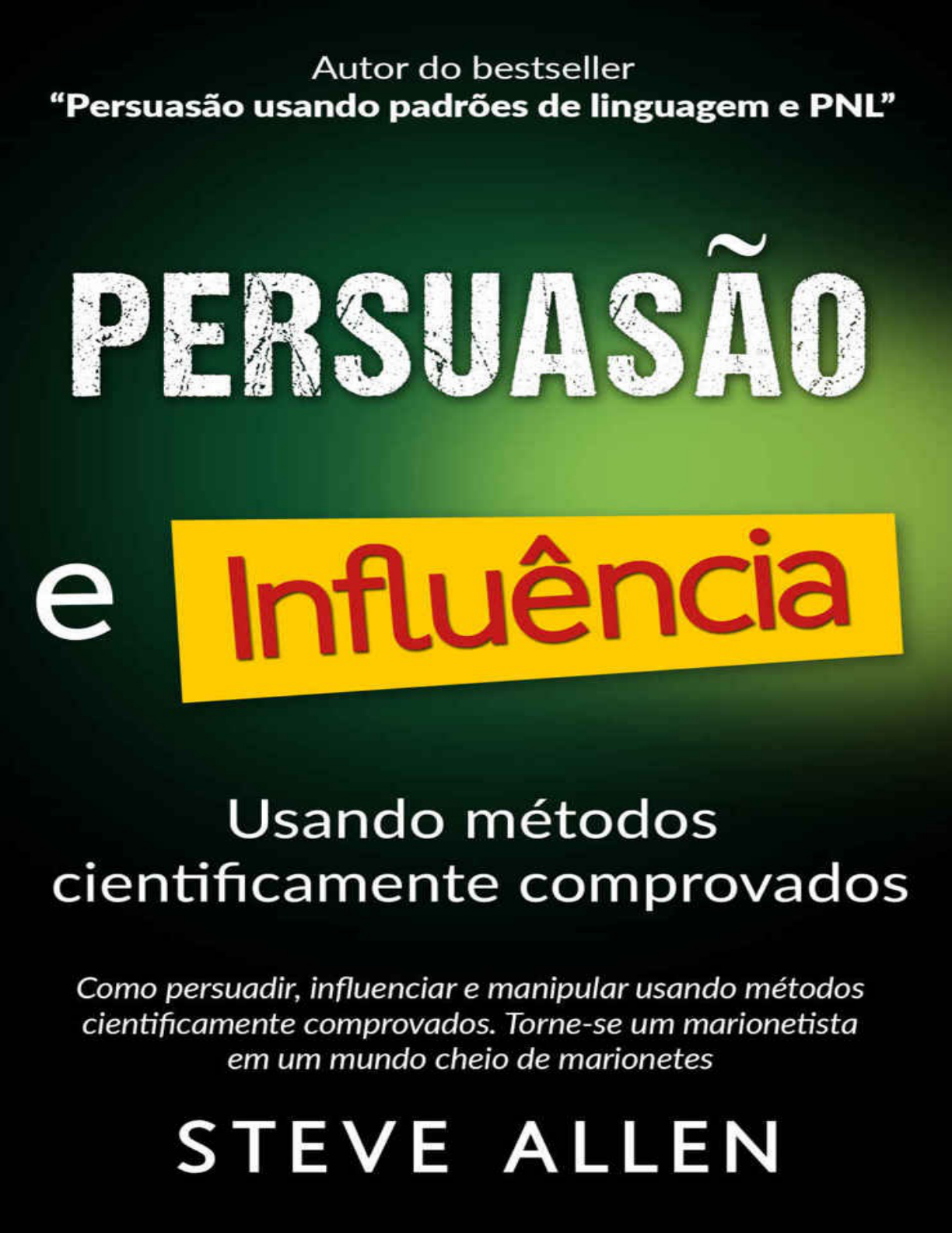 PERSUASÃO E INFLUÊNCIA USANDO MÉTODOS CIENTIFICAMENTE COMPROVADOS Como persuadir, influenciar e manipular usando métodos cientificamente comprovados. Torne-se um marionetista em um mundo cheio de marionetes Steve Allen D. Edição 1.0 – Fevereiro de 2017 Publicado por Steve Allen na CreateSpace ISBN: 978-1543132823 Copyright © 2017 por Steve Allen Descubra outros títulos do autor em www.amazon.com/author/pnl Todos os direitos reservados, incluindo os direitos de reprodução total ou parcial, de qualquer forma. Sumário Introdução Por que as plantas sabem mais de persuasão do que os seres humanos O que é persuasão Métodos básicos de condicionamento, persuasão e manipulação Sistema de recompensa-punição Sistema de condicionamento clássico Método de reação A necessidade de ser um modelo especial Por que a maioria das pessoas falha ao persuadir O que nos motiva Teste de personalidade de duas perguntas Algumas palavras sobre as máscaras de comportamento Como interagir de forma eficaz com os 4 tipos de personalidades Os 7 motivadores universais Hierarquia de necessidades de Maslow Como fazer com que alguém esteja de acordo com você Passo a passo do procedimento de persuasão A aproximação Perguntas Concordar com a necessidade Autoridade Apresentação da solução Fechar O segredo para nunca mais discutir Princípios de persuasão Empatia Credibilidade Semelhança Agradar Autoridade Reciprocidade Contexto e tempo Interesse e necessidade Compromisso e consistência Escassez Persistência Aumente seu poder de persuasão Modele a percepção Sua mentalidade Percepção e comportamento Condicionando uma mente aberta As duas formas como podemos avaliar as mensagens Dois fatores que determinam a maneira como a sua mensagem será avaliada Estratégia de persuasão: Modificar o tipo de avaliação Dicas e truques para persuadir Senso de urgência Aproveite o cansaço Como persuadir um cético A promessa pode persuadir Peça que estejam de concordo com você sobre algo Um argumento equilibrado é mais persuasivo Ver para crer O estranho paradoxo da escolha A repetição é a chave Os homens respondem melhor aos e-mails do que pessoalmente Limitar a quantidade de informações Se você estiver vendendo para os homens, use fotos de mulheres Persuada apenas aqueles que podem ser persuadidos As pessoas desinteressadas não podem ser persuadidas A reciprocidade é uma arma Descubra suas expectativas e as supere Faça com que pareça escasso Seja flexível em seu comportamento Apelo popular Exclusividade Superioridade por associação Mostrar e explicar Derrube os muros Ataque preventivo Usar o medo O poder persuasivo do medo Fórmulas de persuasão e sua utilização AIDA PAS CVB IPPP Estrela - História - Solução 5 objeções básicas Método Forest Padrões de linguagem Como passar pelo "guarda na porta" Estado Beta Estado Alfa Padrões de linguagem para passar pelo guarda na porta A arte da escrita persuasiva Comece com um título chamativo, atraente Comece com o positivo Responda as perguntas do leitor Transforme suas palavras em uma história Use palavras-chave Não repita Planeje seu e-mail Técnica de manipulação Manipulação através da técnica da iluminação a gás Técnicas extra de persuasão Truque de persuasão: Transmitir grandes expectativas A técnica do pé na porta Procedimento Lowball (bola baixa) Conclusão Introdução Você já se perguntou como pode persuadir eficazmente ou levar outra pessoa a contribuir com a sua causa? Se a resposta for sim, então definitivamente este livro é para você. A verdade é que tudo o que você tem neste momento e tudo o que terá no futuro é sempre fruto de suas interações com outras pessoas. Portanto, consciente ou inconscientemente, você está constantemente procurando persuadir, manipular e, em alguns casos, enganar outras pessoas através de suas palavras e ações. Antes mesmo da humanidade desenvolver a incrível capacidade de se comunicar verbalmente, o poder de persuasão era de grande importância e determinava a percepção dentre os de nossa espécie. Claro, naqueles dias a persuasão era principalmente física, e os mais fortes se tornavam os membros dominantes dos grupos. Felizmente evoluímos e agora podemos confiar nos meios verbais e intelectuais para procurar persuadir os outros. Parte da nossa capacidade de persuasão é herdada e intuitiva, mas a sua importância é tão grande que tem sido estudada como uma ciência há mais de sessenta anos. Eric Knowles, Professor emérito de psicologia na Universidade de Arkansas explicou isso muito bem quando ele disse: "A persuasão é uma forma básica de interação social. É a maneira pela qual construímos um consenso e um propósito comum". A persuasão é usada em ambientes sociais, políticos, de negócios, religiosos e seu domínio é crucial para cada um de nós, embora nós o usemos de maneiras diferentes. Neste livro você vai aprender técnicas de persuasão para conseguir que as pessoas queiram fazer o que você quer que elas façam. Nós seres humanos somos marionetes, se você sabe como controlar as cordas, então sabe como controlar o comportamento. Este livro vai lhe ensinar a controlar essas cordas. Você vai aprender a ser um marionetista em um mundo cheio de marionetes. Este livro contém as mais completas técnicas de psicologia humana, persuasão e manipulação para o ajudar a alcançar seus objetivos pessoais. Este livro é perfeito para quem quer melhorar suas interações com o meio onde vive. Nos primeiros capítulos, você aprenderá os conceitos fundamentais da psicologia humana, da persuasão e manipulação. Você vai aprender os métodos básicos de condicionamento e persuasão. Então, você vai aprender como determinar a motivações das pessoas. Dominar este conhecimento será como tomar controle das cordas de uma marionete. Você vai aprender a convencer as pessoas, sem que elas expressem nenhum argumento. Em seguida,
