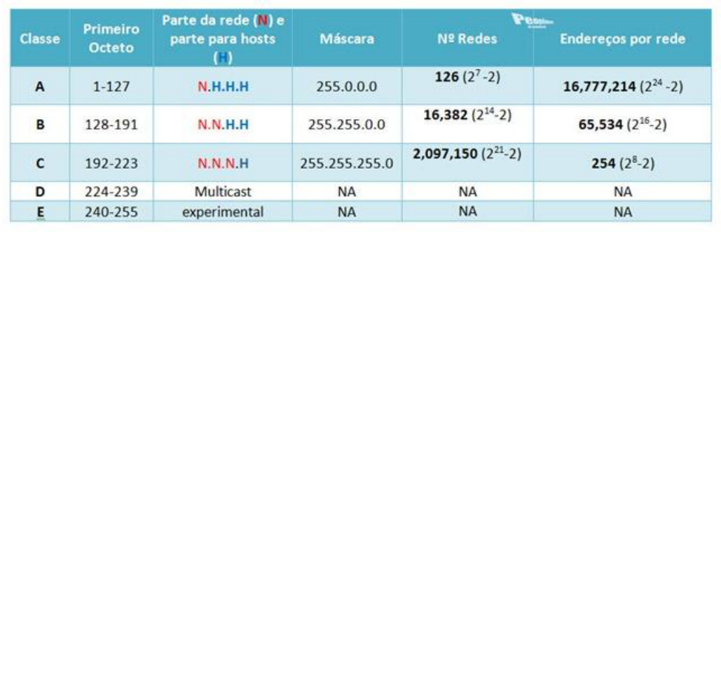 PROVA 15/08 Classes Redes A classe A possui um conjunto de endereços que vão desde o 1.0.0.0 até 127.0.0.0, onde o primeiro octeto (primeiros 8 bits N.H.H.H) de um endereço IP identifica a rede e os restantes 3 octetos ( 24 bits) irão identificar um determinado host nessa rede. Exemplo de um endereço Classe A – 120.2.1.0 A classe B possui um conjunto de endereços que vão desde o 128.0.0.0 até 191.255.0.0, onde os dois primeiros octetos (16 bits N.N.H.H) de um endereço IP identificam a rede e os restantes 2 octetos ( 16 bits) irão identificar um determinado host nessa rede. Exemplo de um endereço Classe B – 152.13.4.0 A classe C possui um conjunto de endereços que vão desde o 192.0.0.0 até 223.255.255.0, onde os três primeiros octetos (24 bits N.N.N.H) de um endereço IP identificam a rede e o restante octeto ( 8 bits) irão identificar um determinado host nessa rede. Exemplo de um endereço Classe C – 192.168.10.0 Máscara de rede Uma máscara de sub-rede, também conhecida como subnet mask ou netmask, é um número de 32 bits usado em um IP para separar a parte correspondente à rede pública, à sub-rede e aos hosts. A máscara de rede padrão acompanha a classe do endereço IP: num endereço de classe A, a máscara será 255.0.0.0, indicando que o primeiro octeto se refere à rede e os três últimos ao host. Num endereço classe B, a máscara padrão será 255.255.0.0, onde os dois primeiros octetos referem-se à rede e os dois últimos ao host, e num endereço classe C, a máscara padrão será 255.255.255.0 onde apenas o último octeto refere-se ao host. Os 32 bits das máscaras de sub-rede são divididos em duas partes: um primeiro bloco de 1s, indicando a parte do endereço IP que pertence à rede, seguido por um bloco de 0s, indicando a parte que pertence ao host. Quando coloco todos os bits da parte do host setados para zero, este endereço é reservado para o endereço da rede. Exemplo 1: 192.168.7.3 Classe: C ---- R.R.R.H; Máscara: 255.255.255.0; End Rede: 192.168.7.0 End BroadCast: 192.168.7.255; Exemplo 2: 172.12.7.9 Classe: B --- R.R.H.H Máscara: 255.255.0.0; End Rede : 172.12.0.0; End BroadCast: 172.12.255.255; Sub-rede Uma sub-rede é uma subdivisão lógica de uma rede IP. A subdivisão de uma rede grande em redes menores resulta num tráfego de rede reduzido, administração simplificada e melhor performance de rede. Dividir uma rede em sub-redes significa usar a máscara de sub-rede para dividir a rede em segmentos menores, ou sub-redes, mais eficientes e mais fáceis de gerir. Um exemplo semelhante seria o sistema telefónico, que é dividido em prefixos e números locais. O principal motivo para se usar sub-redes é reduzir o tamanho de um domínio de broadcast. Os broadcasts são enviados a todos os hosts em uma rede ou sub-rede. Quando o tráfego de broadcast começar a ocupar demais a largura de banda disponível, os administradores de rede poderão optar por reduzir o tamanho do domínio de broadcast. Endereço Broadcasting: Bit 1 em todos os bits do host; Endereço rede: Bit 0 em todos os bits do host; PROVA!!!!!! 192.168.1.5 255.255.255.192 11000000 SR H Qual o endereço de rede e broadcast da terceira sub-rede? 192.168.1. 00 192.168.1. 01 192.168.1. 10 000000 - 128 (REDE) 10 111111 - 191 (BROADCAST) 192.168.1. 11