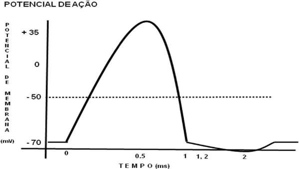 Aluno:_____________________________________________________________________________ Citologia – Luciana Cáuper - Exercício Proposto II – Transporte de substâncias e potencial de membrana 1. De acordo com o gráfico abaixo, preencha os parênteses das afirmativas com os respectivos termos listados: 1- BOMBA DE Na+/K+ 2- PERÍODO REFRATÁRIO ABSOLUTO 3- PERÍODO REFRATÁRIO RELATIVO 4- REPOLARIZAÇÃO 5- HIPERPOLARIZAÇÃO a. No tempo de 0,5 ms a membrana inicia o processo de ( ), pois atingiu o período de ultrapassagem, “overshoot”. b. O período entre 0 ms e 1 ms é chamado de ( ), pois neste período a membrana não pode ser estimulada novamente. c. No tempo de 2 ms, nota-se que a membrana está ( ), pois o potencial de membrana está mais negativo do que quando em repouso. d. Para sair do estado em que se encontra aos 2 ms, é ativado o mecanismo da ( ), que faz com que a membrana retorne ao estado de repouso, tornando-se polarizada novamente. e. No tempo de 1,2 ms a membrana pode ser estimulada novamente, gerando outro potencial de ação, caracterizando o período chamado de ( ). 2. Um neurônio recebeu um estímulo e teve sua membrana despolarizada. Isso significa dizer que: a) um potencial de ação foi desencadeado. b) houve diminuição da separação de cargas através da membrana. c) ocorreu efluxo de potássio. d) houve efluxo de sódio. e) os canais de potássio foram abertos.
