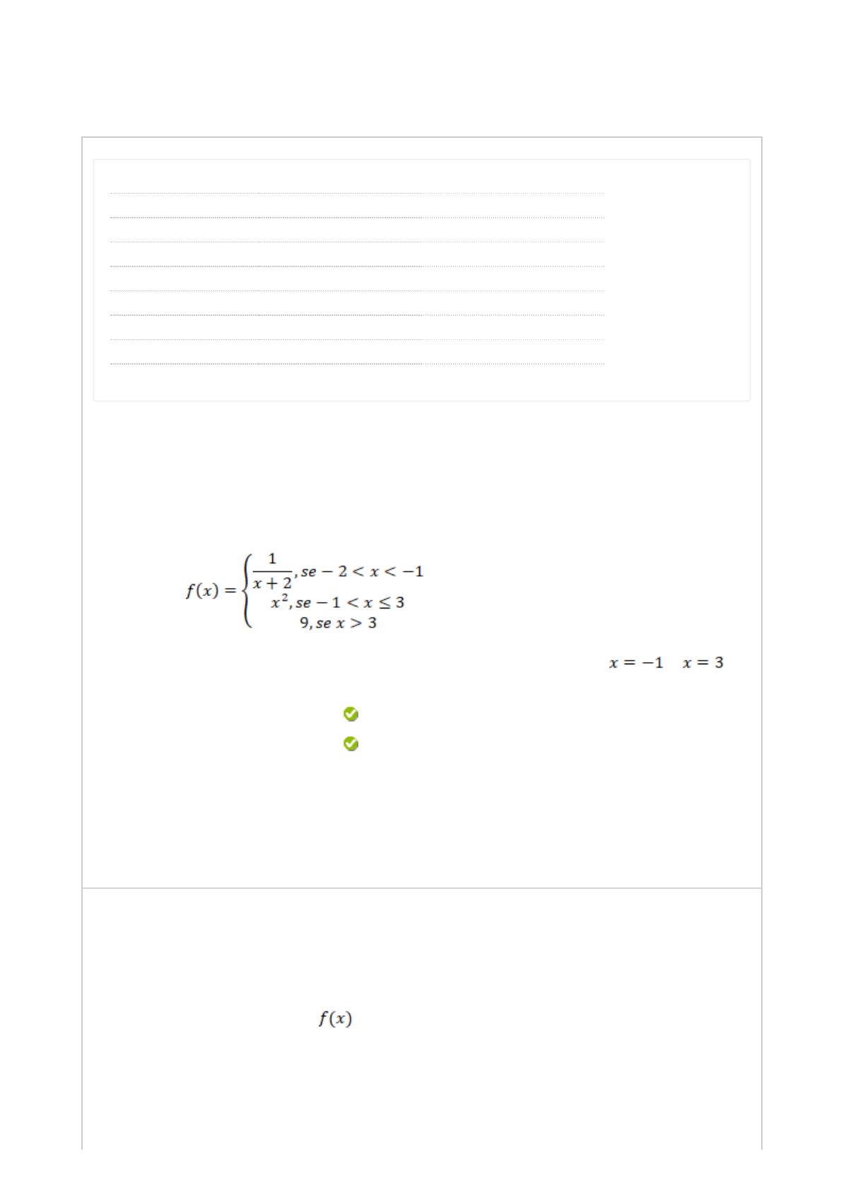 15/09/2019 Blackboard Learn https://fmu.blackboard.com/webapps/late-Course_Landing_Page_Course_100-BBLEARN/Controller 1/5 Revisar envio do teste: ATIVIDADE 1 Usuário ALEXIA FERNANDA BISERRA QUESADA Curso GRA0597 CÁLCULO I PNA (ON) - 201920.29769295.06 Teste ATIVIDADE 1 Iniciado 15/09/19 15:34 Enviado 15/09/19 16:32 Status Completada Resultado da tentativa 1,75 em 2,5 pontos Tempo decorrido 57 minutos Resultados exibidos Respostas enviadas, Respostas corretas, Comentários Pergunta 1 Resposta Selecionada: Resposta Correta: Feedback da resposta: Em muitas situações, uma função não pode ser definida por uma condição somente. Temos, então, que definir a função por várias sentenças ou inequações, que representam suas condições de existência. Quando esta situação ocorre, a função é nomeada como função definida por sentenças ou partes. Sendo assim, temos a função definida por partes dada por: Agora, responda: a função apresenta pontos de descontinuidade em e ? Use limites em suas análises. É contínua nos pontos dados. É contínua nos pontos dados. Resposta correta. Isso mesmo, sua resposta está correta! A função é contínua nos pontos apresentados, então, as condições de continuidade são todas satisfeitas. Lembre-se de que as três condições que estabelecem a continuidade de uma função em um dado ponto devem ser satisfeitas, simultaneamente. Pergunta 2 Aqui, vamos analisar a noção intuitiva sobre limites. Quando estudamos limites, devemos analisar o comportamento de uma função quando a variável independente tende a um certo valor. Sendo assim, observe os dados tabelados que se seguem. Nas tabelas a seguir, representa os valores da variável dependente. 0,25 em 0,25 pontos 0 em 0,25 pontos 15/09/2019 Blackboard Learn https://fmu.blackboard.com/webapps/late-Course_Landing_Page_Course_100-BBLEARN/Controller 2/5 Resposta Selecionada: Resposta Correta: Comentários da Resposta: Fonte: Elaborado pelo autor, 2018. Com base nos dados, analise as afirmativas a seguir. I. Quando estudamos limites de uma função, estamos interessados no valor da função em um dado ponto. II. Quando estudamos limites de uma função, estamos interessados no comportamento da função nas vizinhanças de um dado ponto. III. O limite da função tabelada quando tende a 1, tanto pela esquerda (valores menores que 1) quanto pela direita (valores maiores que 1), é igual a 3. IV. O limite nos diz se uma função é crescente ou decrescente. V. Para uma função ser contínua em um dado ponto, não é necessário que a função neste ponto seja igual ao valor do limite. Está correto o que se afirma em: I e III, apenas. II e III, apenas. Respostas incorretas. Infelizmente sua resposta está incorreta. Lembre-se sempre de que o limite representa uma tendência. Ele nos indica apenas uma tendência, ou seja, nos diz que, quando a variável tende a certo valor , a função tende a um valor . Reveja o conteúdo e tente responder novamente! Title: Limites no infinito Pergunta 3 Resposta Selecionada: Resposta Correta: Feedback da resposta: A derivada de uma função pode ser calculada pelas regras de limite ou usando as chamadas fórmulas básicas de derivação. Estas fórmulas são deduzidas a partir de limites, entretanto, representam uma maneira prática e rápida de cálculo de derivadas. Sendo assim, usando as regras de derivação, qual é a derivada da função ? . . Resposta correta. Isso mesmo, sua resposta está correta! O cálculo de derivadas segue as regras dadas no texto base. Você usou corretamente a fórmula de derivada de potência na função e descobriu que a derivada é . 0,25 em 0,25 pontos 15/09/2019 Blackboard Learn https://fmu.blackboard.com/webapps/late-Course_Landing_Page_Course_100-BBLEARN/Controller 3/5 Pergunta 4 Resposta Selecionada: Resposta Correta: Feedback da resposta: Em uma indústria automobilística, o lucro obtido na produção de carros é dado por reais. Esta função é muito importante, pois nos informa se a empresa está tendo lucro. Ao determinarmos a taxa de variação da função, ou seja, a taxa de variação do lucro, teremos informações ainda mais relevantes. Sendo assim, qual é o valor da taxa de variação da função lucro para carros? É preocupante o resultado obtido? A taxa é igual a reais/carro produzido. A situação para a empresa não é preocupante, indicando que a taxa de lucro está crescendo. A taxa é igual a reais/carro produzido. A situação para a empresa não é preocupante, indicando que a taxa de lucro está crescendo. Resposta correta. Isso mesmo, sua resposta está correta! Lembre-se sempre de que a derivada possui dois aspectos: ela equivale numericamente à inclinação da reta tangente a uma curva em um dado ponto e também representa uma taxa de variação. Pergunta 5 Resposta Selecionada: Resposta Correta: Feedback da resposta: Com relação às funções reais de variáveis reais, assinale verdadeiro (V) e falso (F). ( ) Toda função constante é paralela ao eixo x, mas nunca coincidente com esse eixo. ( ) Nas funções afim, o expoente de x será sempre um. ( ) O gráfico das funções quadráticas será sempre uma curva. ( ) É denominada função exponencial toda função cujo x possui um expoente maior que zero. ( ) A função logarítmica pode ser crescente ou decrescente, o que é definido pela base. F, V, V, F, V. F, V, V, F, V. Resposta Correta: F, V, V, F, V. A primeira afirmativa é falsa, pois o gráfico de função constante é sempre uma reta paralela ou coincidente ao eixo x. A segunda afirmativa é verdadeira, pois o gráfico de uma função afim é uma reta. A terceira afirmativa é verdadeira, uma vez que o expoente é 2; A quarta afirmativa é falsa, pois função exponencial é aquela função em que a variável está no expoente e cuja base é sempre maior do que zero e diferente de um. A quinta afirmativa é verdadeira, haja vista que, se a base for maior do que um, a função