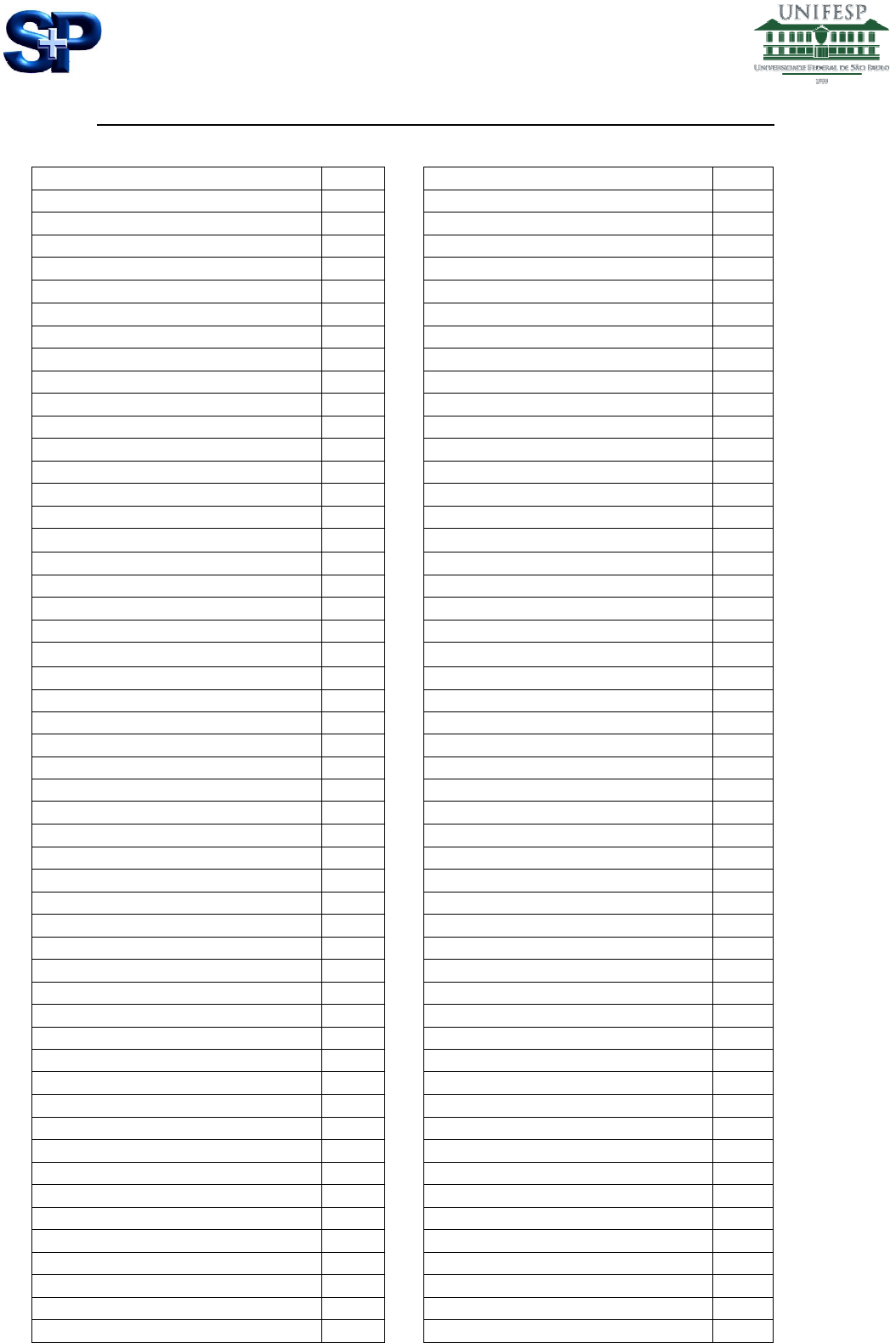 H O S P I T A L S Ã O P A U L O S P D M – A S S O C I A Ç Ã O P A U L I S T A P A R A D E S E N V O L V I M E N T O D A M E D I C I N A U N I V E R S I D A D E F E D E R A L D E S Ã O P A U L O D i r e t o r i a d e E n f e r m a g e m ABREVIATURAS, SIGLAS E ACRÔNIMOS PARA OS REGISTROS DE ENFERMAGEM A Critério Médico ACM Ecocardiograma ECO Acesso Venoso Periférico AVP Edema Agudo de Pulmão EAP Acidente Vascular Cerebral AVC Eletrocardiograma ECG Acidente Vascular Encefálico AVE Eletroencefalograma EEG Ácidos Graxos Essenciais AGE Enfermeiro Enf Água Bidestilada AD Equipamento de Proteção Individual EPI Autorização Internação Hospitalar AIH Evacuação Evac Antibiótico ATB Ferida Operatória FO Auxiliar de Enfermagem AE Fibribrilação Ventricular FV Avaliação pré-anestésica APA Fibrilação Atrial FA Bacilo Álcool-Ácido Resistente BAAR Fisioterapeuta Ft Balanço Hídrico BH Fístula Arteriovenosa FAV Balanço Hídrico Parcial BHP Fração Inspirada de Oxigênio FiO2 Balanço Hídrico Total BHT Freqüência Cardíaca FC Balão Intra-Aórtico BIA Freqüência Respiratória FR Batimentos Por Minuto BPM Gastrostomia GTM Bloqueio Átrio-Ventricular BAV Grama g Boa Perfusão Periférica BPP Hematócrito Ht Bomba de Infusão BI Hemitórax Direito HTD Bulhas Rítmicas Normofonéticas BRNF Hemitórax Esquerdo HTE Cânula Orotraqueal COT Hemoglobina Hb Cateter Central de Inserção Periférica PICC Hemorragia Digestiva Alta HDA Cateter Duplo Lúmen CDL Hemorragia Digestiva Baixa HDB Cateter Triplo Lumen CTL Higiene Oral HO Cateter Venoso Central CVC Hipertensão Arterial Sistêmica HAS Cateter Venoso Periférico CVP Hipertensão Intracraniana HIC Cateterismo Vesical Intermitente CVI Hora h Central de Desinfecção e Esterilização CDE Idade Gestacional... IG Centro Cirúrgico CC Incontinência Urinária IU Coagulação Intravascular Disseminada CIVD Índice de Massa Corporal IMC Código Internacional de Doenças CID Infarto Agudo do Miocárdio IAM Comissão Controle Infecção Hospitalar CCIH Infecção de Vias Aéreas Superiores IVAS Comprimido Cp Infecção do Trato Urinário ITU Comunicação de Acidente de Trabalho CAT Insuficiência Cardíaca Congestiva ICC Concentrado de Glóbulos Vermelhos CGV Insuficiência Coronariana ICO Conforme Prescrição de Enfermagem CPE Insuficiência Renal Aguda IRA Conforme Prescrição Médica CPM Insuficiência Renal Crônica IRC Débito Cardíaco DC Intubação Nasotraqueal INT Decúbito Dorsal DD Intubação Orotraqueal IOT Decúbito Lateral Direito DLD Jejunostomia JTM Decúbito Lateral Esquerdo DLE Kilograma kg Decúbito Ventral DV Líquido Cefaloraquidiano LCR Derivação Ventricular Externa DVE Lúpus Eritematoso Sistêmico LES Derivação Ventrículo Atrial DVA Membro Inferior Direito MID Derivação Ventrículo Peritonial DVP Membro Inferior Esquerdo MIE Diabetes Mellitus DM Membros Inferiores MMII Dia de Internação Hospitalar DIH Membro Superior Direito MSD Diálise Peritonial Intermitente DPI Membro Superior Esquerdo MSE Diálise Peritonial DP Membros Superiores MMSS Doença Pulmonar Obstrutiva Crônica DPOC Mercúrio Hg Doença Sexualmente Transmissível DST Micrograma µg Dopamina Dopa Miligrama Mg H O S P I T A L S Ã O P A U L O S P D M – A S S O C I A Ç Ã O P A U L I S T A P A R A D E S E N V O L V I M E N T O D A M E D I C I N A U N I V E R S I D A D E F E D E R A L D E S Ã O P A U L O D i r e t o r i a d e E n f e r m a g e m Minuto Min Solução Glicosada SG Murmúrios Vesiculares MV Sonda Nasoentérica SNE Noradrenalina Nora Sonda Nasogástrica SNG Nutrição Enteral NE Sonda Oroenteral SOE Nutrição Parenteral NP Sonda Orogástrica SOG Nutrição Parenteral Total NPT Sonda Vesical de Demora SVD Olho Direito OD Sondagem Vesical de Alívio SVA Olho Esquerdo OE Técnico de Enfermagem TE Parada Cardiorrespiratória PCR Temperatura T Plasma Fresco Congelado PFC Terapeuta Ocupacional TO Pós-Operatório Imediato POI Tomografia Computadorizada TC Pós-Operatório Tardio POT Transplante de Medula Óssea TMO Pós-Operatório PO Traqueostomia TQ Potencial Hidrogênico pH Trato Gastrointestinal TGI Pressão Arterial PA Trato Genitourinário TGU Pressão Arterial CO² PaCO² Traumatismo Cranio Encefálico TCE Pressão Arterial Invasiva PAI Tromboembolismo Pulmonar TEP Pressão Arterial Média PAM Trombose Venosa Profunda TVP Pressão de Artéria Pulmonar PAP Tuberculose TB Pressão Intra-Abdominal PIA Úlcera por Pressão UP Pressão Intracraniana PIC Ultrassonografia USG Pressão Positiva Expiratória Final PEEP Unidade U Pressão de Suporte Ventilatório PSV Unidade de Internação UI Pressão Venosa Central PVC Unidade de Terapia Intensiva UTI Procedimento Operacional Padrão POP Unidade de Tratamento de Queimadura UTQ Pronto Socorro PS Veia Femoral Direita VFD Pulso P Veia Femoral Esquerda VFE Pupilas Isocóricas e Fotorreagentes PIF Veia Jugular Direita VJD Quimioterapia QT Veia Jugular Esquerda VJE Radioterapia RT Veia Subclávia Direita VSCD Raio X RX Veia Subclávia Esquerda VSCE Recém Nascido RN Ventilação Controlada à Pressão PCV Recuperação da Anestesia RA Vent. Intermitente Mandatória Sincronizada SIMV Registro Hospitalar RH Ventilação Mecânica VM Respiração Por Minuto RPM Ventilação Não-Invasiva VNI Ressonância Nuclear Magnética RNM Via Intradérmica ID Ressucitação Cardiopulmonar RCP Via Intramuscular IM Ringer Lactato RL Via Intravenosa IV Ruído Hidroaéreo RHA Via Oral VO Saturação Periférica de Oxigênio SpO² Via Subcutânea SC Se Necessário SN Via Sublingual SL Segundo s Vias Aéreas Superiores VAS Serviço de Arquivo Médico e Estatístico SAME Volume Corrente VC Serviço de Nutrição e Dietética SND Glasgow Serviço de Verificação de Óbito SVO Abertura Ocular AO Síndrome Angústia Respiratória Aguda SARA Resposta Verbal RV Sínd. da Imunodeficiência Adquirida SIDA Resposta Motora RM Sist de Atendimento Médico de Urgência SAMU Sistema Nervoso Central SNC Manhã M