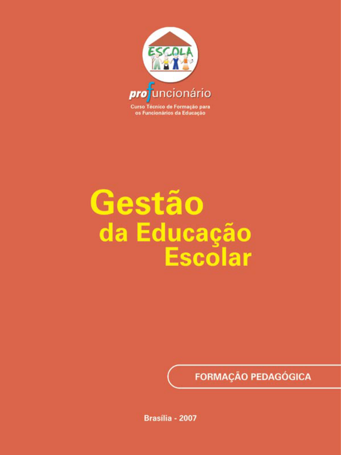 Governo Federal Ministério da Educação Secretaria de Educação Básica Departamento de Articulação e Desenvolvimento dos Sistemas de Ensino Universidade de Brasília – UnB Reitor Timothy Martin Muholland Vice-Reitor Edgar Nobuo Mamiya Coordenação Pedagógica do Profuncionário Bernardo Kipnis - CEAD/FE/UnB Dante Diniz Bessa - CEAD/UNB Francisco das Chagas Firmino do Nascimento - SEE/UnB João Antônio Cabral de Monlevade - FE/UnB Maria Abádia da Silva - FE/UnB Tânia Mara Piccinini Soares - MEC Centro de Educação a Distância - CEAD/UnB Diretor Interino - Sylvio Quezado Coordenação Executiva - Ricardo de Sagebin Unidade de Pedagogia Gestão da Unidade Pedagógica - Ana Luísa Nepomuceno Gestão da Unidade de Produção - Jovanka Sadeck Designer Educacional – Luciana Kury Freitas Revisão – Daniele Santos Capa e Editoração – Evaldo Gomes e Télyo Nunes Ilustração – Paulo Alexandre Rodrigues da Silva Unidade de Apoio Acadêmico Gestão da Unidade – Lourdinéia Martins da Silva Cardoso Gerente do Projeto – Diva Peres Gomes Portela Brasil. Ministério da Educação. Secretaria de Educação Básica. B823 Gestão da educação escolar / Luiz Fernandes Dourado. – Brasília : Universidade de Brasília, Centro de Educação a Distância, 2006. 88 p. – (Curso técnico de formação para os funcionários da educação. Profuncionário ; 6) ISBN 85-86290-57-2 1. Gestão da educação. 2. Escola pública. I. Dourado, Luiz Fernandes. II. Título. III. Série. CDU 37.014.2 3ª edição atualizada Dados Internacionais de Catalogação na Publicação (CIP) Apresentação O módulo 6, Gestão da Educação Escolar, é composto de cinco unidades e busca contribuir com a formação continu- ada dos funcionários da educação cujo processo de trabalho, desenvolvido em diferentes espaços como os da alimentação, da secretaria, dos multi-meios, do meio-ambiente e da infra-estrutura, contribui para que a escola pública cumpra com o seu papel social na formação dos estudantes. No presente módulo, vamos abordar as diferentes concepções da adminis- tração capitalista, destacando a especificidade da gestão educacional, seus desdobramentos, limites e possibilidades, no que concerne aos atuais proces- sos de organização e gestão. Além disso, vamos analisar também os limites e as possibilidades de construção de processos de participação que contribuam para o repensar da gestão da educação e da escola pública no país, envolvendo os diferentes sujeitos da comunidade local e escolar: estudantes, professores, fun- cionários, pais, equipe gestora e comunidade, dando ênfase ao papel dos funcio- nários da educação. A Unidade I busca refletir sobre a administração ou gestão da escola: as principais concepções e abordagens, tomando-a como um campo de disputa de projetos, cujos desdobramentos implicam formas de organização e gestão das escolas e a efetivação da educação como um direito social. Essa unidade aborda, ainda, a re- forma de Estado brasileiro e as perspectivas para a gestão escolar, buscando situar a relação entre educação, escola e Estado no Brasil e as políticas educacionais em curso no país. Ao mesmo tempo, procura contextualizar as políticas educacionais com a gestão democrática, para o avanço das lutas em prol da educação pública como direito social. A Unidade II busca analisar a gestão da educação e da escola por meio da compre- ensão da estrutura escolar no Brasil e dos contornos legais de seu funcionamento, que revelam conceitos, concepções e significados. Nessa busca, perceberemos a discussão da gestão democrática como princípio e motor nas lutas dos trabalha- dores em educação, na conquista do direito à educação para todos – como dever do Estado, expresso na atuação dos diversos entes federativos: União, Estados, Distrito Federal e os municípios. Dessa forma, a Unidade III analisa a gestão democrática da escola pública e aponta concepções, implicações legais e operacionais, com ênfase no projeto político-pe- dagógico e no trabalho coletivo na escola. Essa unidade ressaltará os processos de trabalho na escola, vinculando-os à construção da gestão democrática. Por sua vez, a Unidade IV analisa e discute os mecanismos de participação da uni- dade escolar e a construção de graus progressivos de sua autonomia. Ao enfatizar os processos e os mecanismos de participação, essa unidade destaca, entre outros, a escolha de diretores, os conselhos escolares e os grêmios estudantis, como espa- ços de vivência e aprendizado do jogo democrático. Por fim, a Unidade V retoma a discussão sobre a gestão democrática e os trabalha- dores da educação, evidenciando conceitos e concepções trabalhadas ao longo do módulo. Ela visa, fundamentalmente, destacar a ação pedagógica que se realiza na escola por meio do trabalho docente e não-docente e pretende ressaltar a necessi- dade da efetiva participação dos trabalhadores da educação na construção da ges- tão democrática na escola e na garantia da educação como um direito social. Objetivo Espera-se que o funcionário de escola possa compreender as diferentes concep- ções e abordagens da administração capitalista e a especificidade da gestão educa- cional, bem como aprenda a identificar as relações entre a reforma do Estado brasi- lieiro e a gestão escolar. Deseja-se, ainda, que o cursista, no exercício de seu fazer profissional e nos espaços de formação educativa na escola, possa compreender os princípios da gestão democrática e, principalmente, construí-la em seu cotidiano. Ementa Administração e gestão da educação: concepções, escolas e abordagens. A ges- tão da educação: fundamentos e legislação. Reforma do Estado brasileiro e gestão escolar. Gestão, descentralização e autonomia. Gestão democrática: fundamentos, processos e mecanismos de participação e de decisão coletivos. Mensagem do 