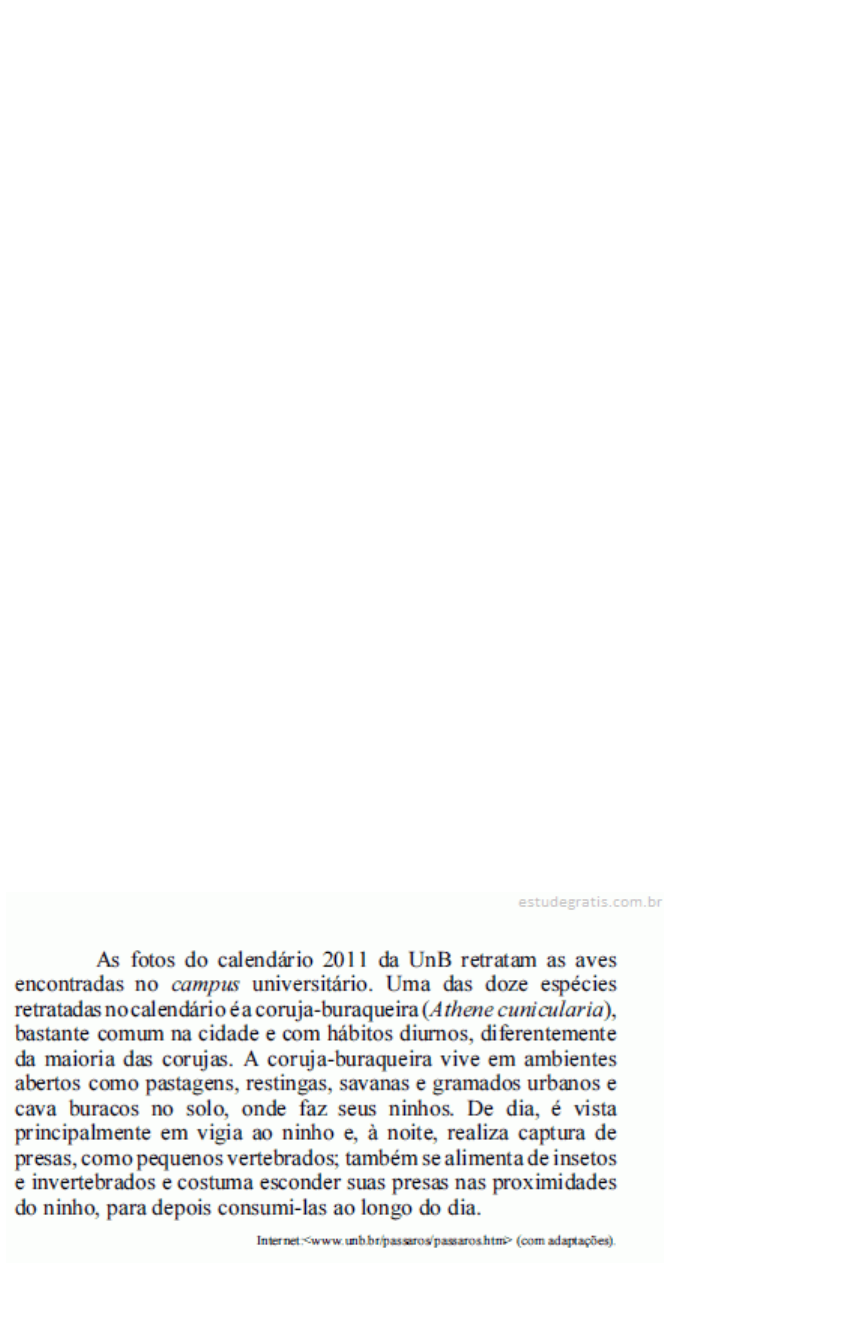 Para a coleta seletiva de lixo, os resíduos orgânicos, de plástico, de papelão e de vidro, são, respectivamente, descartados, em cestos de cor A.verde, amarelo, azul e marrom. B.amarelo, vermelho, marrom e azul. C.marrom, vermelho, azul e verde. D.vermelho, verde, amarelo e azul. Clique em uma opção abaixo para responder a questão: A B C D E questão 728010 comentários Biologia - Educação Ambiental - Fundação Carlos Chagas (FCC) - 2016 - SEGEP/MA - Analista Ambiental Uma empresa de mineração foi autuada por descartar rejeitos perigosos em um lixão clandestino. Considere as afirmações abaixo. I. Não houve disposição final ambientalmente adequada dos rejeitos que deveriam ter sido distribuídos de maneira ordenada em aterro adequado. II. Os rejeitos deveriam ter sido sujeitos a destinação final ambientalmente adequada, o que inclui o processo de reciclagem. III. A empresa está sujeita às penas previstas na Lei de Crimes Ambientais por dar disposição final ambientalmente inadequada a resíduos perigosos. As afirmações que podem ser utilizadas para a aplicação da autuação são: A.I, II e III. B.I, apenas. C.I e II, apenas. D.II e III, apenas. E.I e III, apenas. Clique em uma opção abaixo para responder a questão: A B C D E questão 659063 comentários Biologia - Educação Ambiental - Centro de Seleção e de Promoção de Eventos UnB (CESPE) - 2014 - FUB - Biólogo Com base nas informações descritas e nos conceitos de ecologia, julgue os itens subsecutivos. Sendo o papel o tipo de resíduo mais abundante na universidade, os devidos investimentos em infraestrutura e recursos humanos viabilizariam a produção do calendário com papel reciclado a partir dos resíduos gerados no campus. C.Certo E.Errado Clique em uma opção abaixo para responder a questão: Certo Errado questão 83106 comentários Biologia - Educação Ambiental - Fundação Carlos Chagas (FCC) - 2014 - SABESP/SP - Biólogo Para o uso racional da água é necessário A.investir na ampliação do sistema produtor de água a fim de fornecer água em quantidades que garantam o desenvolvimento futuro. B.incentivar o desenvolvimento de novas tecnologias, voltadas ao aumento da produção de água, a fim de manter o nível do consumo. C.investir na criação de novos mananciais, garantindo a curto e médio prazos, o fornecimento da água necessária à população. D.incentivar mudanças de hábitos e eliminar vícios de desperdício, com foco na conservação, e consequente aumento da disponibilidade de água. E.investir na ampliação do sistema de tratamento de esgoto de modo que a degradação da água por efluentes clandestinos seja minimizada. Clique em uma opção abaixo para responder a questão: A B C D E questão 83195 comentários Biologia - Educação Ambiental - Instituto Brasileiro de Formação e Capacitação (IBFC) - 2013 - Hemominas/MG - Engenheiro O termo _________________ refere-se ao processo de decomposição biológica de fração orgânica biodegradável de resíduos sólidos, efetuado por uma população diversificada de organismos em condições controladas de aerobiose e demais parâmetros, desenvolvido em duas etapas distintas: uma de degradação ativa e outra de maturação. Assinale a alternativa que completa a lacuna da sentença acima. A. aterro sanitário B. degradação C. segregação D. compostagem Clique em uma opção abaixo para responder a questão: A B C D E questão 84280 comentários Biologia - Educação Ambiental - Coordenadoria de Concurso e Exames Vestibulares (CEV / UFMT) - 2013 - UFMT/MT - Biólogo É correto o que se afirma em A.III, apenas. B.I e II, apenas. C.II, apenas. D.I e III, apenas. Clique em uma opção abaixo para responder a questão: A B C D E questão 83325 comentários Biologia - Educação Ambiental - Fundação para o Vestibular da Universidade Estadual Paulista (VUNESP) - 2012 - SEE/SP - Professor II Isabel Cristina de Moura Carvalho, no livro Educação Ambiental: a formação do sujeito ecológico (2008), sugere que para renovar a nossa visão de mundo, às vezes, é importante trocar as lentes, implicando em desnaturalizar os modos óbvios que tínhamos de ver as coisas. Isso é necessário, por exemplo, nas questões relativas ao meio ambiente. Propondo lançar novos olhares sobre a percepção de ambiente disseminada no conjunto da sociedade, a autora propõe uma visão socioambiental que consiste, em linhas gerais, numa visão A. que tende a considerar a natureza como o mundo de ordem biológica, pacificada, equilibrada, estável em suas interações ecossistêmicas, o qual segue vivendo como autônomo e independente da interação com o mundo cultural humano. B. orientada por uma racionalidade complexa e interdisciplinar, pensando o ambiente como sinônimo de natureza intocada, mas que pode ser afetado pelas constantes ações antrópicas e por fenômenos naturais. C. orientada por uma racionalidade complexa e interdisciplinar, pensando o ambiente como um campo de interações entre a cultura, a sociedade e a base física e biológica dos processos vitais. D. que tende a considerar a natureza como o mundo de ordem biológica, o qual segue vivendo como autônomo e independente da interação com o mundo cultural humano, exceto no caso de populações ribeirinhas e indígenas. E. orientada por uma racionalidade complexa e interdisciplinar, pensando o ambiente como um campo de interações entre a cultura e a sociedade, desconsiderando- se a base física e biológica dos processos vitais. Clique em uma opção abaixo para responder a questão: A B C D E questão 87668 comentários Biologia - Educação Ambiental - Núcleo de Concursos e Promoção de Eventos (NUCEPE) - 2011 - FMS/PI - Biólogo A educação ambiental brasileira é conhecida pelo seu engajamento político na construção de uma sociedade justa, sustentável e democrática, bem como o conhecimento acerca legislação ambiental. Das afirmativas abaixo, assinal