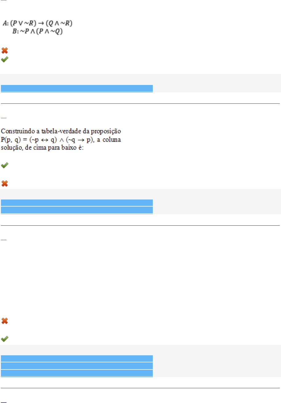 Considere os conectivos lógicos e as fórmulas proposicionais a seguir, sendo P, Q e R proposições simples. De acordo com interpretação das fórmulas proposicionais a seguir e suas tabelas-verdade: