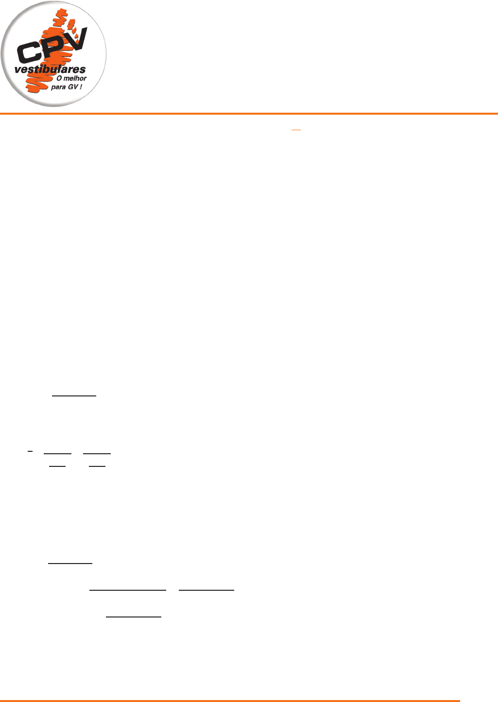 1 CPV FGVECODEZ2015_2F FGV – Economia – 2a Fase – 13/Dezembro/2015 CPV o Cursinho que mais aprova na GV MATEMÁTICA 01. Mauro iniciou um programa de perda de peso quando estava pesando 90 kg. A programação previa a perda de 1,6 kg na primeira semana, 1,5 kg na segunda, 1,4 kg na terceira, 1,3 kg na quarta, e assim sucessivamente até que a perda semanal de peso se estabilizasse em 0 kg, ocasião em que ele iniciaria o controle de manutenção do peso atingido. Sabe-se que o programa realizado por Mauro foi plenamente cumprido. a) Considere o período que vai do início do regime até o final da última semana em que Mauro perdeu algum peso e calcule a média mensal de perda de peso desse período. Para isso, admita meses com 4 semanas. b) Sendo P o peso de Mauro em quilogramas e n o número de semanas completas decorridas a partir do instante em que Mauro iniciou o programa de perda de peso, determine P em função de n, com n inteiro positivo. Resolução: a) Sequências das perdas: (1,6; 1,5; 1,4; ... , 0) P.A. de razão –0,1 0 = 1,6 + (n – 1) . (–0,1) Portanto, n = 17 S17 = (1,6 + 0)17 2 = 13,6 (soma de todas as perdas) A média mensal das perdas x = S17 17 4 = 13,6 17 4 = 3,2 Portanto a media mensal é de 3,2 Kg. b) Sendo: P (Peso de Mauro), n (número de semanas) e Sn (soma das perdas) Temos: P = 90 – Sn, Sn = [1,6 + an]n 2 e an = 1,6 + (n – 1) . (–0,1) = 1,7 – 0,1n Então: Sn = [1,6 + 1,7 – 0,1n] n 2 = (3,3 – 0,1n) n 2 Portanto, P = 90 – (3,3 – 0,1n) n 2 = 0,05n 2 – 1,65n + 90 FGV-Economia CPV o Cursinho que Mais aprova na GV CPV FGVECODEZ2015_2F 2 02. Um cubo possui aresta de medida 1 metro. Três vértices desse cubo são sorteados ao acaso para que, com eles, seja formado um triângulo. a) Calcule a probabilidade de que o triângulo formado seja retângulo. b) Admita que o triângulo formado após o sorteio tenha sido escaleno de vértices A, B e C, com AB sendo o menor dos seus lados. Calcule a área do triângulo ABC e, em seguida, calcule a medida dos segmentos determinados sobre AB quando esse lado do triângulo é intersectado pela bissetriz do ângulo oposto a ele. Vocabulário: Triângulo escaleno: triângulo com três lados de medidas diferentes. Bissetriz de um ângulo: semirreta que divide o ângulo ao meio. Resolução: a) Se considerarmos que teremos 4 triângulos retângulos em cada face, teremos 24 triângulos nas 6 faces. Se considerarmos o triângulo formado por uma aresta, diagonal da face e a diagonal do cubo, teremosmais 24 triângulos retângulos. Como o número de triângulos possíveis é 8( )3 = 56, portanto a Probabilidadeque o triângulo sorteado seja retângulo é P = 24 + 24 8( )3 = 48 56 b) Temos no cubo de aresta1 que a diagonal BC = 2 e a diagonal do cubo é AC= 3. A área do triângulo retângulo ABC da figura é dada por A = AB . BC 2 = 1 . 2 2 = 2 2 m2 A bissetriz do vértice C determina sobre o lado AB um ponto S tal que AS SB = AC BC = 3 2 (teorema das bissetrizes) Logo, AS = k 3 e SB = k 2 como AB = 1 = k 3 + k 2 temos: Que k = 1 3 + 2 = 3 – 2 então AS = 3 – 2 m e SB = 6 – 2 m 3 FGVECODEZ2015_2F CPV CPV o Cursinho que Mais aprova na GV FGV-Economia 03. A tabela mostra a série de um indicador econômico de um país, em bilhões de US$, nos 12 meses de 2013. Jan Fev Mar Abr Mai Jun Jul Ago Set Out Nov Dez 21 24 20 23 22 22 18 17 16 17 16 18 a) Calcule a média, a(s) moda(s), a mediana e a maior taxa mensal de crescimento (em porcentagem) dessa série. b) Sabe-se que, em janeiro de 2014, esse indicador econômico atingiu um valor positivo para o qual a nova série (de janeiro de 2013 até janeiro de 2014) passou a ter mediana de 18 bilhões de US$, e um número inteiro de bilhões de US$ como média mensal. Calcule o desvio médio (DM) dessa nova série. Dado: Desvio Médio = n å i = 1 | xi – x | n , sendo x a média aritmética. Resolução: a) Colocando os dados em ordem crescente, temos: 16, 16, 17, 17, 18, 18, 20, 21, 22, 22, 23, 24 A média será 16 + 16 + 17 + 17 + 18 + 18 + 20 + 21 + 22 + 22 + 23 + 24 12 = 19,5. A moda será representada por quatro deles, 16, 17 18 e 22 uma vez que cada um deles tem maior frequência e igual a 2. A mediana de uma amostra com um número par de termos é calculada pela média aritmética dos 2 termos centrais. Assim mediana será 18 + 20 2 = 19. A maior taxa de crescimento entre Março e Abril, sendo ela, 23 – 20 20 = 15%. b) Consideremos i, o indicador econômico de janeiro de 2014. Temos a nova média: x = 234 + i 13 Como x é um número inteiro, (234 + i) deverá ser múltiplo de 13. Se a mediana passou para 18, o indicador econômico de janeiro de 2014 é menor ou igual a 18. Assim, o indicador econômico de janeiro de 2014 será 13. A média, portanto, será 234 + 13 13 = 19 Assim, DM = 2 . | 16 – 19 | + 2 . | 17 – 19 | + 3 . | 18 – 19 | + | 20 – 19 | + | 21 – 19 | + 2 . | 22 – 19 | + | 23 – 19 | + | 24 – 19 | 13 DM = 6 + 4 + 3 + 1 + 2 + 6 + 4 + 5 13 = 31 13 FGV-Economia CPV o Cursinho que Mais aprova na GV CPV FGVECODEZ2015_2F 4 04. A lei de Benford, também chamada de “lei do primeiro dígito”, sugere que, em vários conjuntos de dados numéricos, a ocorrência dos algarismos de 1 a 9 no início dos números (da esquerda para a direita em cada número) do conjunto de dados não é igualmente provável. A lei se verifica em diversos conjuntos de dados reais como, por exemplo, o conjunto das populações dos diversos municípios de um país, o conjunto dos dados numéricos contidos nas contas de energia elétrica da população de um município, o conjunto dos comprimentos dos rios de um país etc. Quando a lei de Benford se aplica aos dados analisados, a probabilidade P(n) de que o algarismo n seja o primeiro algarismo em um dado numérico qualquer do conjunto de dados será P (n) = log (n + 1n ). Por exemplo, se a lei se aplica, a probabilidade de que o algarismo 1 (n = 1) seja o primeiro (da esquerda para a direita) em um número sortea