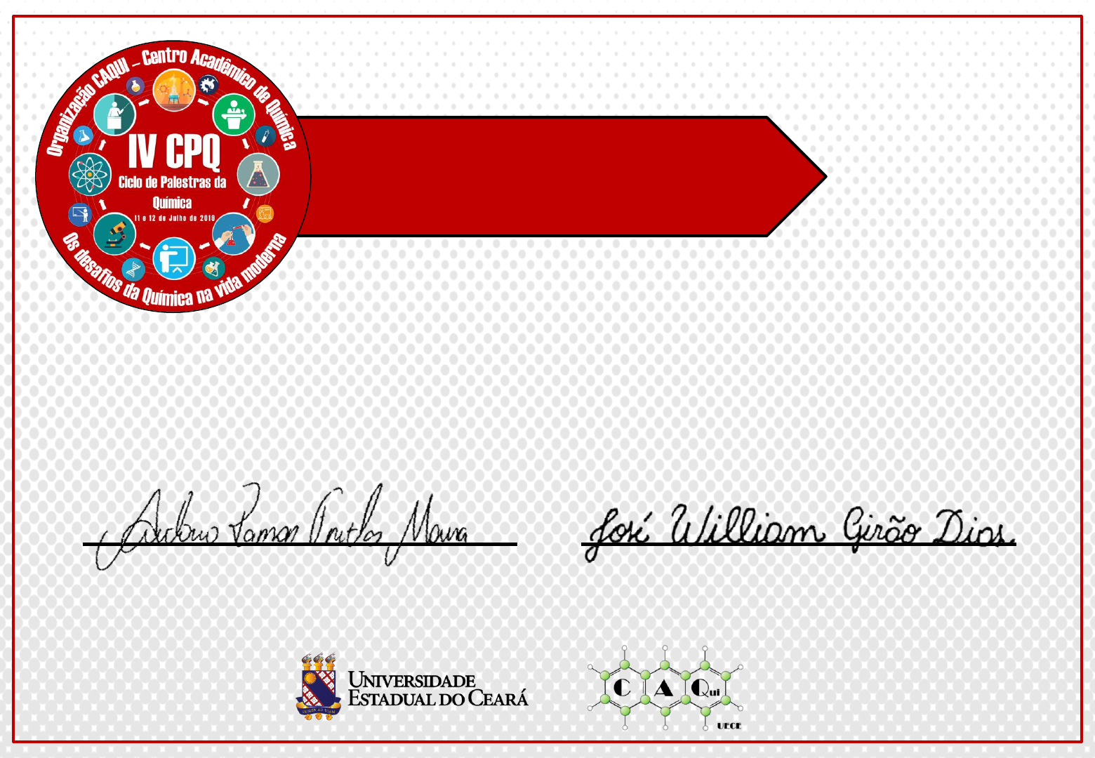 CERTIFICADO DO Certificamos que MICHELE DO NASCIMENTO DA SILVA participou do evento IV CICLO DE PALESTRAS DA QUÍMICA-CPQ no dia 11 e 12 de JULHO de 2019 na instituição Universidade Estadual do Ceará- Itaperi, realizada pela gestão CAQUI UECE - Centro Acadêmico de Química. Presidente do CAQUI Vice-Presidente do CAQUI Antonio Ramon Freitas Moura José William Girão Dias