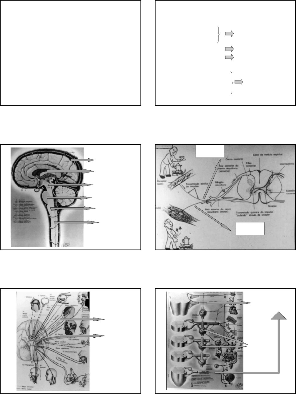 11/08/2016 FISIOTERAPIA EM NEUROLOGIA I MÓDULO I . AVALIAÇÃO NEUROLÓGICA DO PACIENTE ADULTO - ANAMNESE - EXAME FÍSICO - EXAME NEUROLÓGICO - EXAME DISFUNCIONAL TIPOS DE LESÃO SÍNDROME CENTRAIS PERIFÉRICAS CEREBRAIS TRONCO CEREBRAL MEDULARES RAÍZES NERVOS JUNÇÃO NEUROMUSCULAR NÚCLEOS DA BASE CEREBELARES PIRAMIDAIS EXTRAPIRAMIDAIS CEREBELARES PERIFÉRICAS CÓRTEX / TELENCÉFALO DIENCÉFALO PEDÚNCULOS CEREBRAIS / MESENCÉFALO PONTE BULBO / MEDULA OBLONGA MEDULA Componente sensitivo Componente motor Componente sensitivo Componente motor Componente parassimpático Componente simpático 11/08/2016 AVALIAÇÃO NEUROLÓGICA ANAMNESE EXAME FÍSICO EXAME NEUROLÓGICO DIAGNÓSTICO SINDRÔMICO EXAMES SUBSIDIÁRIOS DADOS SEMIOLÓGICOS LIMITAÇÕES FUNCIONAIS ETIOLOGIA DIAGNÓSTICO TOPOGRÁFICO DIAGNÓSTICO DISFUNCIONAL DIAGNÓSTICO ETIOLÓGICO AVALIAÇÃO NEUROLÓGICA . IDENTIFICAÇÃO . nome . idade . sexo . cor . profissão . estado civil . local e condições de moradia AVALIAÇÃO NEUROLÓGICA . QUEIXA PRINCIPAL AVALIAÇÃO NEUROLÓGICA . HISTÓRIA DA MOLÉSTIA . PREGRESSA . ATUAL . ANTECEDENTES PESSOAIS . ANTECEDENTES FAMILIARES . SINAIS E SINTOMAS ASSOCIADOS . SINAIS E SINTOMAS ASSOCIADOS . CUIDADOS IMEDIATOS . TRATAMENTO ESPECIALIZADO . SITUAÇÃO ATUAL EVOLUÇÃO AVALIAÇÃO NEUROLÓGICA . DADOS CLÍNICOS . DIAGNÓSTICO CLÍNICO . PATOLOGIAS CONCOMITANTES . EXAMES SUBSIDIÁRIOS . PROCEDIMENTOS CIRÚRGICOS 11/08/2016 . EXAMES SUBSIDIÁRIOS (CT) . EXAMES SUBSIDIÁRIOS (RNM) . EXAMES SUBSIDIÁRIOS (CAG) . EXAMES SUBSIDIÁRIOS (MIELO) . EXAMES SUBSIDIÁRIOS (ENMG ) ELETROMIOGRAFIA (EMG) EMG – INSTRUMENTAÇÃO músculo MSC módulo condicionador de sinal (amplificação) CONVERSOR A/D Resultado -padrão de ativação - amplitude - freqüência 11/08/2016 . PROCEDIMENTOS CIRÚRGICOS . PROCEDIMENTOS CIRÚRGICOS . PROCEDIMENTOS CIRÚRGICOS AVALIAÇÃO NEUROLÓGICA . APRESENTAÇÃO DO PACIENTE . U.T.I. . ENFERMARIA . AMBULATÓRIO . COM AJUDA . SEM AJUDA CRÍTICO INCONSCIENTE FEBRIL CIANÓTICO DESIDRATADO RESPIRAÇÃO ARTIFICIAL ESTADO GERAL . APRESENTAÇÃO DO PACIENTE . APRESENTAÇÃO DO PACIENTE 11/08/2016 . APRESENTAÇÃO DO PACIENTE NÍVEL DE CONSCIÊNCIA NÍVEL DE CONSCIÊNCIA NÍVEL DE CONSCIÊNCIA MINI-EXAME DE ESTADO MENTAL (Folstein, Folstein e McHugh, 1975) 1.Qual é o ano, estação, data, mês, dia? ---> 05 pontos 2.Onde estamos? País, Estado, cidade, hospital, andar) --> 05 pontos 3.Dê o nome de três objetos, levando um segundo para dizer cada um. Peça que repita todos em seguida. Repetir até que tenha aprendido todos. ---> 01 ponto cada resposta correta . Orientação . Registro MINI-EXAME DE ESTADO MENTAL . Lembrança 5. Pergunte pelos nomes dos objetos da questão três. --> um ponto para cada resposta correta 4. Série de setes , parar após cinco respostas --> 01 ponto cada resposta correta Alternativa: soletre MUNDO de trás para frente . Atenção e Cálculo 11/08/2016 MINI-EXAME DE ESTADO MENTAL FUNÇÕES NEUROVEGETATIVAS . Funções cardíaca e respiratória - P.A. / F.C. / f.r./ t - ausculta - expansibilidade / elasticidade - muscular específico - tempo inspiratório / tempo expiratório - bulhas cardíacas - dados gasométricos EXAME NEUROFUNCIONAL FUNÇÕES NEUROVEGETATIVAS � Freqüência respiratória EXAME NEUROFUNCIONAL . Funções gênito - urinária / reto-anais - esfíncteres : continência / incontinência FUNÇÕES NEUROVEGETATIVAS - ausência de ereção e/ou ejaculação - ovulação - ritmo excretor - tipo de bexiga - patologias associadas . Funções gênito - urinária / reto-anais FUNÇÕES NEUROVEGETATIVAS � inervação do detrusor . Funções gênito - urinária / reto-anais FUNÇÕES NEUROVEGETATIVAS � inervação do esfíncter 11/08/2016 . Funções gênito - urinária / reto-anais FUNÇÕES NEUROVEGETATIVAS AMPLITUDES DE MOVIMENTO . MOVIMENTAÇÃO PASSIVA * Limitações ---> motivos aparentes . GONIOMETRIA (?) AMPLITUDES DE MOVIMENTO FUNÇÕES TRÓFICAS . Alterações da pele e anexos - descamação - ulcerações - queda de pelos - unhas quebradiças ---> OBSERVAÇÃO . Alterações da pele e anexos . Alterações da pele e anexos 11/08/2016 . Alterações da pele e anexos . Alterações da pele e anexos 21% 19% 19% . Alterações da pele e anexos FUNÇÕES TRÓFICAS . Alterações musculares - hipotrofias - distrofias (pseudohipertrofias) ---> OBSERVAÇÃO COMPARATIVA ---> CIRTOMETRIA . localização . grau FUNÇÕES TRÓFICAS . A lt e r a ç õ e s m u s c ul a r e s 11/08/2016 . Alterações musculares . Alterações musculares . Alterações musculares - distrofias (pseudohipertrofias) aparecimento localização intensidade CENTRAL PERIFÉRICA tardio precoce generalizada localizada (-) intensa (+) intensa . Alterações musculares lesão SENSIBILIDADE . EXTEROCEPTIVA (SUPERFICIAL) . PROPRIOCEPTIVA (PROFUNDA) SENSIBILIDADE . EXTEROCEPTIVA (SUPERFICIAL) . térmica . dolorosa . tátil (grosseiro) 11/08/2016 . PROPRIOCEPTIVA (PROFUNDA) SENSIBILIDADE . cinético-postural (artroestesia) . vibratória . pressão profunda . localização e discriminação táteis . dolorosa à compressão profunda SENSIBILIDADE topognosia estereognosia Identificar um objeto conhecido colocado em sua mão (moeda, chave ) DISTÚRBIOS DA SENSIBILIDADE . SUBJETIVOS . OBJETIVOS - parestesias (espontâneas) --> dor --> formigamento --> adormecimento --> queimação --> picadas - hiperestesias (aumento da intensidade e/ou duração) . SUBJETIVOS DISTÚRBIOS DA SENSIBILIDADE . OBJETIVOS DISTÚRBIOS DA SENSIBILIDADE - anestesia (toque leve) - analgesia (dor) - hipoestesia (toque leve) - hipoalgesia (dor) LOCALIZAÇÃO PADRÕES DE PERDA SENSITIVA EM DOENÇA NEUROLÓGICA raiznervo 11/08/2016 PADRÕES DE PERDA SENSITIVA EM DOENÇA NEUROLÓGICA neuropatias periféricas PADRÕES DE PERDA SENSITIVA EM DOENÇA NEUROLÓGICA hemissecção medularmedula espinhal PADRÕES DE PERDA SENSITIVA EM DOENÇA NEUROLÓGICA tronco cerebralsiringomielia PADRÕES DE PERDA SENSITIVA E