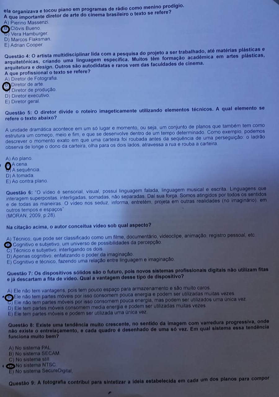 Questao 6: video sensorial visual, possul linguagem falada, linguagem musica e escrita Linguagens que interagem superpostas interligadas, somadas, nao separadas, Dal sua forca Somos atingidos por todos sentidos de todas maneiras video nos seduz informa, entretem projeta em outras realidades (no imaginario) om outros tempos espacos (MORAN 2009 p.28) Na citacao acima, autor concoitua video sob qual aspocto? A) Tecnico, que pode sor classificado como um filme, documentario, videoclipe, animacao, registro pessoal, etc B) Cognitivo subjetivo um universo de possibilidades da percepcno C) Tecnico subjetivo, interligando dois. D) Apenas cognitivo onfatizando poder da imaginacao E) Cognitivo tecnico fazendo uma relacao ontre linguagem imaginacao
