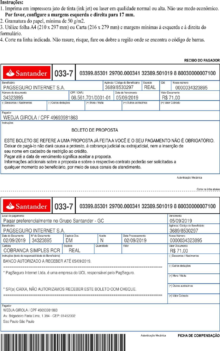 02/09/2019 Boleto - PagSeguro UOL https://pagseguro.uol.com.br/checkout/nc/payment/booklet/print.jhtml?c=0d56a6d7c18eba86f0bfc6015b0a3cad8622656df8a59e565529cb1a212… 1/1