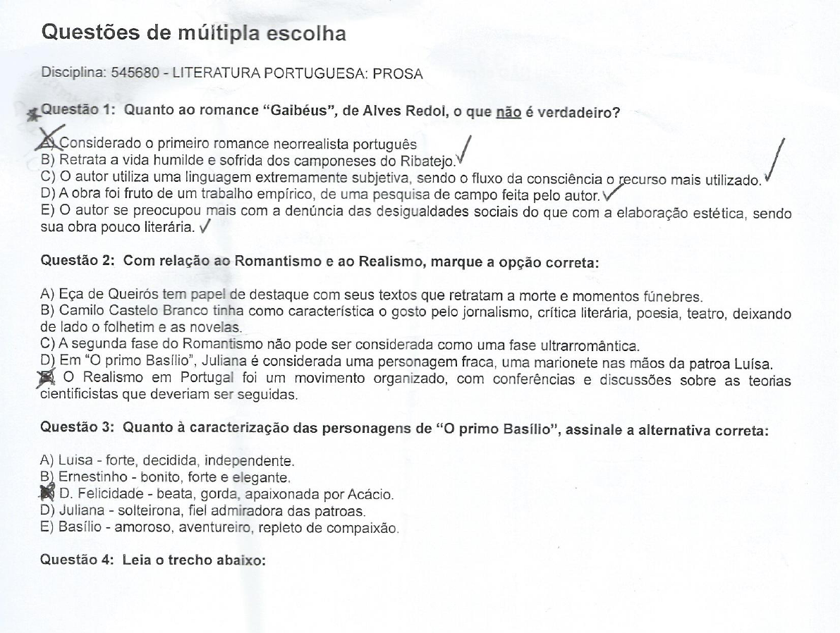 LITERATURA PORTUGUESA PROSA PROVA CORRIGIDA