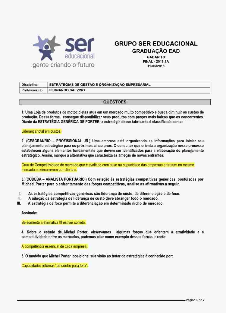 afirmativas: Em relação às estratégias genéricas de Porter, identifique como verdadeiras (V) ou falsas (F) as seguintes () Uma organização engajada...
