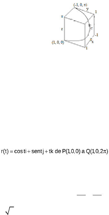 1. Calcule a integral de linha C (x 2y)ds onde C é uma semicircunferência centrada na origem de raio igual a 3 e orientada no sentido positivo. 2. Calcular a integral 2 2 C (x y z)ds onde C é a hélice circular dada por: r(t) = cost. i + sent j + tk de P(1, 0, 0) a Q (1, 0, 2π). 3. Calcule C (2x y z)ds onde C é o segmento de reta que liga A(1, 2, 3) a B(2, 0, 1). 4. Um objeto percorre uma elipse 4x2 +25y2 = 100 no sentido anti-horário e se encontra submetido à forca F (x, y) = (−3y, 3x). Ache o trabalho realizado. 5. Calcule C Fd r para F (x, y) = (x2, x + y) onde C é a fronteira do triângulo de vértices (0, 0), (1, 0) e (1, 1), orientada no sentido anti-horário. 6. Encontre o trabalho realizado pelo campo conservativo F = yxi + xzj + xyk = f, onde f(x , y, z) = xyz, ao longo de qualquer curva lisa C ligando o ponto A(1-, 3, 9) ao ponto B(1, 6, -4). 7. Usando a parametrização dada, calcule a integral de linha 2 C (1 xy )ds a) C: r(t) = ti + 2tj (0 ≤ t ≤ 1) b) C: r(t) = (1-t)i + (2-2t)j, ( 0 ≤ t ≤ 1) 8. Calcule a integral de linha 3 C (xy z )ds de (1, 0, 0) a (-1, 0, π) ao longo da hélice C que é representada pelas equações paramétricas x = cost y = sent, z = t 0 ≤ t ≤ π (figura abaixo) 9. Calcule a área da superfície que se estende verticalmente desde o círculo x2 + y2 = 1 no plano xy até o cilindro parabólico z = 1 – x2. 10. Calcule 2 2 C (3x y )dx 2xydy ao longo do arco circular C dado por x = cost, y = sent (0 ≤ t ≤ π/2) 11. Calcule 2 2 C (3x y )dx 2xydy ao longo do arco circular C dado por x = cost, y = sent (0 ≤ t ≤ π/2) 12. 3x 2 5 C (e y )dx (x y )dy onde C é formada por y = x e y = 0, 0 ≤ x ≤ 1, que vai do ponto (1, 1) ao ponto (1, 0) 13. Calcule a integral de linha 4 C xy ds , onde C é a metade do círculo x2 + y2 = 16 14.Calcular a integral 2 2 C (x y z)ds onde C é a hélice circular dada por : 15. Calcule C (2x y z)ds , onde C é o segmento de reta que liga A(1, 2, 3) a B(2, 0, 1). 16. Calcule C xzds onde C é a interseção da esfera x² + y² + z² = 4 com o plano x = y. 17. Calcule C xyds , onde C é a elipse 2 2 2 2 x y 1 a b . 18. C (3y z)ds , onde C é o arco da parábola z = y² e x = 1 de A(1,0,0) a B(1,2,4). 19. C | x | ds onde C é a curva dada por y = x³ de (-1,-1) a (1, 1). 20.Se F(x, y, z) = y2i + (2xy + e3z)j + 3ye3z k. Encontre uma função f tal que f = F 21. Determine o trabalho realizado pelo campo de força F ao mover um objeto de P para Q dado que: a) F(x , y) = 3/22 3y i x y j ; P(1 ,1) a Q(2, 4) 22. Determine se F é ou não um campo vetorial conservador (*). Se for, determine um função F = f a) F(x , y) = (2x – 3y)i + (-3x + 4y – 8)j b) F(x , y) = ex seny I + ex seny j c) F(x , y) = (3x2 – 2y2)i + (4xy + 3)j (*) Se um objeto se move de um ponto A para outro ponto B sob a influência de um campo de forças conservativo, então a soma de sua energia potencial e sua energia cinética permanece constante. Essa é a lei da Conservação de Energia e é a razão pela qual o campo vetorial é denominado conservativo. 23. Pelo teorema de Green: C R g f f (x, y)dx g(x, y)dy dA x y , calcule usando este teorema a integral: a) 4 c x dx xydy , onde C é a curva triangular constituída pelos segmentos de reta de (0 , 0) a (1 , 0), de (1 , 0) a (0 , 1) e de (0 , 1) a (0 , 0). b) 2 3 c y dx xy dy , onde C é o limite da região semianular D contida no semiplano superior entre os círculos x2 + y2 = 1 e x2 + y2 = 4 c) 2 : (0,0);(1,0);(1,1);(0,1) y y C e dx xe dy C quadrado com vertices 24. Uma partícula inicialmente no ponto (-2 , 0) se move ao longo do eixo x para (2 , 0), e então ao longo da semicircunferência 24y x até o ponto inicial. Utilize o teorema de Green para determinar o trabalho 24y x realizado nessa partícula pelo campo de força F(x , y) = <x , x3 + 3xy2 >. 25. Calcule C 3xy ds, onde C é a curva dada pelo gráfico abaixo. 26. Calcule 1 2y y C x e dx ( e ln x x )dy onde C ´e a fronteira da região limitada por x = y4 + 1 e x = 2, orientada no sentido anti-horário. 27. ache divergente e o rotacional , de: A) kyjxyzixz)z,y,x(F 2 . B) ( , , ) ( ) ( ) F x y z i x yz j xy z k 28.Use o teorema de Green para calcular 2 C x ydx xdy ao longo do caminho triangular mostrado na figura abaixo: Outra aplicação da direção inversa do teorema de Green está no cálculo de áreas. Como a área de uma região D é D 1dA , desejamos escolher P e Q tais que Q P 1 x y . Existem várias possibilidades: P(x, y) = 0 P(x, y) = -y P(x, y) = -1/2 y Q(x, y) = x Q(x, y) = 0 Q(x, y) = 1/2 x 29. Calcule senx 4 C (3y e )dx (7x y 1)dy , onde C é o círculo x2 + y2 = 9. 30.Determine a área delimitada pela elipse 2 2 2 2 x y 1 a b Obs.: Equações paramétricas da elipse: x = acost y = bsent 0 ≤ t ≤ 2π Assim, tomando P(x, y) = -1/2 y e Q(x, y) = 1/2 x ,o teorema de Green dá a seguinte fórmula para a área de D: C C C 1 A xdy ydx xdy ydx 2 31.Calcule a integral de linha definida por 2 2 C (2xy x )dx (x y )dy , onde C é a curva fechada da região definida por y = x2 e y2 = x. Calcule usando o teorema de Green. R. 1/30 32. Use o teorema de Green para encontrar o trabalho total realizado ao mover um objeto no sentido anti-horário, uma vez em torno da circunferência x2 + y2 = 9, se o movimento for causado pelo campo de forças F(x , y) = (sen x – y)i + (ey - x2)j. Suponha que o arco seja medido em metros e a força em newtons. 33.Uma partícula desloca-se em um campo de forças dado por F (x, y, z) = -yi + xj + zk. Calcule o trabalho realizado por F no deslocamento da partícula de p(a) até p(b), sendo dados: a) p(t) = (cos t, sen t, t), a = 0 e b = 2π b) p(t) = (2t + 1, t -1, t), a = 1 e b = 2 Ap(t) =(cos t, 0, sen t), a = 0 e b = 2π