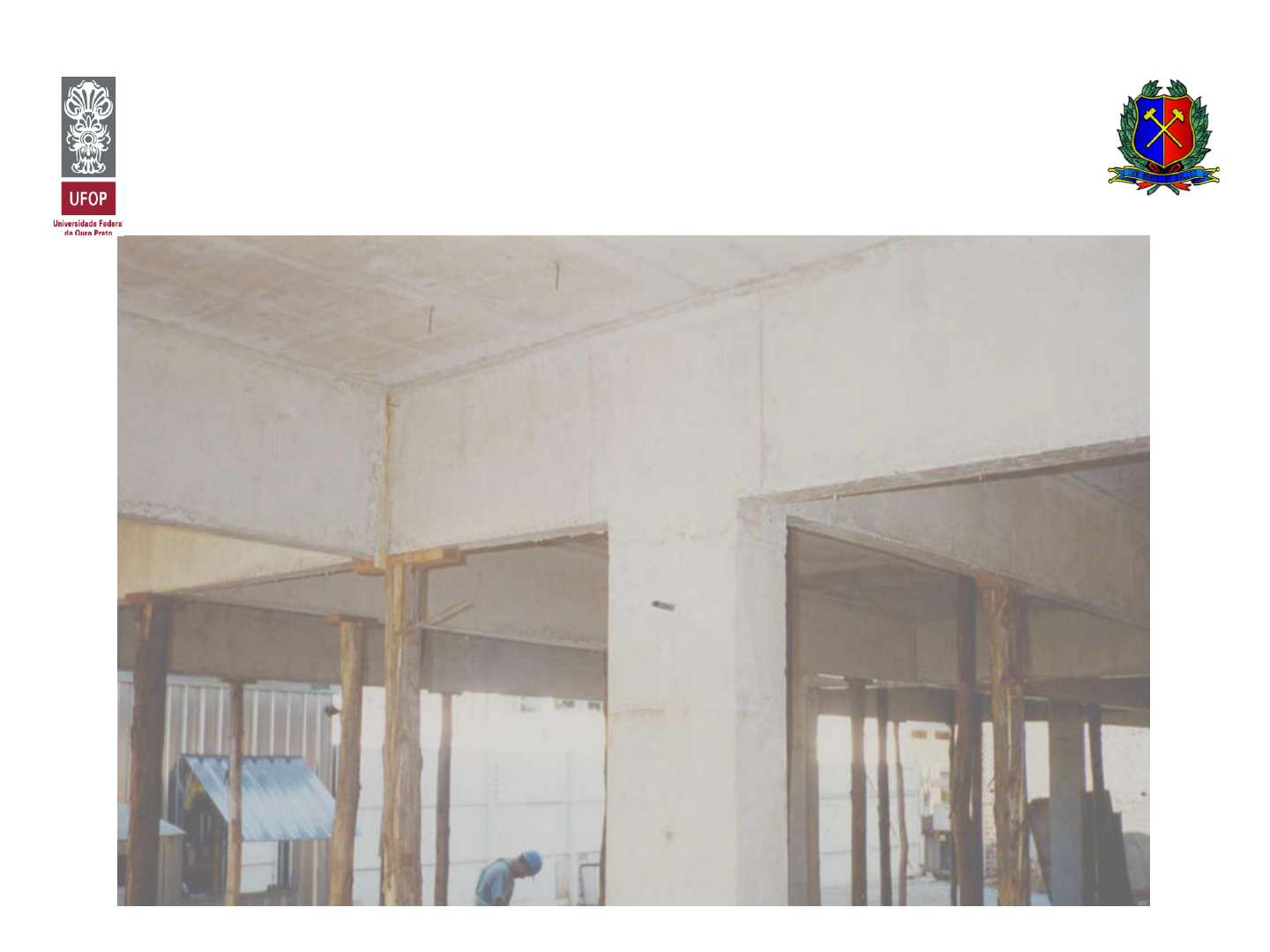 CAPÍTULO 3: FLEXÃO SIMPLES Ouro Preto, 2015/2 Universidade Federal de Ouro Preto - Escola de Minas Departamento de Engenharia Civil CIV620-Construções de Concreto Armado Curso: Arquitetura e Urbanismo Rovadávia Aline Jesus Ribas 1. Hipóteses básicas 2. Comportamento à flexão 3. Dimensionamento de seções retangulares e vigas de seção retangular 4. Exercícios Plano de aula Vigas Lajes maciças Pilares Fundações Concreto armado: elementos estruturais básicos Concreto armado: elementos estruturais básicos Sequência de cálculo: lajes, vigas, pilares (superestrutura) e fundações (infra- estrutura) – Sequência inversa da construção. Uso de computadores e programas avançados de cálculo: estudo global da estrutura. Esquema estrutural Discretização da estrutura (Modelo estrutural) Hipóteses básicas Designam-se por solicitações normais os esforços solicitantes que produzem tensões normais (perpendiculares) nas seções transversais das peças estruturais (momento fletor e força normal). Tipos de solicitação: Solicitações normais: momento fletor e força normal Solicitações tangenciais: força cortante e momento torsor. Tipos de flexão: PURA: momento fletor. Caso particular de flexão, em que não há esforço cortante atuante (V=0); nas regiões de vigas em que isso ocorre, o momento fletor é constante. SIMPLES: momento fletor + força cortante. Ocorre quando não há esforço normal. COMPOSTA: momento fletor + força normal. Ocorre em pilares. Hipóteses básicas Flexão pura na região central da viga simplesmente apoiada Vigas: São elementos de barras (L > 3h), normalmente retas e horizontais, que recebem cargas de lajes, outras vigas, paredes e pilares, dentre outros, e têm como função vencer vãos e transmitir ações para seus apoios (pilares). Hipóteses básicas ESTÁDIOS DE DEFORMAÇÃO Experimentalmente, submetendo uma viga de concreto armado a um carregamento crescente, é possível medir as deformações que ocorrem em sua zona central, ao longo de sua altura. A seção transversal central da viga de concreto armado, retangular, submetida a um momento fletor (M) crescente, passa por três níveis de deformação, denominados ESTÁDIOS, os quais determinam o comportamento da viga até sua ruína. Distinguem-se basicamente três fases distintas: estádio I, estádio II-a e estádio II-b. Hipóteses básicas Estádio I Sob a ação de um momento fletor MI de pequena intensidade, a tensão de tração no concreto (ct) não ultrapassa sua resistência à tração (fct): - Diagrama de tensão normal ao longo da seção é linear (Lei de Hooke) - As tensões nas fibras mais comprimidas são proporcionais às deformações - Não há fissuras visíveis Rcc = Resultante de compressão no concreto Rct = Resultante de tração no concreto Hipóteses básicas Estádio II-a Aumentando o valor do momento fletor para MII: - O concreto não mais resiste à tração (considera-se que apenas o aço passa a resistir aos esforços de tração) e a seção começa a fissurar na região de tração - A contribuição do concreto tracionado é desprezada - No estádio II-a, é considerado que a parte comprimida ainda mantém um diagrama de tensões aproximadamente linear de tensões, permanecendo válida a lei de Hooke Rs = Resultante de tração na armadura Hipóteses básicas Estádio II-b Aumentando o valor do momento fletor até um valor próximo da ruína, MIII: - A zona comprimida plastifica-se e o concreto dessa região está na iminência da ruptura - Admite-se que o diagrama de tensões seja da forma parabólico-retangular, também conhecido como diagrama parábola-retângulo - Nesse estádio, o dimensionamento é feito considerando-se o Estado Limite Último (cálculo na ruptura), quando o principal objetivo é projetar estruturas que resistam aos esforços de forma econômica, sem chegar ao colapso Hipóteses básicas Diagrama retangular equivalente do Estádio II-b A NBR 6118 permite, para efeito de cálculo, que se trabalhe com um diagrama retangular simplificado equivalente ao diagrama parábola-retângulo. A resultante de compressão e o braço em relação à linha neutra devem ser aproximadamente os mesmos para os dois diagramas. Rst Rcc Hipóteses básicas Distribuição de tensões de compressão segundo o diagrama parábola-retângulo e retangular simplificado O diagrama retangular simplificado conduz a equações mais simples e com resultados muito próximos aos obtidos com o diagrama parábola-retângulo. Hipóteses básicas Para o cálculo, são feitas as considerações a) que há uma perfeita aderência entre o aço e o concreto (solidariedade entre os materiais) b) que seções planas permanecem planas durante sua deformação c) que a deformação limite (encurtamento máximo) permitida para o concreto seja de 3,5‰ para seção parcialmente comprimida, e entre 3,5 ‰ a 2,0 ‰ para seção totalmente comprimida, sendo o limite de 2,0 ‰ estabelecido para seções sob compressão centrada d) que a deformação limite (alongamento máximo) permitida para as armaduras de aço sob tração seja de 10 ‰ e) que para a distribuição de tensão no concreto ao longo da altura da seção transversal do elemento sejam considerados os estádios já definidos Hipóteses básicas Domínios de deformação na seção transversal Os diferentes tipos de solicitação definem diferentes formas de ruína do elemento de concreto que são verificadas pelas deformações limites. Essas formas de ruínas podem ser verificadas quando a deformação na seção de concreto intercepta um dos pontos A, B ou C dos domínios de deformação. 1% = 10‰. 0,2% = 2‰. 0,35% = 3,5‰. Hipóteses básicas Pontos A, B, C Para a reta a e domínios 1 e 2: o diagrama gira em torno do ponto A Para os domínios 3, 4 e 4a: o diagrama gira em torno do ponto B com cu = 0,35% (3,5‰) Para o domínio 5 e reta b: o diagrama gira em torno do ponto C, correspondente a defo