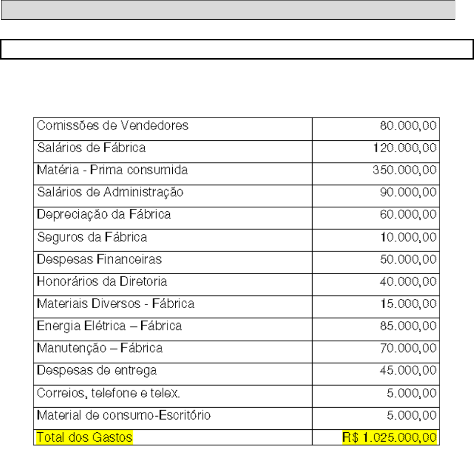 CUSTOS E PREÇOS – PROF. SÉRGIO ZAGO 1 TERMINOLOGIA E CONCEITOS 1. Suponhamos que estes sejam os gastos de determinado período da Empresa X: A primeira tarefa é a separação dos Custos de Produção e as Despesas por categoria (Administrativa, Financeira e Comercial) CUSTOS E PREÇOS – PROF. SÉRGIO ZAGO 2 TIPOS DE CUSTEIO 1. A Companhia Diadema S.A. fabrica biscoitos e doces, vendidos nas regiões Norte e Nordeste. Alguns dados extraídos das demonstrações financeiras da empresa são: • Unidades produzidas 4.000 • Unidades vendidas 2.000 • Preço unitário de venda $ 10,00/u Custos e despesas: • Matéria-prima consumida $ 2,00/u • Mão de obra direta $ 3,00/u • Custo indireto variável $ 1,00/u • Custo indireto fixo $ 12.000/ano • Despesas fixas $ 02.000/ano Os resultados apurados pelo custeio variável e pelo custeio por absorção, em reais são: Custeio variável Custeio por absorção a) Prejuízo de $ 6.000,00 Ausência de lucro e prejuízo b) Prejuízo de $ 6.000,00 Prejuízo de $ 8.000,00 c) Prejuízo de $ 8.000,00 Lucro de $ 2.000,00 d) Lucro de $ 1.000,00 Lucro de $ 3.000,00 e) Lucro de $ 6.000,00 Lucro de $ 4.000,00 2. Uma empresa que trabalha com custos-padrão previu que gastaria 5kg de matéria- prima, a um custo de $ 15.000,00/kg, para produzir uma unidade de determinado produto. Ao final do período, constatou que, embora tivesse economizado 20% no preço do material, havia gasto 20% a mais que o previsto. A variação entre o custo real e o custo-padrão foi: a) Nula; b) Favorável em $ 3.000,00; c) Favorável em $ 15.000,00; d) Desfavorável em $ 3.000,00; e) Desfavorável em $ 15.000,00. CUSTOS E PREÇOS – PROF. SÉRGIO ZAGO 3 3. (FUNIVERSA – 2010). Com base nas informações a seguir, assinale a alternativa que apresenta o custo da atividade por unidade de produto, para os itens de camisetas, calças e vestidos: Dados: I – Atividade – comprar materiais: $ 40.000,00; II – Direcionadores de custos – nº de pedidos conforme a seguir: camisetas 40 pedidos, calças 60 pedidos e vestidos 20 pedidos; III – Quantidades produzidas: camisetas 2.000 un, calças 6.000 un e vestidos 2.800 un. a) $ 6,66; $ 3,33 e $ 2,38; b) $ 5,55; $ 2,44 e $ 2,38; c) $ 6,66; $ 2,44 e $ 3,44; d) $ 2,44; $ 3,33 e $ 6,66; e) $ 6,66; $ 3,33 e $ 5,55. CUSTOS E PREÇOS – PROF. SÉRGIO ZAGO 4 PREÇOS E CUSTOS 1. Uma empresa está considerando a introdução de um novo produto, com os seguintes dados de custos e preços: Preço de venda $ 200 por unidade Custos e despesas variáveis $ 120 por unidade Custos e despesas fixas $ 300.000 por ano Pede-se: a) Qual a quantidade a ser vendida no ponto de equilíbrio? Demonstre. b) Qual a quantidade a ser vendida para obter um lucro operacional de $ 100.000 por ano? Demonstre. 2. Uma empresa pretende vender e produzir no próximo ano 1.200.000 unidades de seu produto. Os valores orçados são: Total das receitas esperadas $ 7.200.000 Total dos custos variáveis $ 2.880.000 Total das despesas variáveis $ 1.800.000 Total dos custos fixos $ 1.000.000 Total das despesas fixas $ 0.500.000 Pede-se: a) Calcular o preço médio unitário do produto; b) Calcular a margem de contribuição do produto; c) Calcular a margem de contribuição percentual; d) Calcular o ponto de equilíbrio em quantidade e em valor. Demonstre. CUSTOS E PREÇOS – PROF. SÉRGIO ZAGO 5 3. A Indústria Cimento S.A. tem capacidade instalada para produzir 500.000 kg de seu produto. Neste nível de produção, seu custo total monta a $ 2.000.000,00 por mês, sendo o custo fixo total, no mesmo período, de $ 500.000,00. Sabendo-se que o preço unitário de venda é de $ 8,00 por kg, e que a empresa adota, para fins gerenciais, o custeio direto, seu ponto de equilíbrio operacional, em unidades, é de quanto? Demonstre. a) 500.000 unidades; b) 250.000 unidades; c) 200.000 unidades; d) 100.000 unidades; e) 062.500 unidades. 4. A Companhia Contábil S.A. desenvolveu recentemente um novo produto e está debatendo: 1o estabelece sua própria rede de distribuição ou 2o contrata agentes de vendas independentes no mercado para o novo produto. A informação pertinente para as duas opções inclui o seguinte: Custo do item Estabelecendo a Contratando Própria Rede Vendedores Comissão de vendas 5% 20% Despesas fixas de vendas anuais $ 300.000 $ 0 O preço de venda do novo produto é de $ 20 por unidade. O custo variável de fabricação unitário é de $ 9 e o custo fixo de fabricação é de $ 900.000. Pede-se: a) Determine o ponto de equilíbrio estimado para as operações de seu novo produto em cada uma das duas operações para o marketing do produto; b) Quais das duas opções a empresa deve adotar para o mercado do novo produto? Por quê? CUSTOS E PREÇOS – PROF. SÉRGIO ZAGO 6 FORMAÇÃO DO PREÇO DE VENDAS COM BASE NO CUSTO DO PRODUTO 1. Calcular o preço de venda levando em consideração o regime de lucro presumido e de lucro real, com as alíquotas que seguem: a) Custo do Produto/Mercadoria: $ 300,00 Margem de Contribuição %: 30 % ICMS: 18 % IPI: 10 % PIS: 0,65/1,65 % COFINS: 3/7,6 % IRPJ: 1,2 % CSLL: 1,08 b) Custo do Produto/Mercadoria: $ 750,00 Margem de Contribuição %: 25 % ICMS: 18 % IPI: 10 % PIS: 0,65/1,65 % COFINS: 3/7,6 % IRPJ: 1,2 % CSLL: 1,08 c) Custo do Produto/Mercadoria: $ 1.250,00 Margem de Contribuição %: 55 % ICMS: 10 % IPI: 10 % PIS: 0,65/1,65 % COFINS: 3/7,6 % IRPJ: 1,2 % CSLL: 1,08 CUSTOS E PREÇOS – PROF. SÉRGIO ZAGO 7 d) Custo do Produto/Mercadoria: $ 20,00 Margem de Contribuição %: 35 % ICMS: 12 % IPI: 10 % PIS: 0,65/1,65 % COFINS: 3/7,6 % IRPJ: 1,2 % CSLL: 1,08 CUSTOS E PREÇOS – PROF. SÉRGIO ZAGO 8 Nome: ____________________________________________________RA: ________________ Curso: _____________________ Turma: _______________ ATIVIDADE PRÁTICA 1. A empresa UNIP, vendeu 25.000 unidades de um produto, e obteve os seguintes valores pertinentes: Valor $ Vendas 625.000,00 Custos Variáveis 375.000,00 Custos Fixos 150.