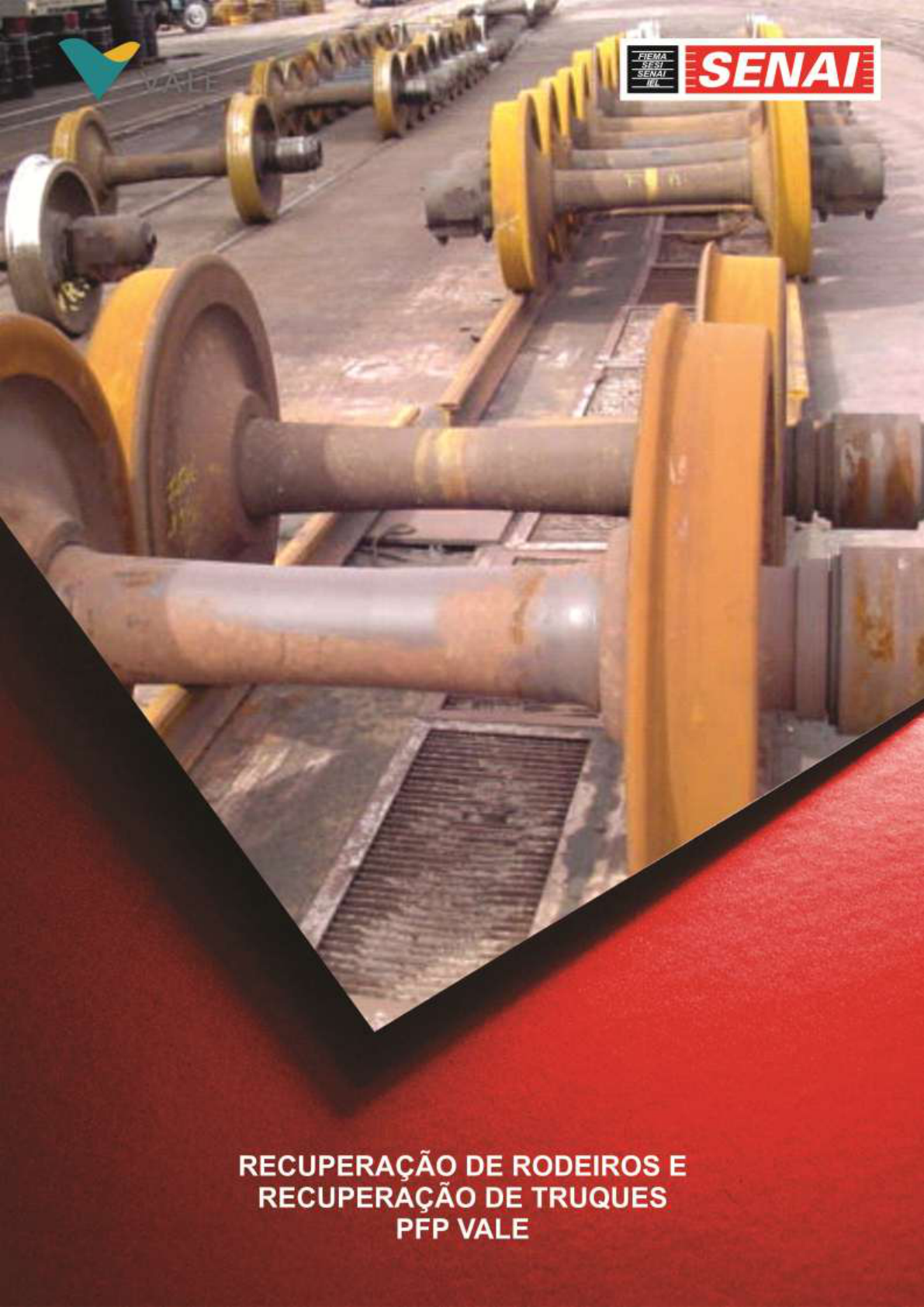 RECUPERAÇÃO DE RODEIROS E RECUPERAÇÃO DE TRUQUES- Manutenção de Vagões 1 RECUPERAÇÃO DE RODEIROS E RECUPERAÇÃO DE TRUQUES- Manutenção de Vagões 2 INFRA-ESTRUTURA: PRINCIPAIS COMPONENTES Neste capítulo você conhecerá os elementos que compõem a infra-estrutura dos vagões. Aprenderá também como montar e desmontar seus principais componentes, além dos métodos usados na inspeção. Principais componentes A infra-estrutura compreende a parte inferior do vagão. É composta por: Truques; Timoneria do truque; tirantes do truque; barra de compressão; alavanca de força; triângulo de freio; setor de graduação; molas; Rodeiros; rodas; rolamentos; eixo; Sapatas. TRUQUE O truque é um componente estrutural do vagão e possui as seguintes finalidades: distribuir e transferir o peso do vagão para os trilhos; absorver choques; propiciar estabilidade e equilíbrio ao vagão. RECUPERAÇÃO DE RODEIROS E RECUPERAÇÃO DE TRUQUES- Manutenção de Vagões 3 NOTA: A FCA trabalha com dois modelos de truques – Ride-Control e Barber Stabilized. Componentes dos truques Laterais Confeccionadas em aço fundido classe „B‟ (especificação AAR); São duas laterais por truque, com guias para encaixe do triângulo de freio tipo „UNIT‟; Possuem corrediças para encaixe das travessas centrais, munidas de chapas de desgaste substituíveis; Sobre as chapas de desgaste trabalham as cunhas dos amortecedores. Travessa central Confeccionada em aço fundido classe „B‟; Cada truque possui uma travessa central; Seu centro de pião tem 305 mm (12”) de diâmetro; Existem cavidades nas extremidades para encaixe das cunhas de fricção dos amortecedores. Cunhas de fricção Confeccionadas em aço fundido e endurecidas nas superfícies de fricção; Trabalham encaixadas nas cavidades da travessa central; Desempenham a função de manter a travessa central em permanente contato com as laterais, amortecendo variações de movimento e carga sobre elas. Molas do truque Confeccionadas em aço mola ABNT 5160; Altura de 9.1/16”; Deflexão de 2.1/2” (tipo D3 AAR); Variam em número e forma de arranjo, de acordo com o tipo de truque e de manga do vagão; Possuem a finalidade de amortecer e tirar a rigidez do vagão. Molas das cunhas de fricção Confeccionadas em aço mola; Possuem uma mola para cada cunha de fricção nos truques Barber-Stabilized; Para cada cunha dos truques Ride-Control existem duas molas; Têm a finalidade de atuar nas cunhas de fricção. Triângulos de freio Triângulos de freio Contra Sapata Ponteira Ponto Fixo RECUPERAÇÃO DE RODEIROS E RECUPERAÇÃO DE TRUQUES- Manutenção de Vagões 4 Confeccionados em aço fundido ou em chapas estampadas tipo „UNIT‟; Cada truque possui dois triângulos de freio; Possuem encaixes nas laterais e atuam nas duas rodas simultaneamente; Possuem um apoio na parte central que fica em posição vertical para a montagem da alavanca de força; Em suas extremidades existem: contra-sapatas rebitadas ou soldadas; chapas de desgaste renováveis, soldadas em furos providos de buchas cementadas com dureza de 60Hcr. Sapatas de freio Possuem parte de atrito com a roda (feita de material não ferroso); São encaixadas na contra-sapata do triângulo de freio e fixadas por chavetas de aço; São quatro sapatas para cada truque; Classificam-se de acordo com o sistema de freio instalado no vagão. Observe: verde : alto atrito; amarelo: baixo atrito. Barra de compressão Barra de aço com forquilhas (palmatórias) nas extremidades; Furação com bucha de aço doce, cementada com dureza de 60 Hcr; Interliga e transfere força para o acionamento dos triângulos de freio; Existe uma barra de compressão para cada truque. Alavancas de força Confeccionas em chapas de aço de 1‟; Possuem três furos com buchas cementadas com dureza de 60 Hcr; São duas alavancas para cada truque; Têm a função de alavanca de força para o acionamento do triângulo de freio. Setor de graduação Confeccionado em chapa de aço de ½”; Formato curvo; Furações providas de buchas de aço doce cementado, com dureza de 60 Hcr; Há um setor de graduação para cada truque; Tem a finalidade de graduar a distância entre a sapata de freio e a roda, devido ao desgaste sofrido pela sapata. Pino da timoneria Confeccionado em aço baixo carbono; Cementado em profundidade de 1 mm e dureza de 60 Hcr; Sapatas sem condições de uso Sapatas boas RECUPERAÇÃO DE RODEIROS E RECUPERAÇÃO DE TRUQUES- Manutenção de Vagões 5 Tem a função de ligar os seguintes elementos: tirantes; alavancas; barra de compressão; setor de graduação. Timoneria do truque É o conjunto formado pelos seguintes elementos: alavancas; setor de graduação; barra de compressão; pinos. Seleção de pares de laterais A formação de pares laterais de truques é feita pelo método de marcação, que faz uso de botões e de intervalos de medida, que servem para classificar a Base Rígida Real (BRR) das laterais. Elementos para a seleção de pares laterais BRN – Base Rígida Nominal: é a distância entre os centros das cadeiras de lateral, acompanhada de valores numéricos que representam tolerâncias permissíveis; BRR – Base Rígida Real: é a distância real entre o centro das cadeiras de lateral, obtida por meio de medição com precisão e instrumento exigidos; Botão: é o ressalto fundido ou soldado na parte externa de uma das extremidades de cada lateral. NOTA: A tolerância de fabricação de qualquer lateral é de mais ou menos 3/16” ou 4,8 mm. A BRR de qualquer lateral deve ficar dentro da faixa de tolerância (Ft) de 3/8” (9,6 mm). Observe a fórmula: Ft = BRR Máx – BRR Min = 3/8” (0,375”) Esta faixa de tolerância de 3/8” é dividida em cinco subfaixas iguais de 0,075” (1,9 mm). A finalidade dessas cinco subfaixas é permitir o enquadramento de cada lateral em um determinado lote. RECUPERAÇÃO DE RODEIROS E RECUPERAÇÃO DE TRUQUES- Manutenção de Vagões 6 O enquadramento de 