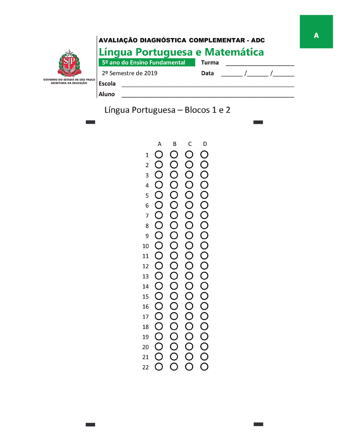 4 4 1 BLOCO 1 Atenção: Você terá 25 minutos para responder a este bloco de Língua Portuguesa. Leia os textos abaixo. Texto 1 Texto 2 5 10 15 No dia 10 de julho se comemora o dia mundial da Pizza, que é um dos pratos mais consumidos em todo mundo. Engana-se quem acredita que a pizza tem origem italiana, ela foi descoberta pelos egípcios há mais de 6 mil anos. Os italianos são responsáveis pela pizza redonda. [...] No Brasil, o dia mundial da pizza é comemorado desde 1935, sendo que a pizza chegou ao país no século 19 no litoral de SP. Atualmente, o Brasil é o segundo maior consumidor, perdendo apenas para os Estados Unidos. A pizza é alimento das festas e celebrações, onde várias pessoas podem comer ao mesmo tempo. A sua importância no mundo pode ser confirmada pelo simples fato de ter um dia comemorativo. Disponível em: <http://migre.me/pFsfu>. Acesso em: 24 fev. 2014. Fragment Disponível em: <http://migre.me/pFshe>. Acesso em: 24 fev. 2014. (P030037EJ_SUP) 01) (P030037EJ) A informação em comum nesses dois textos é A) a chegada da pizza em São Paulo. B) a paixão pela pizza. C) os consumidores de pizza no mundo. D) os sabores de pizza. 2 Leia o texto abaixo. 5 10 15 20 25 O medo do menino Que barulho estranho, vem lá de fora, vem lá de dentro?! Que barulho medonho [...] na cozinha, ou na despensa!... Será fantasma ou alma penada? Será bicho furioso ou barulhinho de nada? E o menino olha e não vê nada. Quem se esconde? Esconde onde? Se vem alguém passo a passo Na rua deserta O medo aumenta. Passos de gente de casa Encolhe o medo. [...] E o menino encolhe, Fica todo enroladinho. E se embrulha nas cobertas, Enfia a cabeça no travesseiro E devagar, devagarinho, Sem segredo, Vem o sono E some o medo. JOSÉ, Elias. Disponível em: <http://www.antoniomiranda.com.br/poesia_infantil/elias_jose.html>. Acesso em: 19 mar. 2014. Fragmento. (P050142F5_SUP) 02) (P050143F5) De acordo com o final desse texto, o menino A) conseguiu dormir. B) estava com frio. C) ficou com medo. D) ouviu passos. 2 3 Leia o texto abaixo. Orquestra Criança Cidadã Meninos do Ipojuca ensaia para primeira apresentação Concerto vai acontecer no dia 23 de dezembro em frente à sede do Projeto Dois meses depois da inauguração do núcleo Orquestra Criança Cidadã Meninos do Ipojuca, as 100 crianças do Projeto estão empenhadas ensaiando para sua primeira apresentação que vai acontecer no dia 23 de dezembro para os moradores do Distrito de Camela e convidados. O evento vai acontecer em frente à sede do projeto, [...] centro de Camela. O projeto da Orquestra em Camela é fruto de uma parceria entre a Associação Beneficente Criança Cidadã (ABCC), ONG gestora da Orquestra, e a Prefeitura do Ipojuca [...]. Os alunos, que têm entre 8 e 16 anos, têm aula de segunda a sexta e ensaio com todos os alunos juntos aos sábado. “A dedicação dos jovens é geral. Não existe falta [...]. O grupo é bas- tante comprometido e eles mostram que estão gostando do que fazem.”, comemorou o músico e coordenador pedagógico do Projeto, Márcio Pereira. Disponível em: <http://migre.me/pFX8B>. Acesso em: 22 nov. 2014. Fragmento. (P030041EJ_SUP) 03) (P030043EJ) A linguagem utilizada nesse texto é A) científica. B) formal. C) informal. D) regional. 04) (P030044EJ) Nesse texto, no último parágrafo, as aspas foram usadas para A) apresentar uma gíria popular. B) indicar um trecho de outro texto. C) marcar a fala de uma pessoa. D) mostrar o título de uma música. Leia o texto abaixo. 5 10 15 As estações Um homem tinha quatro filhos. Ele queria que seus filhos aprendessem a não julgar as coisas de modo apressado, por isso, ele mandou cada um viajar para observar uma pereira que estava plantada em um distante local. O primeiro filho foi lá no Inverno, o segundo na Primavera, o terceiro no Verão e o quarto e mais jovem, no Outono. Quando todos eles retornaram, ele os reuniu e pediu que cada um descrevesse o que tinham visto. O primeiro filho disse que a árvore era feia, torta e retorcida. O segundo filho disse que ela era recoberta de botões verdes e cheia de promessas. O terceiro filho discordou. Disse que ela estava coberta de flores, que tinham um cheiro tão doce e eram tão bonitas, que ele arriscaria dizer que eram a coisa mais graciosa que ele tinha visto. O último filho discordou de todos eles; ele disse que a árvore estava carregada e arqueada, cheia de frutas, vida… O homem, então, explicou a seus filhos que todos eles estavam certos, porque eles haviam visto apenas uma estação da vida da árvore. Ele falou que não se pode julgar uma árvore, ou uma pessoa, por apenas uma estação. [...] Se você desistir quando for Inverno, você perderá a promessa da Primavera, a beleza do Verão, a expectativa do Outono. Disponível em: <https://sabedoriauniversal.wordpress.com/lendas-e-contos/>. Acesso em: 17 jul. 2014. Fragmento. (P051115H6_SUP) 05) (P051115H6) Esse texto começa quando A) o pai explica que todos os filhos estavam certos. B) o pai manda os filhos viajarem para observar uma árvore. C) o primeiro filho diz que a árvore estava retorcida e feia. D) o último filho diz que a árvore estava cheia de frutas. 4 Leia novamente o texto “As estações” para responder às questões abaixo. 06) (P030022EJ) No trecho “O segundo filho disse que ela era recoberta...” (ℓ. 9), a palavra “ela” está no lugar de A) árvore. B) vida. C) estação. D) pessoa. 07) (P030025EJ) O trecho “... viajar para observar uma pereira que estava plantada em um distante local.” (ℓ. 2-3) apresenta ideia de A) causa. B) lugar. C) modo. D) tempo. Leia o texto abaixo. Disponível em: <http://zip.net/byr8QR>. Acesso em: 7 out. 2015. (P050027H6_SUP) 08) (P050027H6) Esse texto é engraçado porque A) as crianças olham as cartas no chão. B) as crianças vão a uma exposição. C) o menino derruba o maior castelo de cartas com um espirro. D) o menino procura pelo maior castelo de cartas do mun