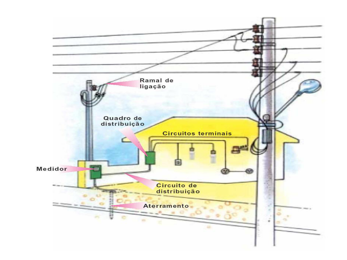 Instalações Laboratório Observações Importantes: a) Desde que contatados negligência ou uso indevido, toda e qualquer avaria ou falta de material implicará negativamente na avaliação por parte do professor. c) Não será permitida a transferência de qualquer material básico de uma bancada para outra. d) O uso do Óculos de Proteção na testa será chamado a atenção. e) Não se usa fone de ouvido no laboratório. Laboratório Disciplina no Laboratório: Para que aluno, durante as aulas práticas, possa vivenciar situações cada vez mais representáveis da vida profissional futura, será cobrada a prática de hábitos e atitudes de um bom profissional, tais como: • Pontualidade; • Assiduidade; • Responsabilidade; • Organização; • Segurança; • Higiene; • Apresentação; • Educação; • Iniciativa e disposição para o trabalho. Para o estudo deste assunto, é preciso observar como se faz a leitura de um desenho de instalação elétrica. • Observe o esquema ao lado e use a legenda, com os respectivos símbolos, para uma leitura correta. Localização de elementos e traçado de percurso da instalação elétrica PG l 39 Localização de elementos e traçado de percurso da instalação elétrica • Alguns conhecimentos são indispensáveis para a execução do trabalho de uma instalação elétrica: o que é uma rede elétrica, quais os materiais necessários para a instalação, o que é uma planta baixa e quais os procedimentos necessários para traçar o percurso da instalação. Diagrama unifilar e multifilar Diagrama unifilar É representado por meio de símbolos gráficos dos componentes da instalação, situados na planta baixa, apresentando a posição física dos elementos. Diagrama multifilar ou funcional É a representação do circuito elétrico por meio de símbolos gráficos, permitindo analisar o seu funcionamento. Interrupção simples com lâmpada de incandescência • Esquema funcional Interrupção simples com lâmpada de incandescência • Esquema unifilar 110V ~ Interrupção simples com lâmpada de incandescência • Esquema multifilar Interrupção simples com lâmpada incandescênte Interruptor de duas seções É um dispositivo de manobra, fabricado em material termoplástico, para suportar intensidade de 10 ampères. Interrupção simples com lâmpada incandescênte Interruptor de três seções e lâmpadas incandescentes • A instalação do interruptor de três seções é análoga à do interruptor de duas seções. .. N F Interrupção simples • Implementação da instalação LABORATÓRIO: EXERCÍCIOS DE LABORATÓRIO: 1) Fazer na prática a instalação de 2 lâmpadas incandescentes em série comandadas por 1 interruptor simples de 1 seção e fazer as medições de corrente de tensão com o auxílio do multímetro. 2) Fazer na prática a instalação de 2 lâmpadas incandescentes em paralelo comandadas por 1 interruptor simples de 1 seção e fazer as medições de corrente de tensão com o auxílio do multímetro. 3) Fazer na prática a instalação de 2 lâmpadas incandescentes comandadas por 1 interruptor de 2 seções e 1 tomada monofásica em tubulação própria. INTERRUPTORES PARALELOS OU TREE-WAY (TRÊS VIAS) São usados para comandar uma ou mais lâmpadas de dois pontos diferentes, isto é, não se consegue fazer essa ligação com apenas um interruptor, é necessário possuir dois interruptores iguais. Esse tipo de interruptor possui três terminais. O terminal central denomina-se: terminal comum, ou seja, o terminal central que irá dar passagem à corrente elétrica de um interruptor a outro. INTERRUPTOR PARALELO • Esquema funcional Ponto comum do comutador Ponto comum do comutador INTERRUPTOR PARALELO • Esquema unifilar INTERRUPTOR PARALELO N F Ponto comum do comutador Ponto comum do comutador INTERRUPTOR PARALELO • Implementação da instalação EXERCÍCIOS DE LABORATÓRIO: 1) Fazer na prática a instalação de 2 lâmpadas incandescentes comandadas por dois pontos diferentes e 1 tomada monofásica. INTERRUPTORES INTERMEDIÁRIOS São usados para comandar uma ou mais lâmpadas por três ou mais pontos diferentes. Os interruptores intermediários não devem ser instalados sozinhos, são necessários dois interruptores paralelos para que a instalação funcione. Como o próprio nome já deduz, o interruptor intermediário é instalado entre os interruptores paralelos. Podem- se usar quantos interruptores intermediários achar necessário, não existe quantidade máxima. O interruptor intermediário possui quatro terminais, onde cada par dá passagem à corrente elétrica para os interruptores paralelos. INTERRUPTOR INTERMEDIARIO INTERRUPTOR INTERMEDIARIO INTERRUPTOR INTERMEDIARIO EXERCÍCIOS DE LABORATÓRIO: 2) Represente em diagrama multifilar e unifilar a instalação elétrica de 2 lâmpadas incandescentes de 40W/220V comandadas por três pontos diferentes. 1) Fazer na prática a instalação de 2 lâmpadas incandescentes comandadas por três pontos diferentes. Reatores p/ Lâmpadas Fluorescentes (convencional) • Apesar de que as lâmpadas fluorescentes possam ser auxiliadas por uma indutância, capacitância ou resistência, a mais prática e mais amplamente utilizada das três é a indutância. Na maioria dos casos os reatores para lâmpadas fluorescentes incluem um componente indutivo com uma bobina ou um autotransformador para limitar a corrente, podemos ainda usar uma série de combinações entre uma bobina indutiva e um condensador. 30 Reatores p/ Lâmpadas Fluorescentes (Partida Rápida) 31 Os reatores duplos de partida rápida partem as lâmpadas em sucessão, e então as operam em série. Após o circuito ser acionado, a primeira operação é o aquecimento dos catodos para auxiliar a partida das lâmpadas, reduzindo os requisitos de tensão de partida. Reatores p/ Lâmpadas Fluorescentes (Eletrônico) 32 • Reatores eletrônicos funcionam de modo diferente. Eles têm internamente um