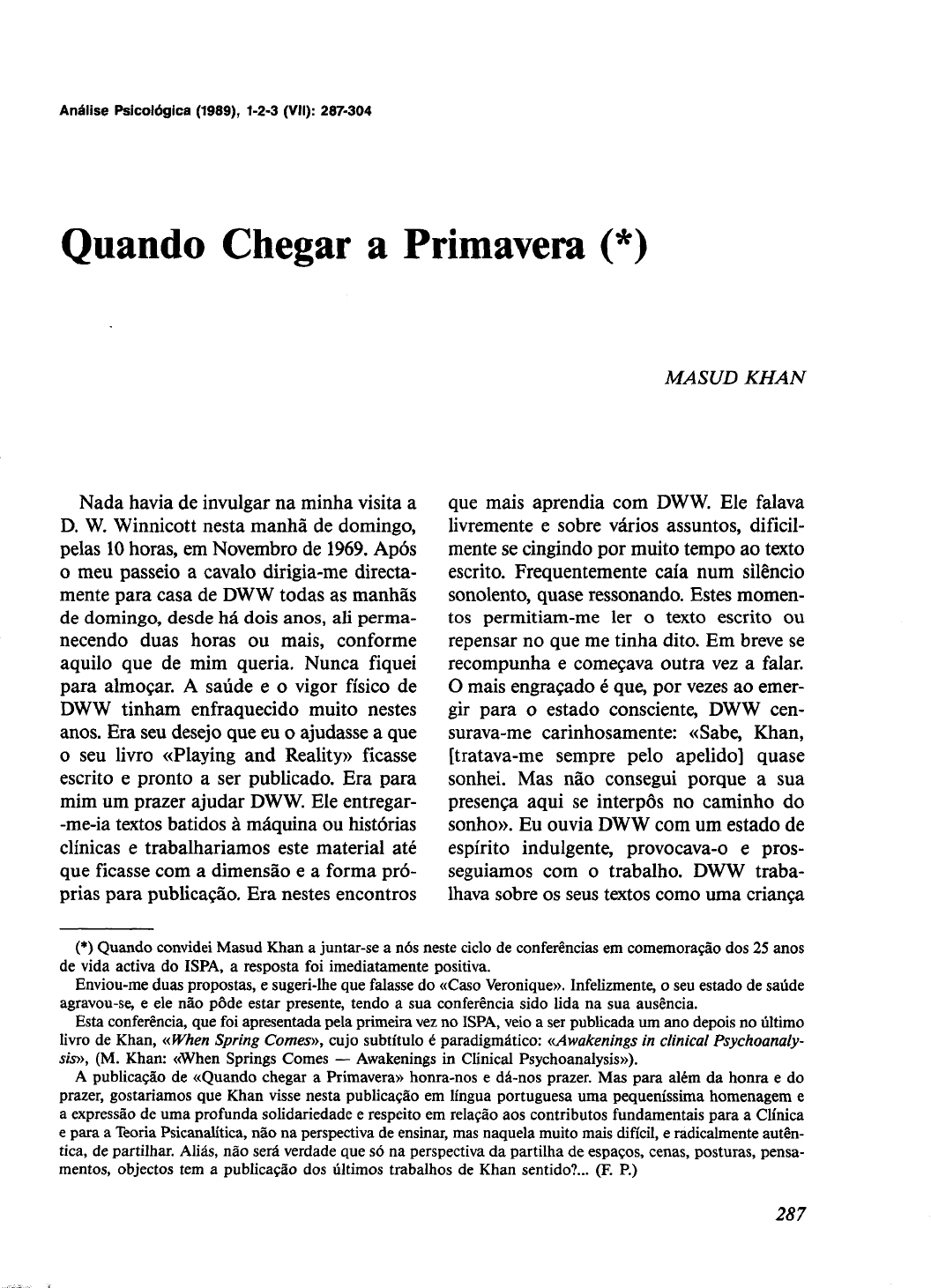 Análise Psicológica (1989), 1-2-3 (VII): 287-304