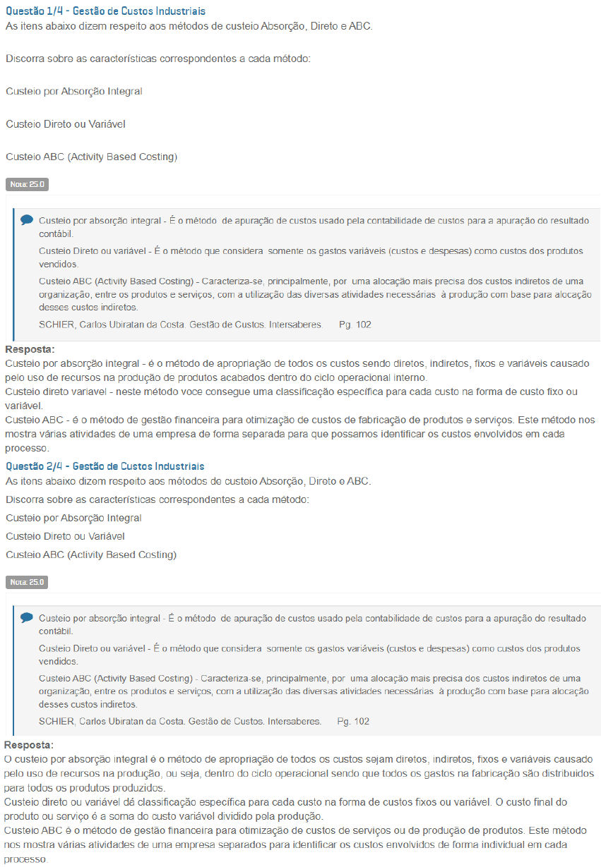 GESTÃO DE CUSTOS INDUSTRIAIS PROVA DISCURSIVA