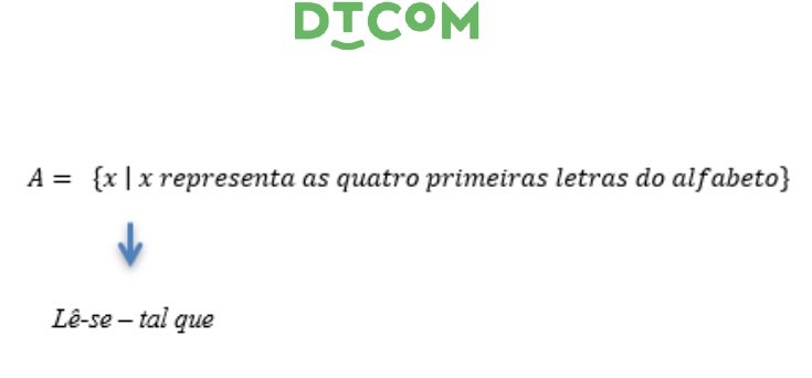 A = {a, b, c, d}, em que A é o conjunto, a, b, c, d são seus elementos. Para representar conjunto, podermos utilizar tanto a linguagem matemática quanto diagramas. Nesse exemplo, vamos utilizar a linguagem matemática. Acompanhe: