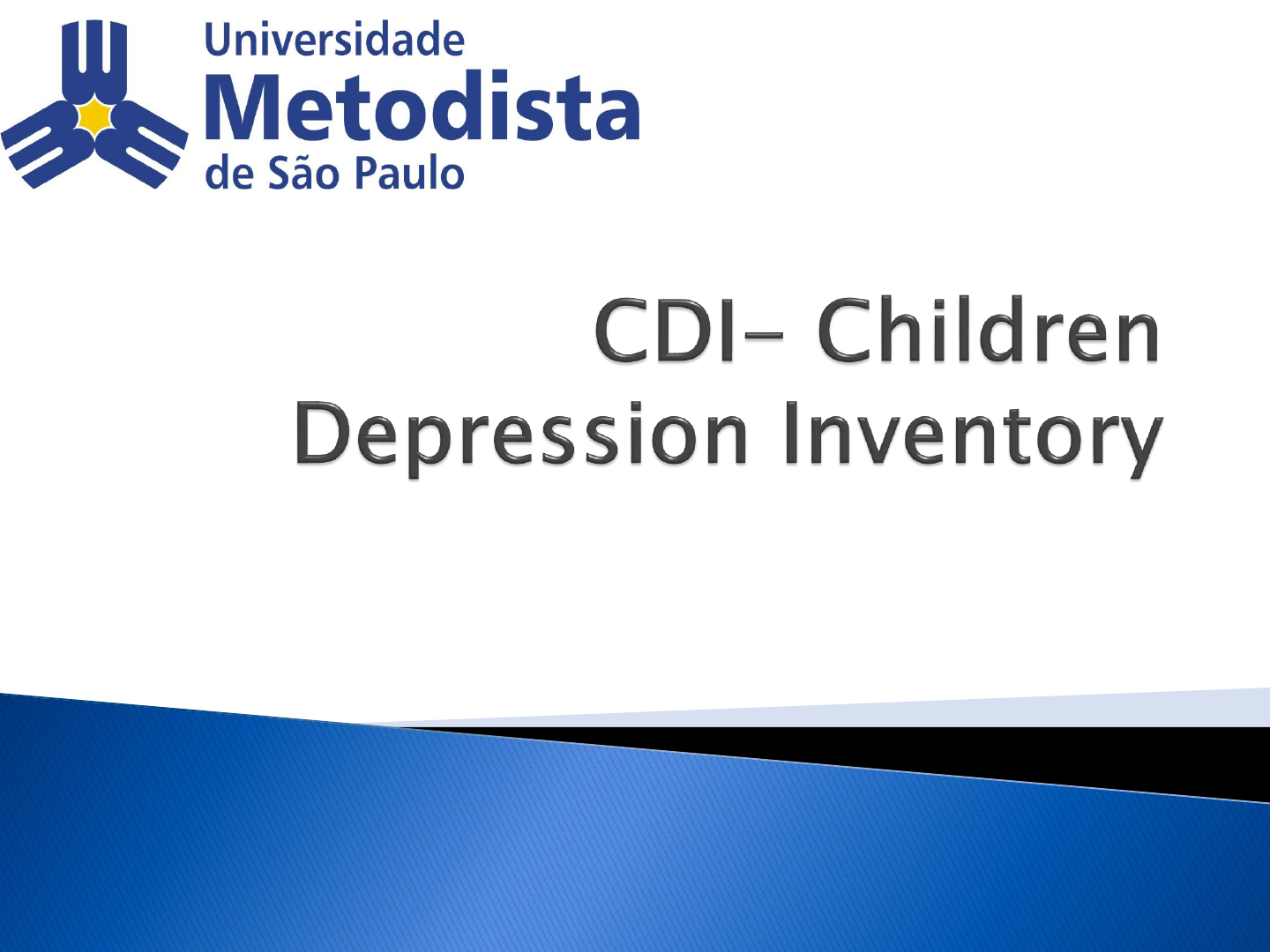 (Inventário de Depressão Infantil) Ano: 1983 Editora: TEA Ediciones Autor: Maria Kovacs Objetivo: Propõe mensurar sintomas depressivos em crianças e adolescentes de 7 a 17 anos, por meio de auto-aplicação. População: Crianças e Adolescentes do sexo feminino e do sexo masculino, com a faixa etária de 7 a 17 anos de idade. Amostra: Crianças e Adolescentes Aplicação: “Os participantes utilizam uma escala de resposta de três pontos para indicar a melhor alternativa que descreve seus sentimentos com relação às duas últimas semanas.” Coutinho e al (2008) Aplicada comumente em escolas, onde há um fácil acesso da população desejada. Avaliação: Nessa versão original, o instrumento consta de 27 itens distribuídos para avaliar os sintomas afetivos, cognitivos, somáticos e de conduta. A maior parte dos itens estão relacionados com o contexto escolar, nomeadamente com o trabalho escolar e com problemas comportamentais, e que demonstram sintomas depressivos a partir da somatória de 17 pontos segundo resposta dos avaliados. Artigo: Prevalência de sintomas depressivos em escolares Autores: Maria Helena Gonçalves Fonseca, Roberto Assis Ferreira, Sarah Gonçalves Fonseca Departamento de Pediatria da Universidade Federal de Minas Gerais (UFMG) Objetivo: Estimar sintomas depressivos e caracterizá-los, crianças de 7 a 13 anos; Método: Utilizando o CDI (27 questões fechadas, com nível de corte de 17 pontos) 519 estudantes em uma escola de MG.. 266 homens (51,8%) e 253 mulheres (48,7%) Resultados: 71 casos de sintomas depressivos (13,90%) com pontuação igual ou maior que 17 pontos; Sem numero significativo em relação a diferença de gênero Intenção suicida: 8 estudantes Respostas comuns: “tenho certeza que coisas horríveis vão acontecer comigo”, “me preocupo com dores” e “nunca vou ser tão bom quanto os outros”; Conclusão: Número significativo de escolares com sintomatologia depressiva, sintomas inespecíficos, como se preocupar com dores, acarretando dificuldade no diagnóstico. O CDI permitiu a visualização da ideação e intenção suicida. Fonte Virtual: http://pediatriasaopaulo.usp.br/upload/html/ 1143/body/03.htm
