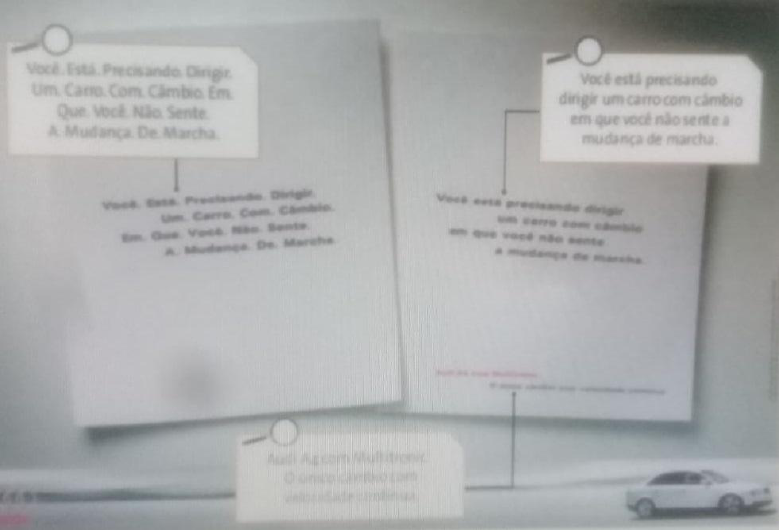 Questões de múltipla escolha Disciplina: 536930 - COMUNICAÇÃO E EXPRESSÃO Questão 1: Considere o anúncio e analise as afirmativas: V - I - No alto da página à esquerda, os pontos finais não obedecem às regras da norma culta, pois a intenção é representar, por meio deles, as pausas para mudança de marcha. F - II - Na página à direita, deveria haver uma vírgula depois de “dirigir”, mas ela foi suprimida para não indicar pausa no movimento do carro. V - III - Há um erro de regência verbal com o uso da preposição “em que”. É correto o que se afirma em: D A) As afirmativas I, II e III estão corretas. B) Apenas a I e a II estão corretas. C) Apenas a II e a III estão corretas. D) Apenas a I e a III estão corretas. E) Apenas a I está correta. Questão 2: Considere o texto abaixo e analise as afirmativas. “Doutor: temos um tipo de operação que vai fazer muito bem ao senhor. Se você é médico ou dentista, saiba que temos uma receita para você montar, ampliar e informatizar seu consultório. É o Dr. Leasing BCN. Uma linha de crédito, com ótimas taxas, para compra de equipamentos e até automóveis. Faça uma simulação de seu leasing pela internet: www.bcn.com.br ou peça mais informações sobre este tratamento especial para o seu gerente BCN.” I - Trata-se de um anúncio publicitário, com estrutura narrativa e narrador em segunda pessoa. II - O texto usa como argumento básico a analogia. III - Há um erro de regência verbal no texto. Assinale a alternativa correta: A A) Nenhuma afirmativa está correta. B) Apenas a afirmativa III está correta. C) Apenas as afirmativas II e III estão corretas. D) Apenas as afirmativas I e II estão corretas. E) Todas as afirmativas estão corretas. Questão 3: Considere o título jornalístico e as afirmativas: “Alinne Araújo, famosa blogueira, comete suicídio após ser abandonada pelo noivo e ataques na internet” Disponível em: https://www.otvfoco.com.br/alinne-araujo-famosa-blogueira-comete-suicidio-apos-ser-abandonada-pelo-noivo-e-ataques>internet/amp/?fbclid=IwAR39MhSI7U3whNVQyVaa6o3gJfUsv5qvogwNsHaIRggxh81J60YTx01pk9Eqa\zq. Acesso em: 25 jul.2019. I - Há um problema de falta de paralelismo sintático na construção do título. II - O problema do título seria consertado se fosse acrescentado o verbo “sofrer” antes de “ataques na internet”. III - O erro de pontuação provoca ambiguidade no título. E Assinale a alternativa correta: A) As afirmativas I, II e III estão corretas. B) Apenas a II e a III estão corretas. C) Apenas a I e a II estão corretas. D) Apenas a I e a III estão corretas. E) Apenas a II está correta. Questão 4: Leia o texto abaixo, que é um fragmento extraído de um vídeo protagonizado pelo dramaturgo Plínio Marcos e exibido na Casa de Detenção de São Paulo, para ensinar aos detentos formas de prevenção contra a Aids. Em seguida, analise as afirmativas. “Aqui é bandido: Plínio Marcos. Atenção, malandrage! Eu num vô pedir nada, vô te dá um alô! Te liga aí: Aids é uma praga que rói até os mais fortes, e rói devagarinho. Deixa o corpo sem defesa contra a doença. Quem pegá essa praga está ralado de verde e amarelo, de primeiro ao quinto, e sem vaselina. Num tem dotô que dê jeito, nem reza brava, nem choro, nem vela, nem ai, Jesus. Pegou Aids, foi pro brejo! Agora, sente o aroma da perpétua: Aids pega pelo esperma e pelo sangue, entendeu? Pelo esperma e pelo sangue! [...] Então, já viu: transá, só de acordo com o parceiro, e de camisinha!” I - O trecho tem estrutura narrativa com enredo, personagem e narrador em primeira pessoa. II - O nível de linguagem utilizado é um recurso do enunciador para deixar seu texto mais persuasivo, pois leva em consideração o universo do público-alvo. III - O texto dirige-se diretamente ao receptor e apresenta marcas de oralidade. É correto o que se afirma somente em: A A) I e II. B) II e III. C) II. D) I. E) III. Questão 5: Considere os períodos a seguir e assinale a alternativa correta: E I - O chefe quis saber por que o funcionário estava atrasado. II - Se não fosse a chuva, ele não teria chego atrasado. F - III - Faziam dois meses que ele não se atrasava. A) Apenas o período I está de acordo com a norma culta. B) Apenas o período III está de acordo com a norma culta. C) Apenas os períodos II e III estão de acordo com a norma culta. D) Apenas os períodos I e III estão de acordo com a norma culta. E) Apenas os períodos I e II estão de acordo com a norma culta. Questão 6: Foi solicitada a um aluno a paráfrase do trecho a seguir, de um ensaio do professor e crítico literário Antônio Cândido. Considere o texto original e a paráfrase feita pelo estudante e analise as afirmativas. Texto original: “A composição da obra literária (ANTÔNIO CÂNDIDO, 1965) Antes, procurava-se mostrar que o valor e o significado de uma obra dependiam de ela exprimir ou não certo aspecto da realidade, e que este aspecto constituía o que ela tinha de essencial. Depois, chegou-se à posição oposta, procurando-se mostrar que a matéria de uma obra é secundária, e que a sua importância deriva das operações formais postas em jogo, conferindo-lhe uma peculiaridade que a torna de fato independente de quaisquer condicionamentos, sobretudo social, considerado inoperante como elemento de compreensão. Hoje sabemos que a integridade da obra não permite adotar nenhuma dessas visões dissociadas; e que só a podemos entender íntegra, em que tanto o velho ponto de vista que explicava pelos fatores externos, quanto o outro, norteado pela convicção de que a estrutura é virtualmente independente, se combinam como momentos necessários do processo interpretativo. Sabemos, ainda, que o externo (no caso, o social) importa, não como causa, nem como significado, mas como elemento que desempenha um certo papel da constituição da estrutura, tornando-se, portanto, interno.” Paráfrase feita pelo aluno: 