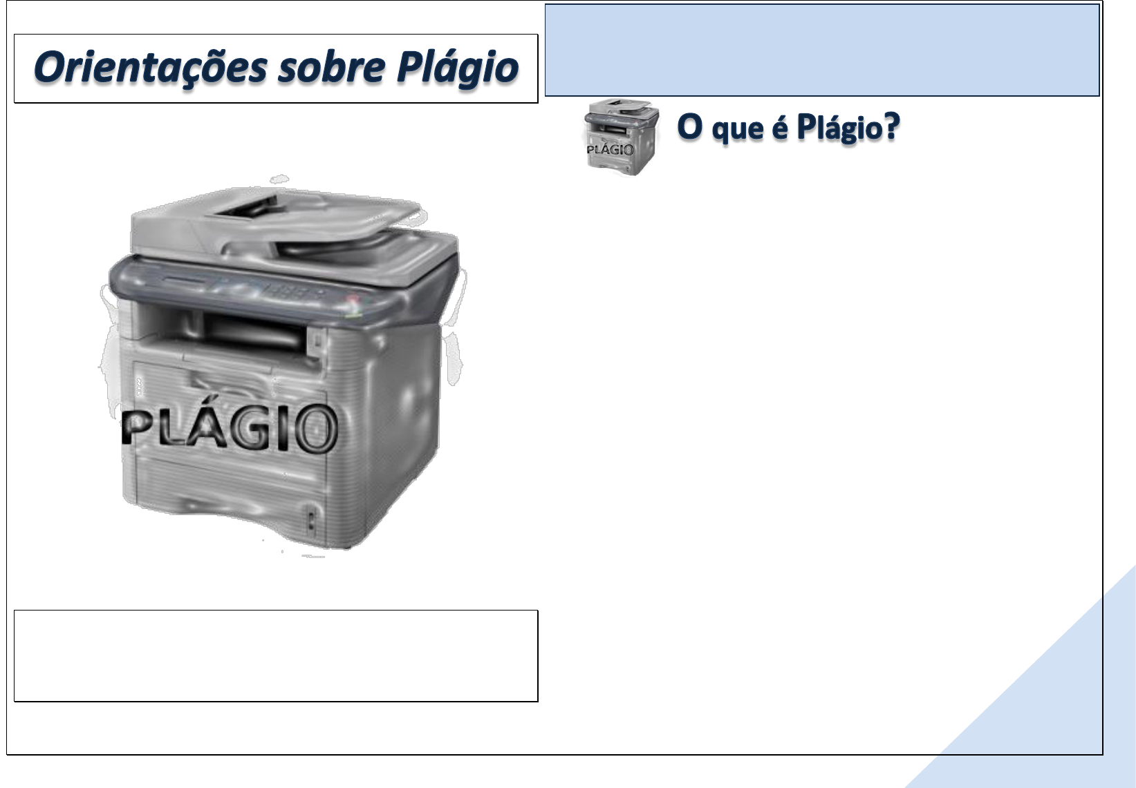 1 Prof. Dr. Fábio Ricardo Mizuno Lemos Prof. Ms. Engels Câmara SPQMH/NEFEF-UFSCar Fev. 2014 O plágio pode ser definido como “[...] ato ou efeito de imitar, de apresentar, como sua, obra de outra pessoa” (CUNHA, 1997, p. 611). A palavra plágio deriva do latim “plagĭum” (CUNHA, 1997, p. 611), que significa “roubo” (PORTO, 1997, p. 379). Assim sendo, o plágio não é a utilização das ideias dos autores, simplesmente. Mas sim, o seu uso, sem a devida indicação de autoria. É importante salientar que a prática do plágio, além de ser antiética, é ilegal [crime de violação dos direitos autorais previsto no Código Penal Brasileiro – art. 184. “Pena – detenção, de 3 (três) meses a 1 (um) ano, ou multa” (BRASIL, 2003, p. 1)]. LEMOS, Fábio Ricardo Mizuno; CÂMARA, Engels. . São Carlos: SPQMH/NEFEF-Orientações sobre plágio UFSCar, fev. 2014. 15 p. Folheto Didático. 3 2 A citação de autoria não configura plágio, mas é importante ficar atento para fazê-la do modo correto! De acordo com a NBR-10520, Norma Brasileira aprovada pela Associação Brasileira de Normas Técnicas (ABNT, 2002), citação é a “Menção de uma informação extraída de outra fonte” (p. 1). Em um texto acadêmico, ainda pode ocorrer a citação de citação, que é a “Citação direta ou indireta de um texto em que não se teve acesso ao original” (ABNT, 2002, p. 1). Citação direta: “Transcrição textual de parte da obra do autor consultado” (ABNT, 2002, p. 2); Citação indireta: “Texto baseado na obra do autor consultado” (ABNT, 2002, p. 2). “Citações diretas [...] de até 3 linhas devem estar contidas entre aspas duplas” (ABNT, 2002, p. 2). Exemplo 1: Para Luckesi (2011, p. 74), no tecnicismo: “[...] acredita-se que a realidade contém em si suas próprias leis, bastando [...] descobri-las e aplicá-las”. Exemplo 2: “[...] somos parte de um universo não- linear, não-previsível, complexo, caótico, criativo e pluralista [...]” (SÉRGIO, 2005, p. 28). “Citações diretas [...] com mais de 3 linhas, devem ser destacadas com recuo de 4 cm da margem esquerda com letra menor que a do texto utilizado e sem aspas” (ABNT, 2002, p. 2). 5 4 Exemplo: As consequências disto são evidentes na observação de uma aula de Educação Física onde, na tentativa de copiar de forma irrefletida o esporte competitivo e normatizado do Mundo dos Esportes Organizados e de Competição, introduzem- se no interior da Escola, ou da Educação Física Escolar, os ‘princípios básicos’ deste esporte [...], ou seja, os princípios da ‘Sobrepujança’ e das ‘Comparações Objetivas’ e suas consequências imediatas: as tendências do ‘Selecionamento’, da ‘Especialização’ e da ‘Instrumentalização’. (KUNZ, 2004, p. 165). Citações indiretas: Exemplo 1: A verdade é que as corporações, desde o surgimento, até os dias de hoje, acumularam grande poder, pela capacidade que têm de combinar o capital (poder econômico) de um ilimitado número de pessoas para financiar empreendimentos de grande escala (BAKAN, 2008). Exemplo 2: Mas, a força econômica, sem dúvida, impulsionou os Estados Unidos a uma posição de centralizadora influência e para Bakan (2008) o poderio influenciador não é da nação em si, mas das corporações anglo-estadunidenses, das quais, as mais poderosas estão naquele país e são as representantes máximas da constituição de um mercado hegemônico. Nas citações indiretas “O pesquisador pode sintetizar ou explicar com suas próprias palavras a ideia central do texto consultado. [...] mas é primordial que se indiquem a autoria e a referência [...]” (DUPAS, 2012, p. 27). 7 6 Citações de citações: Exemplo: Com o notável crescimento da cidade, conforme artigo escrito em 1943: “São Carlos [...] tem se desenvolvido sem um plano previamente estabelecido” (Camargo citado por DEVESCOVI, 1987, p. 180), foram ocorrendo algumas mudanças/transformações nos espaços urbanos. A citação de citação “[...] é indicada da seguinte forma: sobrenome do autor original, seguido da expressão ‘apud’ ou ‘citado por’ e do nome do autor citado (autor da obra consultada)” (DUPAS, 2012, p. 27). Em site especializado em tratar de questões relacionadas ao plágio (PLÁGIO, 2014), os principais tipos são classificados em: plágio direto; plágio indireto; plágio consentido; plágio de fontes e autoplágio. Plágio Direto: “Cópia literal do texto original” (PLÁGIO, 2014, s/p). Exemplo 1: As consequências disto são evidentes na observação de uma aula de Educação Física onde, na tentativa de copiar de forma irrefletida o esporte competitivo e normatizado do Mundo dos Esportes Organizados e de Competição, introduzem-se no interior da Escola, ou da Educação Física Escolar, os “princípios básicos” deste esporte, ou seja, os princípios da “Sobrepujança” e das “Comparações Objetivas” e suas consequências imediatas: as tendências do “Selecionamento”, da “Especialização” e da “Instrumentalização”. Nesse exemplo, o plagiador utilizou o trecho apresentado no modelo da citação direta com mais de 3 linhas, sem indicar a autoria! 9 8 Exemplo 2: As consequências disto são evidentes na observação de uma aula de Educação Física onde, na tentativa de copiar de forma irrefletida o esporte competitivo e normatizado do Mundo dos Esportes Organizados e de Competição, introduzem-se no interior da Escola, ou da Educação Física Escolar, os “princípios básicos” deste esporte, ou seja, os princípios da “Sobrepujança” e das “Comparações Objetivas” e suas consequências imediatas: as tendências do “Selecionamento”, da “Especialização” e da “Instrumentalização” (KUNZ, 2004). Nesse exemplo, a falta de formatação adequada (recuo da margem e letra menor) e da indicação do número da página, leva o leitor a interpretar erroneamente qu