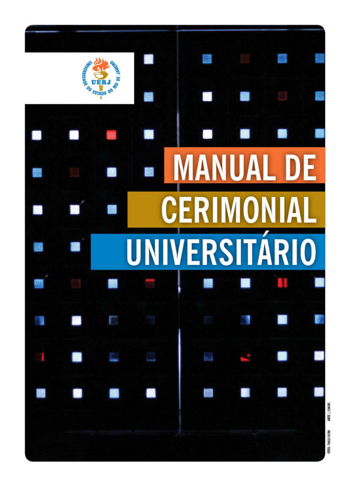 Universidade do Estado do Rio de Janeiro Diretoria de Comunicação Social Manual de cerimonial universitário Atualizado em maio de 2011 2 / 13 Sumário Planejamento de eventos A importância do planejamento Espaços disponíveis na Universidade A quem solicitar o quê Critérios para utilização dos serviços de organização de eventos, cerimonial e protocolo prestados pela Diretoria de Comunicação Social da UERJ Precedência na UERJ Precedência entre setores Precedência entre bandeiras Cerimonial dos principais eventos oficiais da UERJ Introdução O presente manual apresenta, de forma sucinta, os principais pontos a serem observados para a organização de eventos na Universidade do Estado do Rio de Janeiro, principalmente no que se refere ao cerimonial a ser seguido. Como instituição estatal, a UERJ deve obedecer às normas de Cerimonial Público e a Ordem Geral de Precedência definidas no Decreto nº 70.274. No entanto, como as universidades promovem solenidades muito específicas e particulares, este manual traz orientações práticas adicionais que devem ser seguidas a fim de garantir o bom andamento dos eventos. Planejamento de eventos A importância do planejamento Planejar é ação estratégica. Para tanto, é preciso assumir uma postura de antecipação e prospecção do comportamento das diversas variáveis em cenários futuros. Para isso, é fundamental conhecer o contexto e os personagens envolvidos, traçando um diagnóstico da situação. E, a partir deste conhecimento prévio, definir: o que fazer porque fazer quem deve fazer como fazer O planejamento de um evento deve, primeiramente, estar inserido numa estratégia mais abrangente de comunicação, como uma ação que, integrada a outras, irá trazer resultados positivos a curto, médio ou longo prazos. O seu planejamento operacional deve observar algumas questões, como: Universidade do Estado do Rio de Janeiro Diretoria de Comunicação Social Manual de cerimonial universitário Atualizado em maio de 2011 3 / 13 Objetivos – é preciso ter claro o que se pretende obter com a realização do evento, pois é essa diretriz que irá conduzir a definição das estratégias a serem adotadas. Públicos – da mesma forma, saber a quem se quer alcançar é fundamental para definir questões como local, data, horário e formato do evento. Estratégia geral – um evento precisa ser pensado estrategicamente, traçando as melhores formas de envolvimento dos públicos e o consequente alcance dos objetivos, envolvendo questões como data, horário, local, perfil do evento, formas de divulgação, etc. Programa de atividades/cronograma – trata-se da especificação da estratégia ao longo do tempo. São todas as providências a serem tomadas, passo-a-passo, tendo em vista os prazos a serem cumpridos para o bom andamento do trabalho. Recursos – é um levantamento de todos os recursos (matérias, humanos e financeiros) necessários à realização de todas as etapas previstas na estratégia e no cronograma, desde a caneta para assinatura do livro de presença ao Mestre de Cerimônias, por exemplo. Acompanhamento e controle – o planejamento deve estabelecer as formas de acompanhamento das ações a serem realizadas, tanto na fase pré-evento como durante o evento e após o mesmo. Uma ferramenta muito útil é o check-list, por exemplo. Espaços disponíveis na Universidade O campus Francisco Negrão de Lima conta com uma localização privilegiada. Situado no bairro do Maracanã, no Rio de Janeiro, está perto de vários pontos da cidade, servido de diversos meios de transporte coletivo (metrô, ônibus e trem). Além disso, dispõe de distintos espaços formais para a realização de eventos. São eles: Teatro Odylo Costa, filho – 1.106 lugares Teatro Noel Rosa – 256 lugares Concha acústica - 3.000 lugares Capela Ecumênica - 240 lugares (dispõe de salão no subsolo com 217,5 m2, ante-sala com 83 m2 e pé-direito de 2,70m) Auditórios com ar condicionado: nº 11 (220 lugares), 13, 33, 53, 71 e 91 (250 lugares) Auditórios sem ar condicionado: nº 31, 51, 93, 111 e 113 (250 lugares) As unidades acadêmicas dispõem de salas de Recursos Audiovisuais (RAV), sendo que algumas contam ainda com auditórios, como: Instituto de Química (Pavilhão Haroldo Lisboa da Cunha): Auditório com 120 lugares (Tel: 2334-0563 / 2334-0104) Faculdade de Direito (Pavilhão João Lyra Filho): Salão nobre com 120 lugares (Tel: 2334-0507 / 2334-2157) As demais unidades e campi também dispõem de espaços para eventos. Demais unidades e campi: ESDI (Escola Superior de Desenho Industrial): - Sala com 80 lugares Rua Evaristo da Veiga, 95 - Lapa (centro do Rio de Janeiro) Tel: (21) 2332-6910 Universidade do Estado do Rio de Janeiro Diretoria de Comunicação Social Manual de cerimonial universitário Atualizado em maio de 2011 4 / 13 CAp - UERJ (Instituto de Aplicação Fernando Rodrigues da Silveira): - Auditório com 100 lugares Rua Santa Alexandrina, 288 - Rio Comprido - Rio de Janeiro Tel: (21) 2333-7872 / 2333-7873 / 2333-7875 / 2333-7876 Centro de Ciência e Tecnologia da Faculdade de Engenharia - Complexo Fonseca Teles: - Auditório com 30 lugares Rua Fonseca Teles, 121 - São Cristovão - Rio de Janeiro Tel: (21) 2332-4733 ramais 232 ou 233 Policlínica Piquet Carneiro - Auditório do Centro de Estudos com 90 lugares Avenida Marechal Rondon, 381 - São Francisco Xavier - Rio de Janeiro Tel: (21) 2334-2334 / 2334-2324 / 2334-2325 HUPE (Hospital Universitário Pedro Ernesto): - Anfiteatro Ney Palmeiro com 120 lugares Boulevard 28 de setembro, 77 - Vila Isabel - Rio de Janeiro Tel: (21) 2868-8506 e 2868-8108 (COCIPE) Faculdade de Ciências Médicas - Auditório Rolando Monteiro com 40 lugares Av. Professor Manoel de Abreu, 444 / 2º andar ou Boulevard 28 de Setembro, 77 (fundos do HUPE) - Vila Isabel - Rio de Janeiro Tel: 2868-8036 / 2868-8005 Faculdade de Enfermagem - Edifício Paulo de Carvalho: - Auditório com 120 lugares Boul