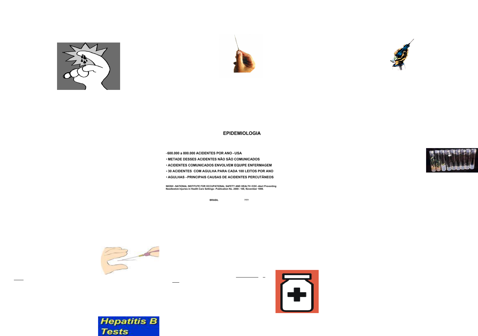 ACIDENTES PERFUROCORTANTES Pérfuro-cortantes O que são Pérfuro-cortantes? Todo material que possa provocar cortes ou perfurações. Causas dos Acidentes de Trabalho Ato inseguro Condição insegura do ambiente Fator pessoal de insegurança EPIDEMIOLOGIA • 600.000 a 800.000 ACIDENTES POR ANO - USA • METADE DESSES ACIDENTES NÃO SÃO COMUNICADOS • ACIDENTES COMUNICADOS ENVOLVEM EQUIPE ENFERMAGEM • 30 ACIDENTES COM AGULHA PARA CADA 100 LEITOS POR ANO • AGULHAS - PRINCIPAIS CAUSAS DE ACIDENTES PERCUTÂNEOS NIOSH - NATIONAL INSTITUTE FOR OCCUPATIONAL SAFETY AND HEALTH /CDC -Alert Preventing Needlestick Injuries in Health Care Settings - Publication No. 2000 - 108, November 1999. BRASIL ??? Introdução • As exposições ocupacionais a materiais biológicos (MB) potencialmente contaminados continuam representando um sério risco aos profissionais da área da saúde (PÁS), no seu local de trabalho. Apesar de muitos estudos desenvolvidos nesta área, os acidentes envolvendo sangue e outros fluidos orgânicos correspondem às exposições mais freqüentemente relatadas. • Os ferimentos com agulhas e materiais perfurocortantes, em geral, são considerados extremamente perigosos por serem potencialmente capazes de transmitir mais de vinte tipos de patógenos diferentes, sendo os vírus da Imudodeficiência Humana (HIV), da Hepatite B e da Hepatite C os agentes infecciosos mais comumente envolvidos • Evitar a exposição ocupacional é o principal caminho pra prevenir a transmissão dos vírus das Hepatites B e C e o do HIV. Entretanto a imunização contra a Hepatite B e o atendimento adequado pós-exposição são componentes integrais para um programa completo de prevenção destas infecções e elementos importantes para a segurança do trabalho 14/08/2019 9 Hepatites virais e AIDS • São os agentes mais importantes das infecções causadas por lesão por perfurocortantes • longos períodos sem sinais ou sintomas clínicos 14/08/2019 10 RISCO DE TRANSMISSÃO • Quando um trabalhador de saúde sofre uma lesão por perfurocortante contaminado, existe o risco de transmissão de: • Hepatite B: 1 a cada 3 exposições • existe vacina! • Hepatite C: 1 a cada 30 exposições • AIDS: 1 a cada 300 exposições ACIDENTES DO TRABALHO • As atividades de atenção à saúde com cuidados diretos à pacientes e manuseio de material destes pacientes não previamente esterilizados, traz uma carga de risco de acidentes muito grande para o trabalhador. O principal e mais evidente, é o risco de acidentes com materiais perfurocortantes (PFC´s): agulhas, gelcos, lâminas, ganchos, tesouras, etc. SETORES DE MAIOR INCIDÊNCIA • Serviço de enfermagem, Laboratórios de Anatomia e Patologia, Lavanderia, Serviço de limpeza, Banco de Sangue, Coleta de Sangue, entre outros. Por manterem contato direto habitual e permanente com material biológico na execução das atividades diárias. COMO OCORRE A EXPOSIÇÃO • Preparação, • Administração, • Descarte, • Transporte, • Limpeza , • Manuseio de excretas, • Manipulação de fluidos, • Separação e transporte de lixo A exposição mais severa poderá ocorrer durante os seguintes procedimentos: ACIDENTES COM MATERIAL BIOLÓGICO • 1. Acidentes com instrumentos perfurocortantes (agulhas, Lâminas de bisturi, etc.) visivelmente ou potencialmente contaminados. • 2. Acidente com sangue e seus derivados ou fluídos corporais, que tenham contato com a pele integra ou em solução de continuidade da pele, ou com a mucosa do acidentado. Riscos Biológicos em Serviços de Saúde Relação entre vias de contaminação e doenças • Via aérea: tuberculose, varicela, rubéola, sarampo, influenza, viroses respiratórias, doença meningocócica • Exposição ao sangue e fluidos orgânicos: HIV, hepatites B e C, raiva • Transmissão fecal-oral: hepatite A, poliomielite, gastroenterite, cólera • Contato com o paciente: escabiose, pediculose, colonização por stafilococos Meios de contaminação: • Contato direto com material biológico, contato indireto através de Perfurocortantes ou ainda pelo contato com o ambiente contaminado (bacilo da Tuberculose). Causas mais freqüentes : • a pressa, que tira a atenção e leva os profissionais a cometerem erros graves como o descarte inadequado; • o esquecimento de perfurocortantes em locais impróprios como macas ou balcões; • utilização errada dos coletores, • reencape de agulhas, • derrubada de agulhas no chão, • quebra de ampolas sem proteção para as mãos, Causas mais freqüentes : • a falta de equipamentos adequados, • iluminação deficiente nos ambientes de trabalho, • pacientes agressivos ou descontrolados, • falta de funcionários causando sobrecarga de serviço, 14/08/2019 38 Acidentes com perfurocortantes • EUA: cerca de 1.000 exposições percutâneas (parenterais) a material biológico por dia em hospitais • Europa: cerca de 1 milhão de ferimentos por agulhas por ano • Números reais difíceis de estimar • evolução silenciosa e demorada das doenças, dificultando o nexo causal • trabalhador da saúde não reconhece o trabalho como possível agente causal de agravos a sua saúde • várias dificuldades para relatar e registrar acidentes Trabalhos estatísticos ACIDENTES MAIS FREQUENTES NA ÁREA DA SAÚDE • entre Agosto/1998 e Agosto1999, ocorreram 2.196 acidentes, • entre uma população de 17.046 trabalhadores, • em 14 entidades paulistas do setor de assistência à saúde, • Deste total de acidentes 38% representou os acidentes com PFC´s. DIAS PERDIDOS : 5.590 FONTE : COMISSÃO DE EPIDEMIOLOGIA HOSPITALAR - HOSPITAL SÃO PAULO - UNIFESP - JUNHO 2001 ACIDENTES COM MATERIAL BIOLÓGICO HOSPITAL SÃO PAULO - JAN 1994 A JUN 2000 n= 1767 CARACTERÍSTICAS Nº (%) SEXO FEMININO 1263 71,5 MASCULINO 504 28,5 ATIVIDADE ENFERMAGEM 779 44,1 MÉDICOS 140 7,9 RESIDENTES (MEDICINA E ENFERMAGEM) 320 18,1 ALUNOS 161 9,1 LIMPEZA 236 1