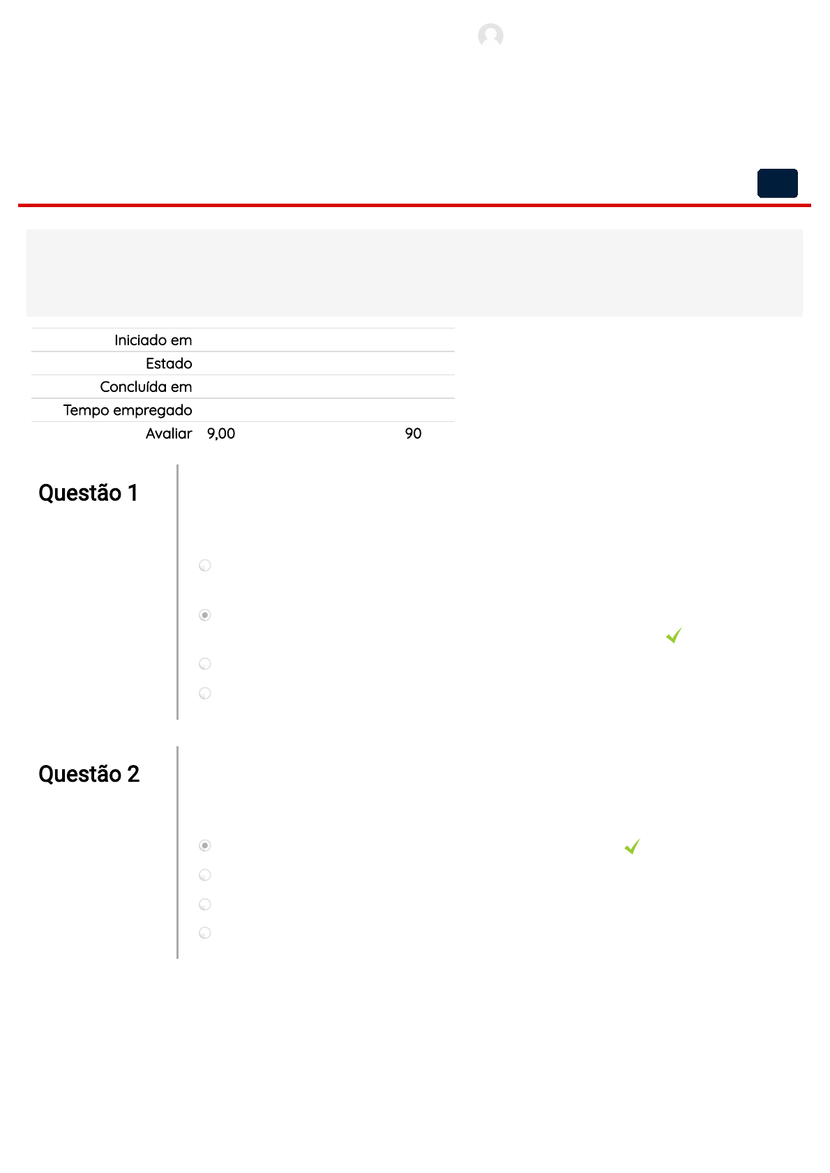 / Questão 1 Correto Atingiu 1,00 de 1,00 Questão 2 Correto Atingiu 1,00 de 1,00 Minhas Disciplinas INTRODUÇÃO A EDUCAÇÃO A DISTÂNCIA - 10523 Avaliações Avaliação Formativa II Iniciado em terça, 1 out 2019, 21:33 Estado Finalizada Concluída em terça, 1 out 2019, 21:50 Tempo empregado 17 minutos 1 segundo Avaliar 9,00 de um máximo de 10,00(90%) Qual foi o motivo que impulsionou necessariamente o governo americano a desenvolver uma rede mundial de comunicação que depois se chamaria Internet? Escolha uma: a. A pressão dos cientistas da época para divulgar suas pesquisas em todo mundo. b. A Guerra Fria, os Estados Unidos procurava descobrir como manter uma rede de comunicação e um comando que resistisse a um ataque nuclear. c. Todas as alternativas estão corretas. d. Utilização de meios de comunicação mais complexos para uso educativo. Sendo a Internet um ambiente propício à obtenção e troca de informação. Marque a alternativa que não corresponde à justi�cativa correta dessa a�rmação. Escolha uma: a. Oferece um número limitado de recursos informacionais. b. Contêm informações atualizadas. c. Motiva o esforço de pesquisa. d. Cada usuário determina o material que deseja apresentar. WELEN WITTIZ LIRA DOS SANTOS VIEIRA / Questão 3 Correto Atingiu 1,00 de 1,00 Questão 4 Correto Atingiu 1,00 de 1,00 Questão 5 Correto Atingiu 1,00 de 1,00 Questão 6 Incorreto Atingiu 0,00 de 1,00 A Internet pode contribuir também para promover a interação entre a escola e o meio, possibilitando a escola quebrar o seu isolamento e oportunizando sua integração no mundo que a rodeia, aproximando-a da vida. Através desse meio de comunicação são disponibilizados inúmeros recursos que combinam publicações e interação. Marque a alternativa que não corresponde aos recursos de publicação. Escolha uma: a. Blog. b. Redes sociais. c. Páginas web. d. SMS. Em referência a seguinte a�rmação: "Mais do que ensinar, o professor concentra-se no "aprender fazendo", na criação, gestão e regulação das situações de aprendizagem signi�cativas ao grupo de cada estudante". Como são encarados professores e estudantes? Escolha uma: a. Como colaboradores do crescimento individual e coletivo. b. Como colaboradores do crescimento individual. c. Como colaboradores do crescimento coletivo. d. Como colaboradores individuais e coletivos. Quando a Internet "nasceu"? Escolha uma: a. 15 de outubro de 1962. b. 9 de novembro de 1989. c. 13 de agosto de 1961. d. 12 de janeiro de 1983. E quanto a você, quais os benefícios que a Internet pode trazer para o seu aprendizado? Escolha uma: a. Todas as alternativas estão corretas. b. Os participantes do processo educacional podem ver seus trabalhos publicados. c. Os estudantes podem chegar a resultados semelhantes de aprendizado percorrendo diferentes caminhos de aprendizagem. d. Os participantes do processo educacional podem comunicar-se facilmente entre si. / Questão 7 Correto Atingiu 1,00 de 1,00 Questão 8 Correto Atingiu 1,00 de 1,00 Questão 9 Correto Atingiu 1,00 de 1,00 Questão 10 Correto Atingiu 1,00 de 1,00 O desenvolvimento da Internet como ferramenta potencial na área da educação envolve quatro momentos: Marque a opção que não corresponde: Escolha uma: a. Negociação. b. Colaboração c. Interação. d. Difusão de informação. Segundo a a�rmação: "Estudantes e professores caminham rumo à produção compartilhada do conhecimento". Qual o papel do professor? Escolha uma: a. Nenhuma alternativa está correta. b. Navegar junto com seus estudantes, apontando a exploração de novos caminhos, motivando a resolução de problemas ou o desenvolvimento de projetos que mobilizem suas expectativas, desejos e interesses. c. Acompanhar e observar todas as atividades dos estudantes, os direcionando a navegar de forma especí�ca para que eles não cometam erros. d. Deixar os alunos desenvolverem sua própria autonomia em pesquisa, e desenvolvimento de projetos para que eles não precisem depender de um professor a todo momento. Com relação ao respeito aos direitos autorais, plágios e normas de etiqueta na Internet, marque a alternativa correta. Escolha uma: a. Escreva sempre em linguagem de internet. b. Sempre usar mensagens longas. c. Mande qualquer dado pessoal pela internet. d. Certi�car-se de que o conteúdo é de fácil leitura e compreensão para o receptor. Com relação ao estudo da unidade dois, você pode concluir que a Internet apresenta um enorme potencial para a educação. Esta a�rmação é: Escolha uma: a. Verdadeira. b. Falsa.