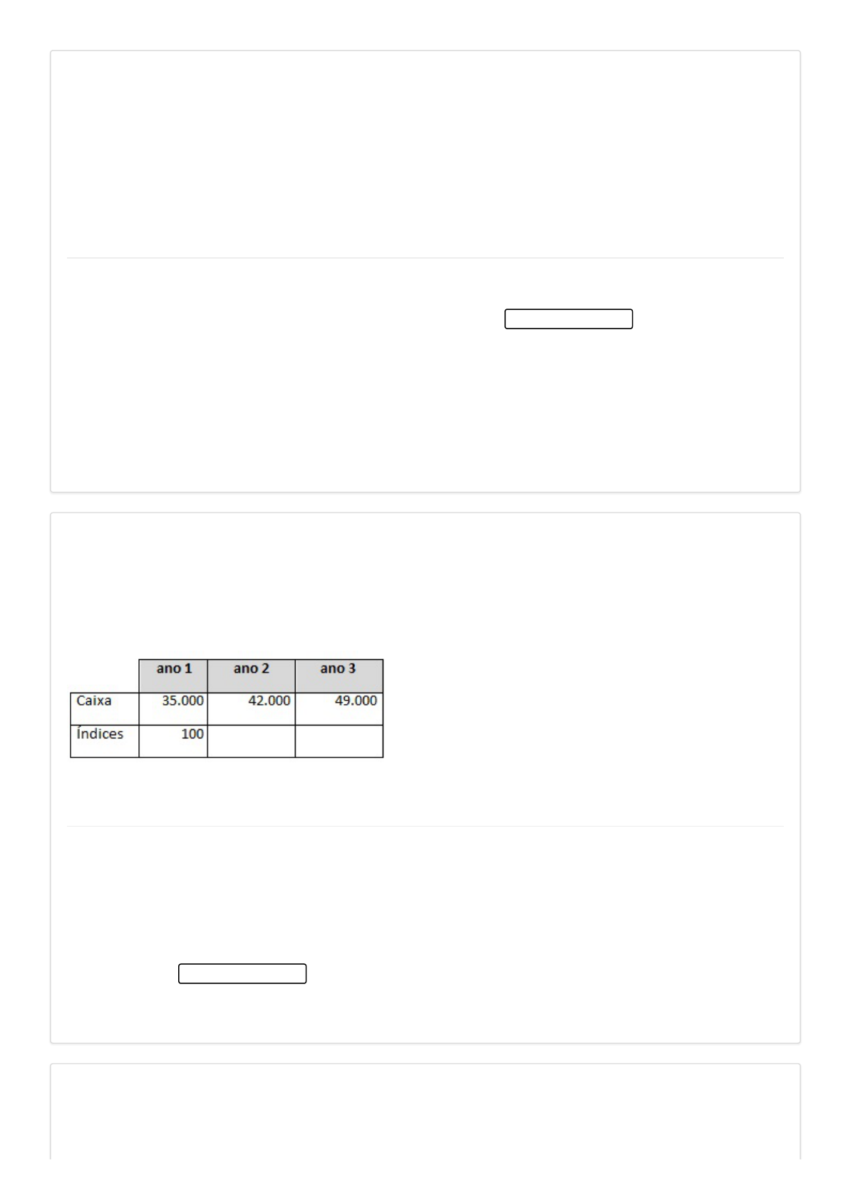 25/10/2019 Colaborar - Av1 - Capital de Giro e Análise Financeira https://www.colaboraread.com.br/aluno/avaliacao/index/2295043601?atividadeDisciplinaId=8759876 1/3 1) a) b) c) d) e) 2) a) b) c) d) e) 3) null Texto-base: A análise horizontal e vertical é uma técnica de aplicação simples, mas que gera informações importantes para a avaliação do desempenho organizacional, por isso é bastante utilizada. A análise vertical compara itens pertencentes à mesma demonstração financeira. Seu objetivo é dar uma ideia da representatividade ou importância de um determinado item ou subgrupo, tomando o total ou o subtotal como base. A análise vertical complementa a análise horizontal, pois permite que se observe alterações na estrutura das demonstrações financeiras. Enunciado: Na análise vertical, quando se avalia o percentual de determinada conta, que leitura o gestor faz? Alternativas: Ele avalia a importância da conta no total ou no subgrupo. Alternativa assinalada Ele consegue analisar se há alguma tendência nesta conta através da sua variação. Ele consegue avaliar se a empresa vai ter lucro. Por se tratar de simples divisão de valores, o gestor não tem condições de fazer nenhuma análise. Ele avalia a performance passada da empresa como um todo. null Texto-base: A empresa XYZ apresentou a evolução da sua conta caixa em três anos consecutivos, expressos no quadro a seguir. Você tem intenção de investir na empresa e, de posse destas informações, fez a análise horizontal dessa conta e considerou o ano 1 como base para sua comparação. Enunciado: Qual é o percentual de crescimento do ano 1 para o ano 2 e do ano 2 para o ano 3, respectivamente, que você apurou na sua análise? Alternativas: 10% e 10% 10% e 20% 120% e 140% 20% e 40% Alternativa assinalada 20% e 60% null Texto-base: A empresa XYZ está em processo de análise de crédito por uma instituição financeira porque ela precisa de financiamento para a compra de um equipamento muito caro, mas que fará sua produção melhorar muito em termos de quantidade e qualidade. A instituição financeira solicitou para 25/10/2019 Colaborar - Av1 - Capital de Giro e Análise Financeira https://www.colaboraread.com.br/aluno/avaliacao/index/2295043601?atividadeDisciplinaId=8759876 2/3 a) b) c) d) e) 4) a) b) c) análise diversos documentos, inclusive as demonstrações financeiras da XYZ. No quadro a seguir, o analista de crédito separou o ativo circulante, o passivo circulante e o estoque apresentado no balanço patrimonial da empresa nos últimos quatro anos: Enunciado: Qual é a liquidez corrente calculada pelo analista para os anos 3 e 4, respectivamente? Alternativas: 1,14 e 1,17 1,25 e 1,15 1,21 e 1,09 Alternativa assinalada 1,30 e 1,60 1,02 e 2,00 null Texto-base: A empresa XYZ é uma indústria fabricante de chocolates. Você é um investidor e está interessado em investir na empresa, por isso está avaliando a demonstração do resultado de exercício publicada pela empresa: Demonstração do resultado do exercício (em milhares de reais) Enunciado: Qual foi a margem de lucro bruta da fabricante de chocolates XYZ? Alternativas: 20% 60% Alternativa assinalada 10% 25/10/2019 Colaborar - Av1 - Capital de Giro e Análise Financeira https://www.colaboraread.com.br/aluno/avaliacao/index/2295043601?atividadeDisciplinaId=8759876 3/3 d) e) 5) a) b) c) d) e) 15% 50% null Texto-base: Você está interessado em comprar ações da empresa Corporações ABC S.A. Você é muito cuidadoso com seus investimentos e sabe analisar as demonstrações financeiras das empresas pelo sistema DuPont de análise. Você tem em mãos as seguintes demonstrações financeiras da ABC para sua análise: Alternativas: ROA = 3,50% e ROE = 17,50% Alternativa assinalada ROA = 10,00% e ROE = 20,00% ROA = 17,50% e ROE = 10,00% ROA = 5,00% e ROE = 17,50% ROA = 5,00% e ROE = 20,00%