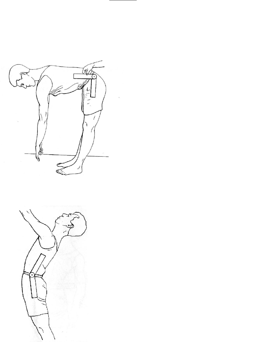 LOMBAR GONIOMETRIA Flexão da lombar (0º a 95º) Extensão da lombar (0º a 35º) Flexão lateral da lombar (0º a 40º) Rotação da lombar (0º a 35º) PROVA DE FUNÇÃO MUSCULAR Flexão do tronco: reto abdominal, oblíquo interno e externo do abdome, psoas maior e menor. Grau 5 (Normal) Posição do paciente: Decúbito dorsal com as mãos enganchadas atrás da cabeça (grau 5), cruzadas no tórax (grau 4) e ao longo do corpo (grau 3). Posição do terapeuta: Em pé ao lado da mesa ao nível do tórax do paciente para determinar se as escápulas se afastam da mesa durante o teste. Grau 5: Paciente realiza a amplitude completa de movimento até os ângulos inferiores da escápula. Grau 4: Paciente realiza a amplitude completa de movimento com os braços cruzados sobre o tórax. Grau 3: Paciente realiza a amplitude completa de movimento com os braços esticados em extensão plena acima do plano do corpo. Grau 2 (Precário), Grau 1 (Traço) e Grau 0 (Zero) Posição do paciente: Decúbito dorsal com os braços ao longo do corpo. Posição do terapeuta: Em pé ao lado da mesa, a mão usada para realizar a palpação é colocada sobre o músculo reto abdominal. Sequência 1: Se ao solicitar que o paciente eleve a cabeça da mesa, as escápulas não se afastam da mesa, o grau é considerado 2. Sequência 2: O examinador sustenta a parte superior do tronco e a cabeça afastada da mesa e pede ao paciente que incline para diante. Se houver depressão do gradil costal é grau 2, mas se ocorrer uma contração visível ou palpável o grau atribuído é 1, e se não houver atividade contrátil será 0. Sequência 3: Se o paciente conseguir tossir em qualquer atividade e observar a depressão do gradil costal, o grau será 2. Caso o paciente não consiga tossir, mas se observe atividade contrátil será grau 1, e ausência de qualquer atividade contrátil será 0. Extensão do tronco: iliocostal lombar, multifidio, músculos rotadores lombares. Grau 5 (Normal) e Grau 4 (Bom) Posição do paciente: Decúbito ventral com as mãos enganchadas atrás da cabeça. Posição do terapeuta: Em pé com as mãos logo acima dos tornozelos a fim de estabilizar as extremidades inferiores se o paciente possuir grau normal (grau 5) e sobre a pelve (grau 4). Grau 5: Paciente consegue alcançar rapidamente a posição terminal e mantém a extensão do tronco sem evidência de esforço. Grau 4: Paciente alcança a posição terminal de extensão do tronco, porém pode vacilar ou exibir alguns sinais de esforços. Grau 3 (Regular) Posição do paciente: Decúbito ventral com os braços ao longo do corpo. Posição do terapeuta: Em pé com as mãos logo acima dos tornozelos a fim de estabilizar as extremidades inferiores e a outra mão sobre os músculos extensores de tronco. Grau 2: Paciente realiza a extensão do tronco em amplitude parcial. Grau 1: Paciente apresenta atividade contrátil sem qualquer movimento. Grau 0: Nenhuma atividade contrátil. Rotação do tronco: oblíquo externo e interno do abdome, grande dorsal, reto abdominal e músculos profundos das costas. Grau 5 (Normal) e Grau 4 (Bom) Posição do paciente: Decúbito dorsal com as mãos enganchadas atrás da cabeça (grau 5), cruzadas no tórax (grau 4) e ao longo do corpo (grau 3). Posição do terapeuta: Em pé ao lado da mesa ao nível da cintura do paciente. Grau 5: Paciente flexiona o tronco e realiza rotação para um dos lados e repetido para o lado oposto. Grau 4: Paciente flexiona o tronco e realiza rotação para um dos lados e repetido para o lado oposto com os braços cruzados sobre o tórax. Grau 3: Paciente flexiona o tronco e realiza rotação para um dos lados e repetido para o lado oposto com os braços esticados acima do plano do corpo. Grau 2 (Precário) Posição do paciente: Paciente em decúbito dorsal com os braços esticados acima do plano do corpo. Posição do terapeuta: Em pé ao nível da cintura do paciente com a mão sobre os oblíquos. Teste: O paciente irá tentar flexionar o tronco e inclinar para a direita e esquerda, e o terapeuta, entretanto não conseguirá afastar da mesa o ângulo inferior da escápula. Grau 1 (Traço) e Grau 0 (Zero) Posição do paciente: Paciente em decúbito dorsal com os braços ao lado do corpo com o quadril fletido e pés planos sobre a mesa. Posição do terapeuta: Em pé ao nível da cintura do paciente Teste: Solicitar ao paciente que flexione o tronco para frente e vire para um dos lados. Se o examinador observar uma atividade contrátil será grau 1, se não será grau 0. TESTES ESPECIAIS Teste de Laségue: Paciente deitado com MMII em extensão enquanto o examinador segura na pelve e pé fazendo uma ligeira dorsoflexão com elevação da perna retificada, sendo (+) a presença de dor a partir da flexão do quadril em primeiros graus (35º) indicando compressão do nervo ciático ou presença de dor em maiores amplitudes e com resistência indicando encurtamento dos ITS. °0 - 35° = “hérnia de disco”. 35°- 70° = protusão discal, compressão ligamentar. 70° – 90° = estiramento muscular, problema art. lombar (lombalgia) Teste de Bragard: É semelhante ao teste de Laségue, porém é preciso associar uma dorsoflexão do tornozelo com rotação interna do quadril juntamente com a flexão de quadril. Manobra de Vassalva: Paciente sentado, realiza uma inspiração completa e flexiona o tronco levemente a frente, imprime uma força como se estivesse evacuando, e concentrando a maior parte do esforço na região lombar. Teste positivo se o paciente referir aumento da dor - hérnia, massa, osteófito. Teste de Adams: Requisita-se que o paciente incline o tronco para frente, mantendo os pés juntos e os joelhos retos. Os membros superiores devem estar pendentes, com as mãos aproximadamente ao nível dos joelhos. O fisioterapeuta pelas costas deve observar o alinhamento da coluna vertebral e procurar por qualquer assimetria no tronco, seja ao nível do tórax ou da cintura. A colu