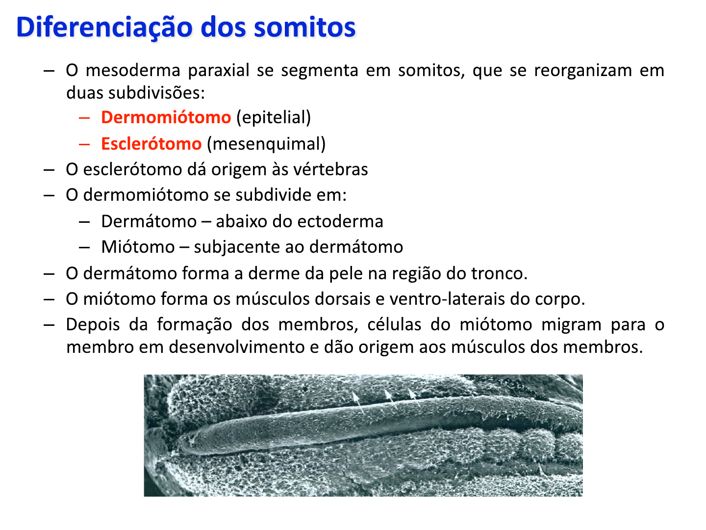 • Conversão do disco tri-‐laminar em uma estrutura tridimensional. • Processo de dobramento céfalo-‐caudal e lateral do embrião. • Após o processo de gastrulação. • Reconhecimento do embrião como um vertebrado. • Estágio filoBpico. • Dobramento do embrião. – Crescimento diferencial das diferentes estruturas embrionárias. – Crescimento pronunciado do disco trilaminar. – Crescimento do âmnio. – Estabilização do crescimento do saco vitelínico. • Diferenciação dos somitos. • Formação do tubo neural a parHr da placa neural. Embrião após o dobramento • Em resposta ao crescimento e flexura da parte cefálica da placa neural (flexura craniana ou mesencefálica). • Proliferação e migração do mesênquima da cabeça. • O septo transverso: – Inicia a divisão do celoma em cavidades torácica e abdominal. – Dá origem à parte do diafragma (tendão central do diafragma). – Mioblastos provenientes de precursores do mesoderma lateral se diferenciam, no septo transverso, em fibras esqueléHcas. – Dá origem ao mesentério do estômago e duodeno. • Simultâneo ao dobramento céfalo-‐caudal. – Constrição e estreitamento do saco vitelínico. – Fusão dos folhetos embrionários correspondentes de ambos os lados. • O ectoderma cobre todo embrião, exceto pela área umbilical, de onde emergem o saco vitelínico e o pedículo do embrião. • Após a formação do celoma, o intesHno ainda encontra-‐se aderido à parede do corpo. • A dispersão do mesênquima na região dos futuros órgãos abdominais (inferior ao septo transverso) leva à formação do mesentério dorsal. • RevesHdo internamente pelo endoderma do disco trilaminar. • Inicialmente fechado em ambas extremidades: – Anteriormente pela membrana bucofaríngea (rompe-‐se na 4ª sem) – Posteriormente pela membrana cloacal (rompe-‐se na 7ª sem) • Dividido em: – IntesHno anterior – IntesHno médio – IntesHno posterior