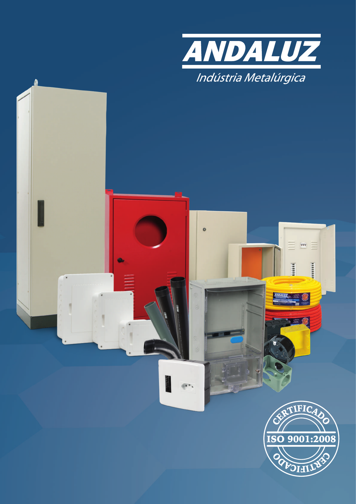 C ATÁ L O G O DE P R O D U T O S Índice Eletroduto de PVC rígido roscável Conduletes de PVC Eletroduto corrugado - PVC Caixas plásticas para interruptor e tomada Caixas de passagem, incêndio e telefone Caixas de passagem multiúso parafusadas Caixa de montagem termoplástica Quadros de disjuntores termoplásticos Quadros de disjuntores - Linha Prata Quadros de disjuntores - Linha Ouro Quadros de Comando Painéis modulares Abraçadeiras Caixas modulares agrupadas para medição de energia Caixas termoplásticas para medidores de energia Caixas especiais de energia Nípel roscado e Garras para isolador Painéis de medição e proteção padrão Light Leitos para cabos Conexões para leito Perfilados e tampas Perfilados duplos e conexões Conexões para perfilados Suportes e acessórios para perfilados Acessórios para fixação Porcas, arruelas e parafusos Eletrocalhas Eletrocalhas e derivações Eletrocalhas e acessórios 06 07 12 13 14 15 16 17 18 20 22 25 30 31 35 36 37 38 41 42 45 46 47 48 49 51 52 53 54 A Andaluz Indústria Metalúrgica Ltda está situada no Estado do Espírito Santo, bairro Industrial Civit II, município da Serra. A unidade fabril ocupa uma área de 20.000 m2, sendo 8.300 m2 de área construída e devidamente licenciada pela SEAMA. Nosso objetivo é fabricar componentes metálicos e plásticos para distribuição e controle de energia elétrica. Nossa missão é investir constantemente na melhoria contínua da qualidade de nossos produtos, com preços competitivos para melhor atender os nossos clientes. Desde já agradecemos a atenção e preferência de V. Sas. A Diretoria Eletroduto de PVC rígido roscável Eletroduto de PVC rígido roscável Curva 90o eletroduto roscável Luva eletroduto roscável 6 Os eletrodutos de PVC rígidos da Andaluz foram desenvolvidos de acordo com a NBR 15465 e produzidos em PVC Antichama. Dimensionados para instalações elétricas embutidas de baixa tensão, em obras prediais, comerciais e industriais. DIMENSÕES (mm) Cotas 1/2’’ 3/4’’ 1’’ 1 1/4’’ 1 1/2’’ 2’’ 2 1/2’’ 3’’ 4’’ Espessura 2,2 2,3 2,7 2,9 3 3,1 3,8 4 5 Diâm. Int. 16,4 21,3 27,5 36,1 41,4 52,8 67,1 79,6 103,1 Compr. 3.000 3.000 3.000 3.000 3.000 3.000 3.000 3.000 3.000 Código 6550 6552 6554 6556 6558 6560 6562 6564 6566 DIMENSÕES (mm) Cotas 1/2” 3/4” 3/4” 1” 1” 1 1/4” 1 1/2” 2” 2 1/2 3” 4” Raio Longo Curto Longo Curto Longo Longo Longo Longo Longo Longo Longo Código 6580 6582 6584 6586 6588 6590 6592 6594 6596 6598 6600 DIMENSÕES (mm) Cotas 1/2’’ 3/4’’ 1’’ 1 1/4’’ 1 1/2’’ 2’’ 2 1/2’’ 3’’ 4’’ Polegada 1/2’’ 3/4’’ 1’’ 1 1/4’’ 1 1/2’’ 2’’ 2 1/2’’ 3’’ 4’’ Diâm. Ext. 27 32,5 40,5 50 56 68 85,5 98,5 126,5 Código 6620 6622 6624 6626 6628 6630 6632 6634 6636 www.andaluz.ind.br Conduletes de PVC 7 A linha de conduletes de PVC Andaluz foi projetada para oferecer maior facilidade, segurança, versatilidade e economia de materiais. Todos os produtos são desenvolvidos de acordo com a NBR 15465 e produzidos em PVC Antichama. Opções nas cores CINZA,VERMELHA OU BRANCA, projetadas para atender as diversas necessidades dos instaladores. Indicados para instalações aparentes, os conduletes são montados pelo sistema de “encaixe” facilitando a sua instalação e manutenção. Os componentes se encaixam com facilidade, permitindo ganho de tempo e rapidez nas modificações das instalações. www.andaluz.ind.br 8 Eletroduto de PVC soldável Condulete 5 entradas Adaptador para condulete Condulete 6 entradas DESCRIÇÃO DIMENSÕES (mm) D D1 L Eletroduto 1/2” 21 17 3000 Eletroduto 3/4” 26 22 3000 Eletroduto 1” 33 28 3000 DESCRIÇÃO DIMENSÕES (mm) D D1 L Adaptadores 1/2” 42 21 21 Adaptadores 3/4” 42 26 24 Adaptadores 1" 42 33 23 DESCRIÇÃO DIMENSÕES (mm) D L P H H1 H2 Caixa 5 furos 37 61 51 95 84 - DESCRIÇÃO DIMENSÕES (mm) D L P H H1 H2 Caixa 6 furos 37 61 51 95 84 44 Tampinha para condulete DESCRIÇÃO DIMENSÕES (mm) D L Tampinha 38 1 B C E T X LB C E LB LL LR 9 Tampa para tomada horizontal Tampa para tomada vertical Curva 90 eletroduto PVC soldável Luva eletroduto PVC soldável Abraçadeira para eletroduto DESCRIÇÃO DIMENSÕES (mm) D D1 H Curva 1/2” 26 21 95 Curva 3/4” 30 26 105 Curva 1" 39 33 138 DESCRIÇÃO DIMENSÕES (mm) D D1 H Luva 1/2” 26 21 36 Luva 3/4” 32 26 41 Luva 1" 39 33 48 DESCRIÇÃO DIMENSÕES (mm) D L Abraçadeiras 1/2” 21 16 Abraçadeiras 3/4” 26 18 Abraçadeiras 1” 33 20 DESCRIÇÃO DIMENSÕES (mm) D L L1 P H H1 H2 Tampa hexazonal horizontal - 61 32 5 95 84 22 DESCRIÇÃO DIMENSÕES (mm) D L L1 P H H1 H2 Tampa hexazonal vertical - 61 22 5 95 84 32 www.andaluz.ind.br 10 Tampa para 01 módulo Tampa para 02 módulos Tampa cega Tampa para 03 módulos DESCRIÇÃO DIMENSÕES (mm) D L L1 P H H1 H2 Tampa 1 Módulo - 61 17 5 95 84 37 DESCRIÇÃO DIMENSÕES (mm) D L L1 P H H1 H2 Tampa 3 Módulos - 61 37 5 95 84 49 DESCRIÇÃO DIMENSÕES (mm) D L L1 P H H1 H2 Tampa 2 Módulos - 61 25 5 95 84 17 DESCRIÇÃO DIMENSÕES (mm) D L L1 P H H1 H2 Tampa cega - 61 - 5 95 84 - Tampa para tomada redonda DESCRIÇÃO DIMENSÕES (mm) D L L1 P H H1 H2 Tampa tomada redonda 35 61 - 5 95 84 - 11 Tampa para 01 módulo RJ 11/45 Tampa para 02 módulos RJ 11/45 DESCRIÇÃO DIMENSÕES (mm) D L L1 P H H1 H2 Tampa 2 RJ45 - 61 25 5 95 84 17 DESCRIÇÃO DIMENSÕES (mm) D L L1 P H H1 H2 Tampa 1 RJ45 - 61 37 5 95 84 34 Acoplamento de cabos de telefonia e informática Para instalação dos cabos de telefonia (RJ 11) ou cabos de informática (RJ 45) nos conduletes Andaluz, utilize as tampas RJ 11/45 condulete, criadas para esta finalidade proporcionando conexões perfeitas dos cabos às caixas da linha. A fixação do conector é feita por simples encaixe na tampa. Eletroduto corrugado - PVC Linha Leve - amarelo Linha Média - laranja Luva pressão Os eletrodutos corrugados Andaluz foram desenvolvidos de acordo com a NBR 15465 e produzidos e
