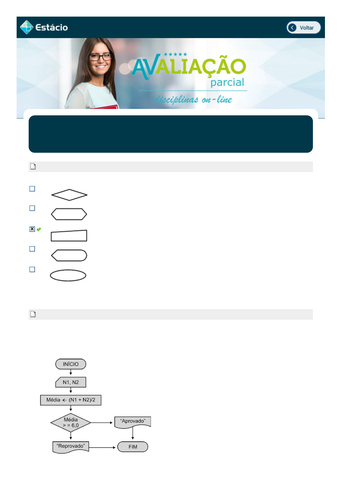 N2) obtidas pelo aluno João. Selecione a opção que apresenta os itens de entrada do fluxograma.