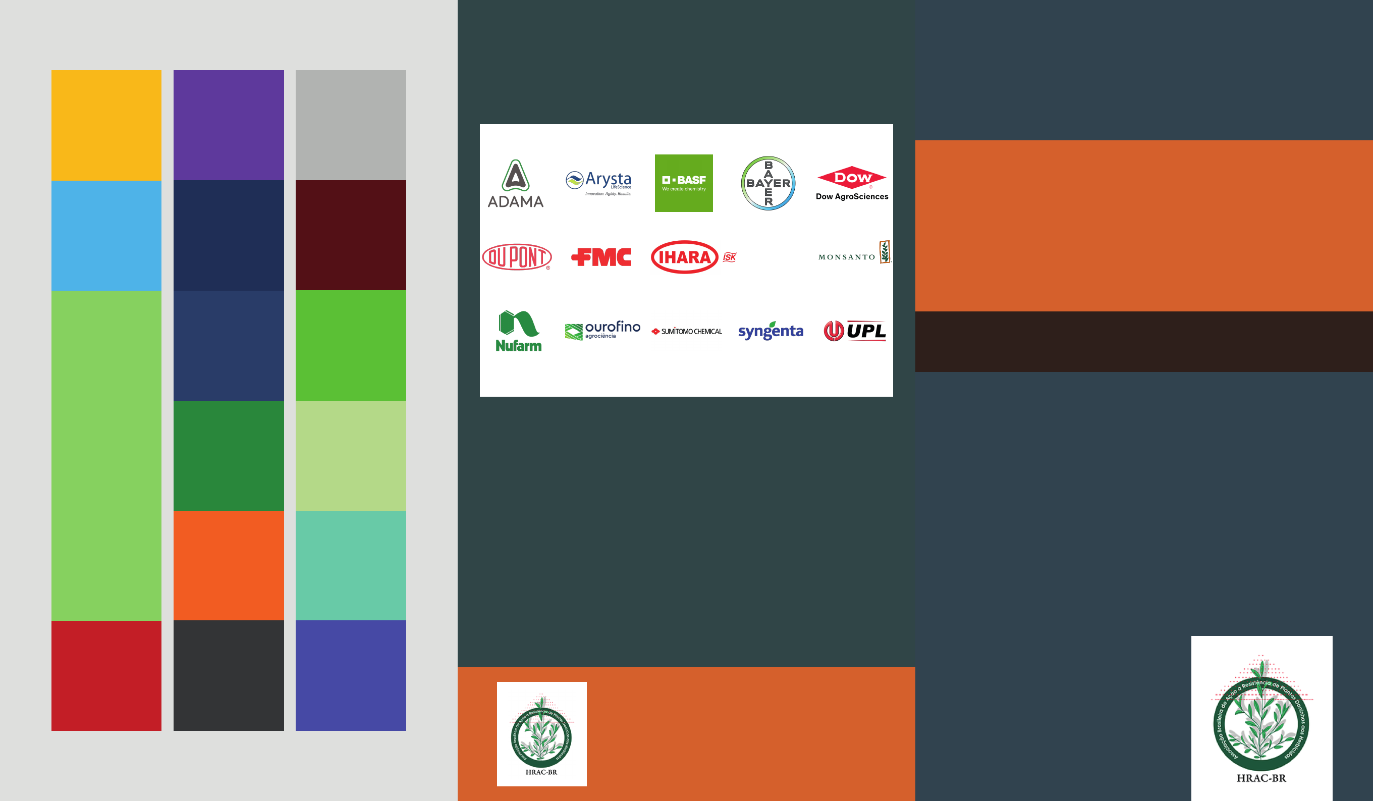 Prof. Pedro Jacob Christo�oleti (ESALQ/USP) Dr. Dionisio Luiz Pisa Gazziero (Embrapa Soja) Fabrícia Cristina dos Reis (Mestre em Fitotecnia - ESALQ/USP) Ana Beatriz Campos Almeida Padro (Mestre em Fitotecnia - ESALQ/USP) COLABORADORES: HRAC-BR Associação de Ação à Resistência de Plantas Daninhas aos Herbicidas Fazenda São Francisco • Caixa Postal • 921 Paulínea • SP • CEP: 13.140-000 www.hrac-br.org D Inibidores do Fotossistema I C3 Inibidores do Fotossistema II C2 Inibidores do Fotossistema II C1 Inibidores do Fotossistema II B Inibidores da ALS A Inibidores da ACCase K1 Inibidores da formação de microtúbulos K3 Inibidores da síntese de ácidos graxos de Cadeia Longa O Mimetizadores de Auxina N Inibidor da síntese de lipídeos L Inibidores da síntese de parede celular Z Organoarsenical H Inibidor da Glutamina G Inibidor da EPSPs F4 Inibidor da DOXP-Sintase E Inibidores da PROTOX F2 Inibidores da síntese do caroteno I Inibidor da DHP CLASSIFICAÇÃO DOS HERBICIDAS QUANTO AOS MECANISMOS DE AÇÃO 2018 Associação Brasileira de Ação à Resistência de Plantas Daninhas aos Herbicidas BIOSCIENCES DO BRASIL Associação Brasileira de Ação à Resistência de Plantas Daninhas aos Herbicidas Glifosato G Inibidor da EPSPs I Inibidor da DHP Asulam Amônio Glufosinato H Inibidor da Glutamina Pendimetalina Tri�uralina K1 Inibidores da formação de microtúbulos S-metolacloro Alacloro Acetocloro K3 Inibidores da síntese de ácidos graxos de Cadeia Longa 2,4-D Dicamba Fluroxipir-meptílico Picloramp MCPA Quincloraque** Triclopir O Mimetizadores de Auxina Tiobencarbe N Inibidor da síntese de lipídeos Indazi�am Quincloraque* L Inibidores da síntese de parede celular MSMA Z Organoarsenical A Inibidores da ACCase Cletodim Clodinafope-propargil Cialofope-butílico Fenoxaprope-p-etílico Fluazifope-p-butílico Haloxifope-p-metílico Profoxidim Propaquizafope Quizalofope-p-etílico Quizalofope-p-tefurílico Setoxidim Tepraloxidim Ametrina Amicarbazona Atrazina Bromacila Hexazinona Metamitrona Metribuzim Prometrina Simazina C1 Inibidores do Fotossistema II Diurom Linurom Propanil Tebutiurom C2 Inibidores do Fotossistema II Bentazona Octanoato de Ioxinila C3 Inibidores do Fotossistema II Diquate Paraquate D Inibidores do Fotossistema I Aci�uorfen Carfentrazona-etílica Fomesafem Flumicloraque-pentílico Flumioxazina Lactofem Oxadiazona Oxi�uorfem Pira�ufem-etílico Sa�ufenacil Sulfentrazona E Inibidores da PROTOX Isoxa�utol Mesotriona Tembotriona F2 Inibidores da síntese do caroteno Clomazona F4 Inibidor da DOXP-Sintase Azinsulfurom Bispiribaque-sódico Clorimurom-etílico Cloransulam-metílico Diclosulam Etoxissulfurom Flazasulfuron Flumetsulam Halossulfurom-metílico Imazamoxi Imazapique Imazapir Imazaquim Imazetapir Iodossulfurom-metílico Metsulfurom-metílico Nicossulfurom Penoxsulam Pirazossulfurom-etílico Piritiobaque-sódico Pyroxsulam Sulfometurom-metílico Tri�oxissulfurom-sódico B Inibidores da ALS * Mecanismo de ação em gramíneas ** Mecanismo de ação em folhas largas + Ametrina + Diurom + MCPA OC2C1 + + C2 C2+ Diurom + Tebutiurom C2 G+ Diurom + Glifosato C2 D+ Diurom + Paraquate C2 E+ Diurom + Sulfentrazona Tebutiurom + Sulfentrazona C2 Z+ Diurom + MSMA C2 N+ Propanil + Tiobencarbe C2 O+ Propanil + Triclopir-butolítico E G+ Carfentrazona + Glifosato E F4 Carfentrazona + Clomazona K1 K3+ Tri�uralina + Alacloro G K3+ Glifosato + S-metolacloro G O+ Glifosato + 2,4 D O O+ 2,4-D + Picloram Fluroxipir-meptílico + Picloram Fluroxipir-meptílico + Triclopir-butotílico Aminopiralide + Fluroxipir-meptílico Aminopiralide + 2,4-D Triclopir-butotílico + Picloram A A+ Cletodim + Fenoxaprope-P-etílico A E+ Fluazilope-p-butílico + Fomesafem B B+ Imazapique + Imazapir Imazapique + Imazetapir B C1+ Tri�oxissulfurom-sódico + Ametrina Nicossulfurom + Atrazina B C3+ Imazamoxi + Bentazona B E+ Imazetapir + Flumioxazina B G+ Imazetapir + Glifosato B K3+ Imazaquim + Imazetapir + Pendimetalina Sulfumeturom + Hexazinona + Diurom C2C1B + + C1 C1+ Ametrina + Simazina Atrazina + Simazina C1 C2+ Hexazinona + Diurom Ametrina + Diurom Amicarbazona + Tebutiurom Bromacila + Diurom C1 E+ Ametrina + Flumioxazina C1 F4+ Hexazinona + Clomazona Ametrina + Clomazona C1 G+ Atrazina + Glifosato C1 K3+ Atrazina + Alacloro Atrazina + S-metolacloro