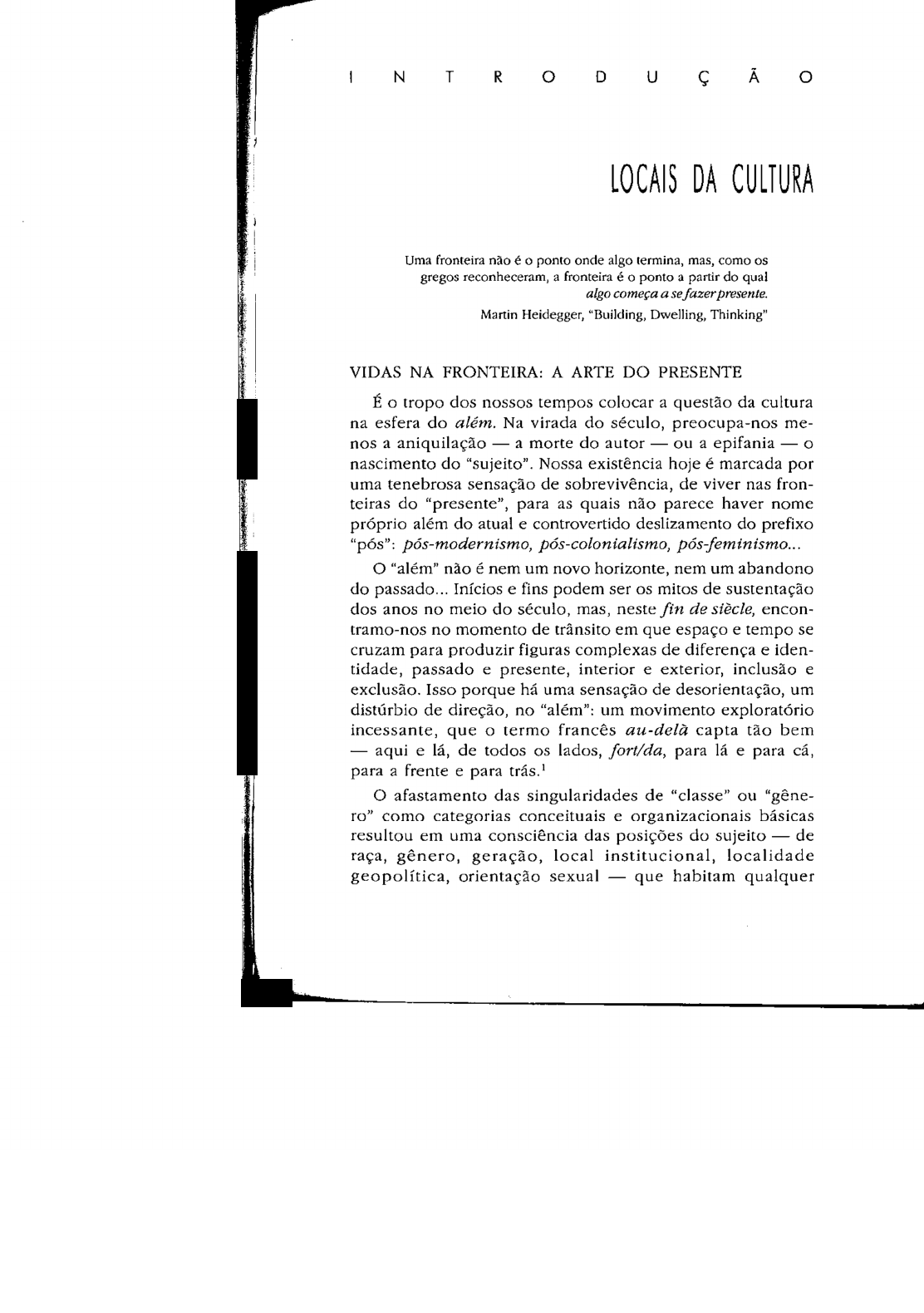 ED 1- BHABHA, Homi k Introdução In - O local da cultura