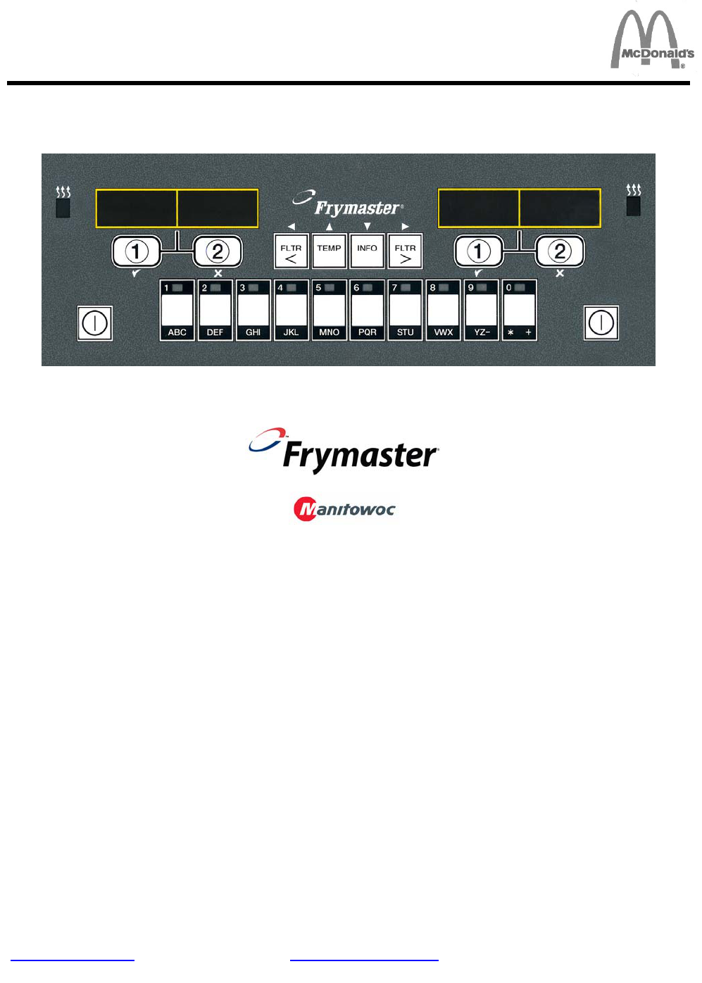 CONTROLADOR DO FRYMASTER LOV™ M3000 MANUAL MANUAL DO OPERAÇAO ÍNDICE INSTRUÇÕES DE INSTALAÇÃO ........................................................................................ Página 1-1 INSTRUÇÕES DE OPERAÇÃO DO LOV™ M3000 MANUAL............................................. Página 2-1 SOLUÇÃO DE PROBLEMAS DO OPERADOR ................................................................... Página 3-1 Frymaster L.L.C., 8700 Line Avenue, Shreveport, LA 71106 TELEFONE 318-865-1711 FAX 318-219-7135 IMPRESSO NOS ESTADOS UNIDOS LINHA DIREITA DO SERVIÇO 1-800-24-FRYER JULHO (JUL) 2012 *8197123* Este capítulo sobre o equipamento deve ser colocado na Seção Fritadeira do Manual do Equipamento FABRICADO POR 8700 Line Avenue SHREVEPORT, LOUISIANA 71106 TELEFONE: 1-318-865-1711 DISQUE GRÁTIS: 1-800-551-8633 1-800-24 FRYER FAX: 1-318-219-7135 www.frymaster.com Email: service@frymaster.com Portuguese / Português AVISO SE, DURANTE O PERÍODO DA GARANTIA, O CLIENTE UTILIZAR UM COMPONENTE DESTE EQUIPAMENTO MANITOWOC FOOD SERVICE QUE NÃO SEJA UM COMPONENTE ORIGINAL, NOVO OU RECONDICIONADO NÃO MODIFICADO ADQUIRIDO DIRETAMENTE DA FRYMASTER DEAN, OU DE ALGUM DE SEUS POSTOS DE SERVIÇO AUTORIZADO DA FÁBRICA, E/OU SE O COMPONENTE UTILIZADO TIVER SOFRIDO ALGUMA ALTERAÇÃO EM RELAÇÃO À SUA CONDIÇÃO ORIGINAL, ESTA GARANTIA SERÁ INVALIDADA. ALÉM DISSO, A FRYMASTER/DEAN E SUAS AFILIADAS NÃO SE RESPONSABILIZARÃO POR QUAISQUER RECLAMAÇÕES, DANOS OU DESPESAS INCORRIDOS PELO CLIENTE, DIRETA OU INDIRETAMENTE, TOTAL OU PARCIALMENTE, EM VIRTUDE DA INSTALAÇÃO DE ALGUM COMPONENTE ALTERADO E/OU RECEBIDO DE UM POSTO DE SERVIÇO NÃO AUTORIZADO. AVISO Este equipamento se destina exclusivamente a uso profissional e só deve ser operado por uma equipe qualificada. A instalação, a manutenção e os reparos devem ser executados por um FAS (Frymaster Dean Factory Authorized Servicer - Posto de Serviços Autorizado da Frymaster Dean) ou por um profissional devidamente qualificado. A instalação, a manutenção ou os reparos feitos por uma equipe não qualificada podem anular a garantia concedida pelo fabricante. AVISO Este equipamento deve ser instalado de acordo com as normas nacionais e locais vigentes no país e/ou região em que ele for instalado. AVISO Os desenhos e as fotos deste manual se destinam a ilustrar os procedimentos técnicos, operacionais e de limpeza e podem não estar em conformidade com os procedimentos administrativos e operacionais locais. AVISO AOS PROPRIETÁRIOS DE UNIDADES COM CONTROLADORES EUA Este equipamento está em conformidade com a Parte 15 das normas da FCC. Sua operação está sujeita a estas duas condições: 1) Este equipamento não deve causar interferência nociva e 2) este equipamento deve aceitar qualquer interferência recebida, inclusive interferência que possa resultar em mau funcionamento. Embora esse equipamento seja considerado de Classe A, ele demonstra atender os limites da Classe B. CANADÃ Este equipamento digital não excede os limites da Classe A ou B referentes a emissões de ruídos de radiofrequência especificados nas normas ICES-003 do Ministério das Comunicações do Canadá. Cet appareil numerique n’emet pas de bruits radioelectriques depassany les limites de classe A et B prescrites dans la norme NMB-003 edictee par le Ministre des Communications du Canada. PERIGO Instalação, regulagem, manutenção ou reparos inadequados e alterações ou modificações não autorizadas podem provocar danos materiais, acidentes pessoais ou até a morte. Antes de instalar ou executar algum reparo neste equipamento, leia todas as instruções de instalação, operação e manutenção. AVISO As instruções contidas neste manual para utilização de um sistema de volume de óleo para preenchimento e descarte de óleo se destinam a um sistema RTI. Essas instruções podem não ser aplicáveis a outros sistemas de reservatório de óleo. 1-1 CONTROLADOR LOV™ M3000 MANUAL CAPÍTULO 1: INSTRUÇÕES DE INSTALAÇÃO 1.1 Instalação Antes de ligar a máquina, leia todas as instruções deste manual. Instalação do controlador manual LOV™ (Baixo Volume de Óleo) M3000 requer que algumas etapas sejam executadas antes do uso. Este controlador usa cabos de rede para a comunicação entre controladores. Os controladores também exigem que conectores do localizador identifiquem a posição dos controladores no banco de fritadeiras. Finalmente, a rede deve ser terminada nos últimos controladores à esquerda e à direita da rede. 1.2 Informações do controlador para os controladores M3000 Este equipamento foi testado e está de acordo com os limites dos equipamentos digitais Classe A, especificados na Seção 15 das normas da FCC. Embora esse equipamento seja considerado dispositivo Classe A, ele demonstra atender os limites da Classe B. Esses limites visam a garantir uma boa proteção contra interferências nocivas no momento em que o equipamento for utilizado em ambiente comercial. Esse equipamento gera, utiliza e pode irradiar energia de radiofrequência e, se não for instalado e utilizado de acordo com as instruções deste manual, poderá provocar interferência prejudicial em radiocomunicações. É possível que a utilização deste equipamento em área residencial gere interferência nociva; nesse caso, o usuário deverá corrigi-la por conta própria. O usuário está ciente que quaisquer alterações ou modificações não aprovadas expressamente pela parte responsável pela conformidade poderiam anular a autoridade do usuário de operar o equipamento. Se necessário, o usuário deve consultar o revendedor ou um técnico experiente de rádio e televisão para obter mais sugestões. A cartilha preparada pela FCC (Federal Communication Commision) pode ser útil para o usuário: "Como identificar e resolver problemas de interferência em rádio e TV". Essa cartilha é fornecida pela Imprensa Oficial do Governo Norte-Americano (U.S. Gover