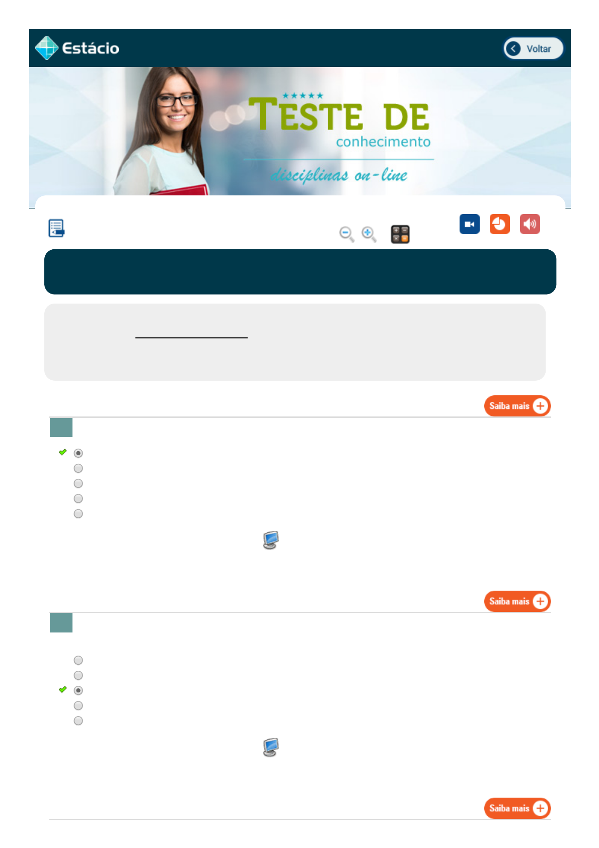 05/11/2019 EPS simulado.estacio.br/alunos/ 1/3 Marque a resposta que define o período de uma onda. As ondas sonoras são consideradas ondas de pressão, ou seja, ondas que se propagam a partir de variações de pressão do meio. Por exemplo, quando um músico bate em um tambor musical, a vibração da membrana produz alternadamente compressões e rarefações do ar, ou seja, produz variações de pressão que se propagam através do meio, no caso: BIOFÍSICA SDE0023_A3_201702021491_V1 Lupa Calc. Vídeo PPT MP3 Aluno: BRUNA SARA HILARIO DE SOUZA COSTA Matr.: 201702021491 Disc.: BIOFÍSICA 2019.2 (G) / EX Prezado (a) Aluno(a), Você fará agora seu TESTE DE CONHECIMENTO! Lembre-se que este exercício é opcional, mas não valerá ponto para sua avaliação. O mesmo será composto de questões de múltipla escolha. Após responde cada questão, você terá acesso ao gabarito comentado e/ou à explicação da mesma. Aproveite para se familiarizar com este modelo de questões que será usado na sua AV e AVS. 1. O intervalo de tempo que é necessário para que um ponto vibrante percorra um ciclo completo. Na onda, a distância de uma crista ou um vale ao nível de equilíbrio. Nas ondas não existem períodos. O intervalo de tempo que é necessário para que um ponto vibrante percorra um ciclo incompleto. Na onda a distância que a perturbação percorre durante um período. Gabarito Coment. 2. o tambor musical. o solo. o ar. a membrana. o vácuo. Gabarito Coment. 05/11/2019 EPS simulado.estacio.br/alunos/ 2/3 Muitos adestradores de cães utilizam um apito para chamar os animais. Porém, esse apito é muito ¿esquisito¿, pois nós não conseguimos ouvir o som que ele produz. Isto acontece devido Toda vez que experimentamos uma sensação sonora, está ocorrendo os seguintes processos e percepções, com EXCEÇÂO de: São elementos de uma onda harmônica simples, com exceção de: Quando a direção em que se deu a perturbação é perpendicular à direção de propagação da onda a classificamos como: 3. a intesidade do apito é baixa apito não emite nenhum som audível pelo cão e nem pelo homem. o cão ouve em frequências diferentes ao intervalo audível humano. cão também não ouve mais atende a repetição do treinador não conseguimos ouvir por ser um som dentro do intervalo de 20 Hz e 20000 Hz. Gabarito Coment. 4. A intensidade fisiológica de um som, que está ligada à amplitude das vibrações. Um movimento vibratório de um meio material, que pode ser sólido (corda), líquido (agua) ou gasoso (ar); Um meio material elástico entre o corpo vibrante e a orelha. O timbre, que depende dos harmônicos associados ao som fundamental; A altura, que está ligada unicamente à velocidade da onda sonora; Explicação: R: a altura, que está ligada unicamente à velocidade da onda sonora. 5. Frequência Comprimento de onda Amplitude Velocidade Tensão 6. Bidimensionais Obliquas Longitudinais Mecânicas Transversais Gabarito Coment. 05/11/2019 EPS simulado.estacio.br/alunos/ 3/3 O encontro de duas ou mais ondas é denominado de: A faixa auditiva humana se encontra entre: 7. refração superposição difração ondulação infraposição 8. 30 Hz e 60.000 Hz 15 Hz e 2.000 Hz 12 Hz e 15.000 Hz 10 Hz e 10.000Hz 20 Hz e 20.000 Hz Gabarito Coment. Legenda: Questão não respondida Questão não gravada Questão gravada Exercício inciado em 05/11/2019 10:54:14.