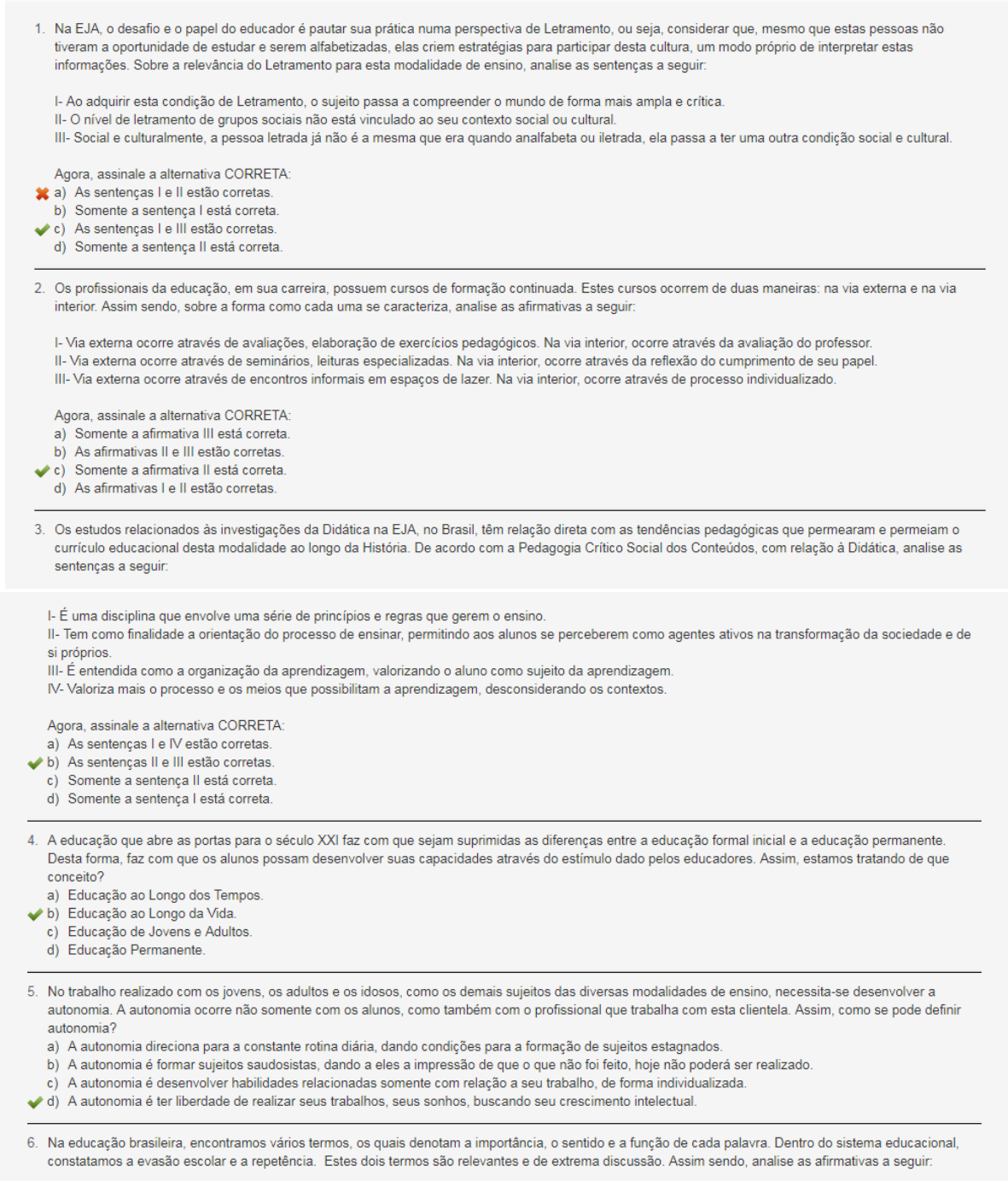 Educação de Jovens e Adultos (PED13) Avaliação Final Objetiva