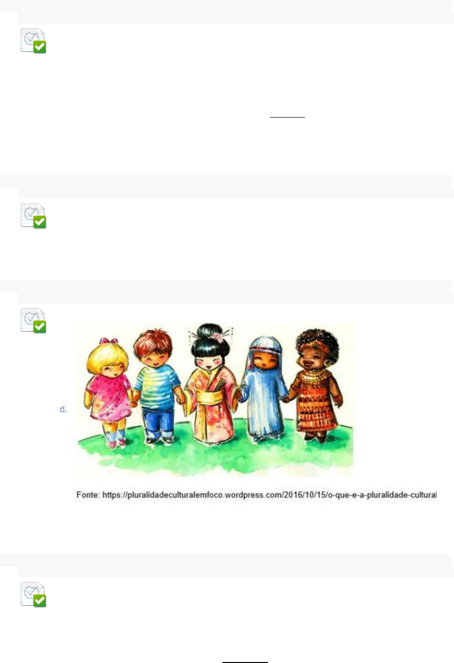Pergunta 1 1 em 1 pontos “A prepotência e a arrogância com que o homem tratava o seu meio tornava-o cego ao óbvio: os recursos ambientais são finitos, limitados, e estão dinamicamente inter-relacionados. A diminuição drástica de um pode causar o mesmo em outro aparentemente não relacionado a ele”. Esse problema veio à tona no século XX, quando a questão ambiental tornou-se significativa mundialmente, revelando-se na constatação de ecossistemas degradados e na (falta de) qualidade de vida dos povos. É justamente nesse momento histórico que surge e começa a ser conceituada a Educação Ambiental. A propósito dessas considerações, assinale a alternativa incorreta. Resposta Selecionada: e. A Educação Ambiental é um ramo da educação cujo objetivo é exclusivamente a disseminação do conhecimento sobre o ambiente, a fim de ajudar na sua preservação e utilização sustentável dos seus recursos. Pergunta 2 1 em 1 pontos Segundo o livro-texto, o que aconteceu em 1973 e nas décadas de 80 e 90 no que diz respeito à Educação Ambiental no Brasil? Resposta Selecionada: a. Em 1973, a Educação Ambiental aparece no Brasil e é nas décadas de 80 e 90 que ela ganha maior força. Pergunta 3 1 em 1 pontos Qual das figuras a seguir melhor ilustra a questão da pluralidade? Resposta Selecionada: d. Pergunta 4 1 em 1 pontos O surto desenvolvimentista aumenta a desigualdade em escala global entre países desenvolvidos e emergentes. Os 20% da população mundial que vive nos países desenvolvidos consome 80% do que é produzido mundialmente. Essa situação torna-se insustentável e é causa de um grande mal-estar global. Tomando essas considerações como base, indique a alternativa incorreta. Resposta Selecionada: e. O avesso do desenvolvimento deve-se à corrida pelo crescimento à custa da degradação, sob a lógica da competitividade que preza sempre pela qualidade de vida. Pergunta 5 1 em 1 pontos Sobre interdisciplinaridade (I), transdisciplinaridade (T) e multidisciplinaridade (M), pode-se considerar que: I - Na____________, as várias disciplinas colaboradoras mantêm seus limites intactos. II - Na_______________, esses limites são transpostos pela construção de conceitos e métodos comuns. III - A _________________ caracteriza-se pela total ausência de limites disciplinares. Indique a alternativa que corretamente preenche as lacunas das afirmativas: Resposta Selecionada: e. M, I, T. Pergunta 6 1 em 1 pontos Em Nova York, em 1892, William T. propôs conectar as partes alta e baixa do rio Niágara, abrindo um canal com aproximadamente 9,6 km de extensão e 85 metros de profundidade para o transporte de carga. O projeto foi abandonado em 1920 e o local vendido à indústria Hooker Chemical, que o utilizou como aterro para a disposição final de resíduos tóxicos. Após esse procedimento, a empresa vendeu o local por um preço simbólico de $1 dólar à Niagara Falls Board of Education . Uma escola foi construída diretamente sobre o aterro e circundada por residências. Em 1978, moradores de um conjunto habitacional dessa localidade descobriram que suas casas foram erguidas sobre um canal que havia sido aterrado com dejetos químicos industriais e bélicos do período de 1920 a 1953. Estudos constataram vários efeitos na população: alterações nos cromossomos, aumento do número de abortos, aumento do número de defeitos congênitos. A qual desastre ambiental nos referimos? Resposta Selecionada: e. Ao Love Canal. Pergunta 7 1 em 1 pontos Leia o texto a seguir e depois assinale a alternativa que completa a lacuna. A ____________________ é uma categoria de atividades planejadas com o intuito de promover melhorias no aprendizado ambiental desenvolvido em parques, zoológicos, museus, aquários e outros locais similares. A meta principal não é a instrução, mas a provocação. Resposta Selecionada: c. Interpretação ambiental. Pergunta 8 1 em 1 pontos Assinale a alternativa incorreta. Resposta Selecionada: a. Na concepção de educação ambiental crítica são apresentados os problemas ambientais mais aparentes e desprezadas as causas mais profundas. Ocorre uma relação dicotômica entre o ser humano e o ambiente, em que o primeiro é apresentado como destruidor. Praticamente não são abordadas questões sociais e políticas. Pergunta 10 1 em 1 pontos Tal concepção exige uma nova postura do educador: ser um mediador, e não mais um transmissor de conhecimentos, ser um profissional aberto ao diálogo, à escuta de seus educandos (de suas opiniões, verdades e anseios). A qual concepção de Educação Ambiental nos referimos? Marque a resposta correta. Resposta Selecionada: c. Crítica.